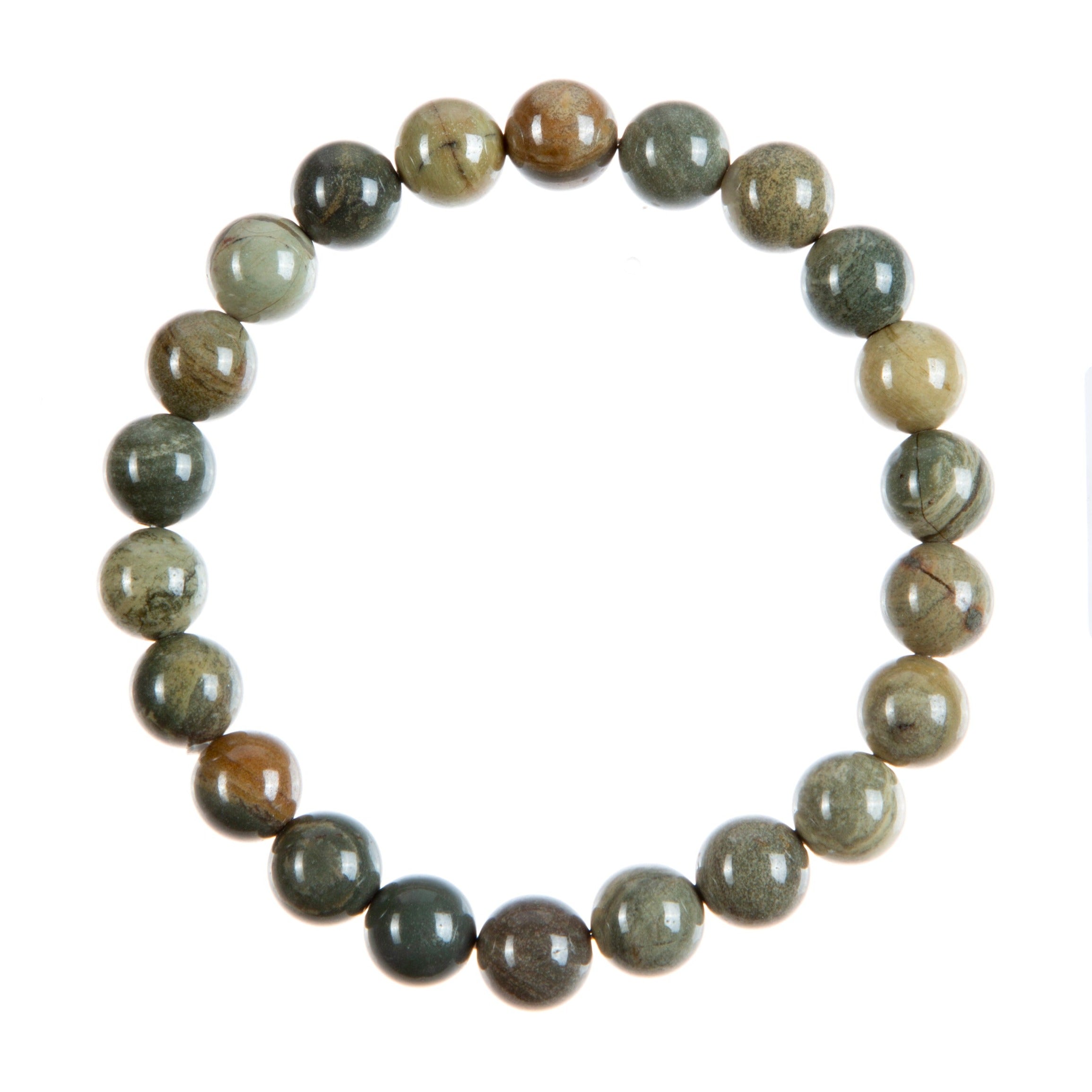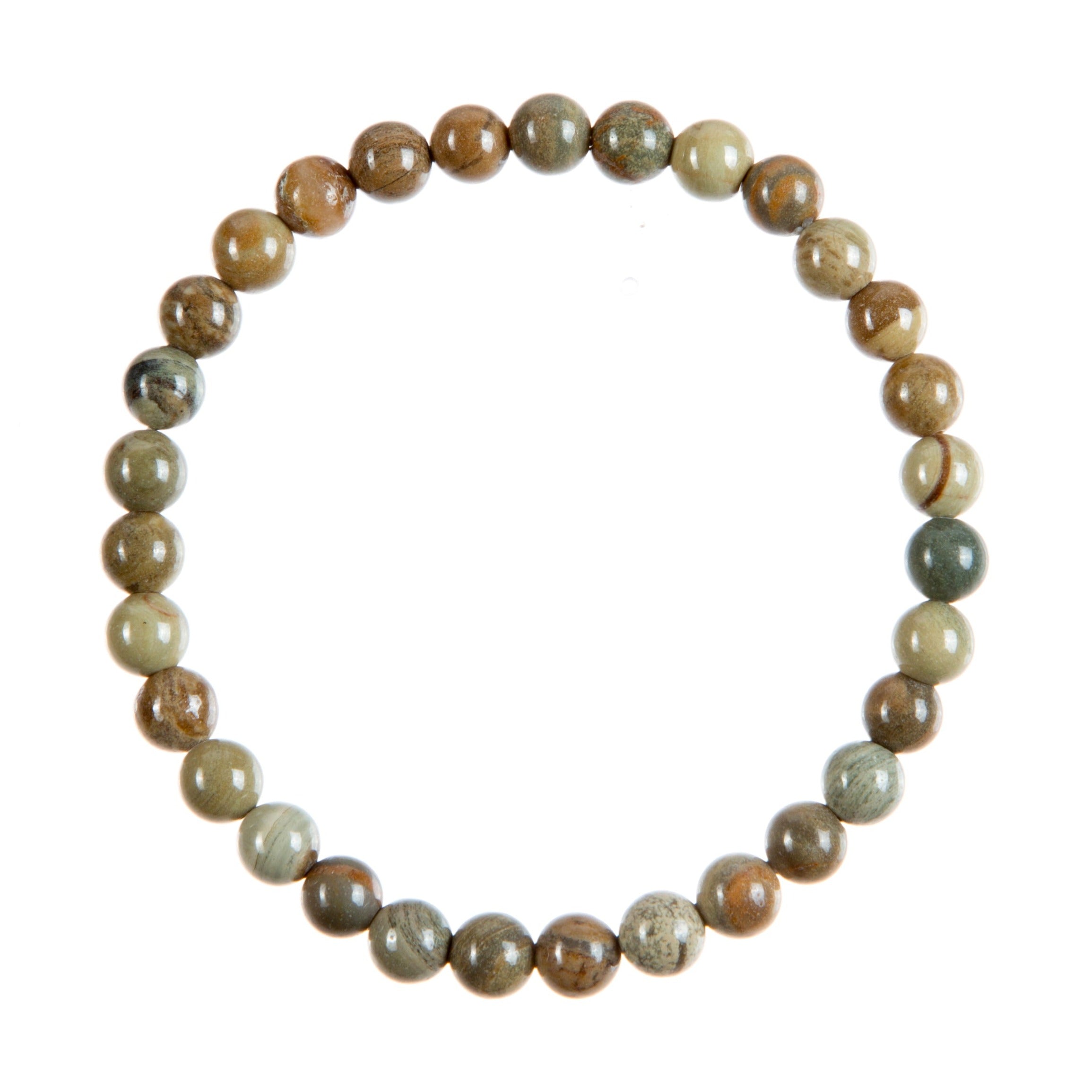 Silver Leaf Jasper Stone Stretch Bracelet B3591-6MM