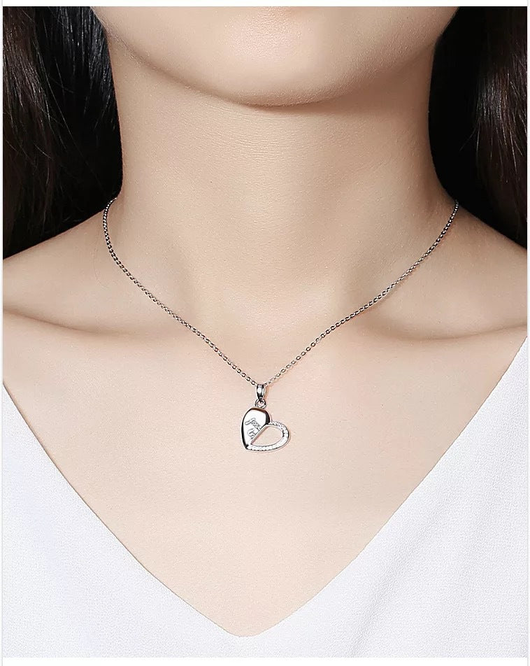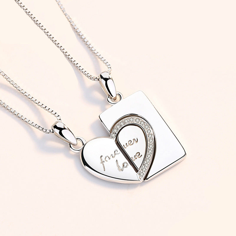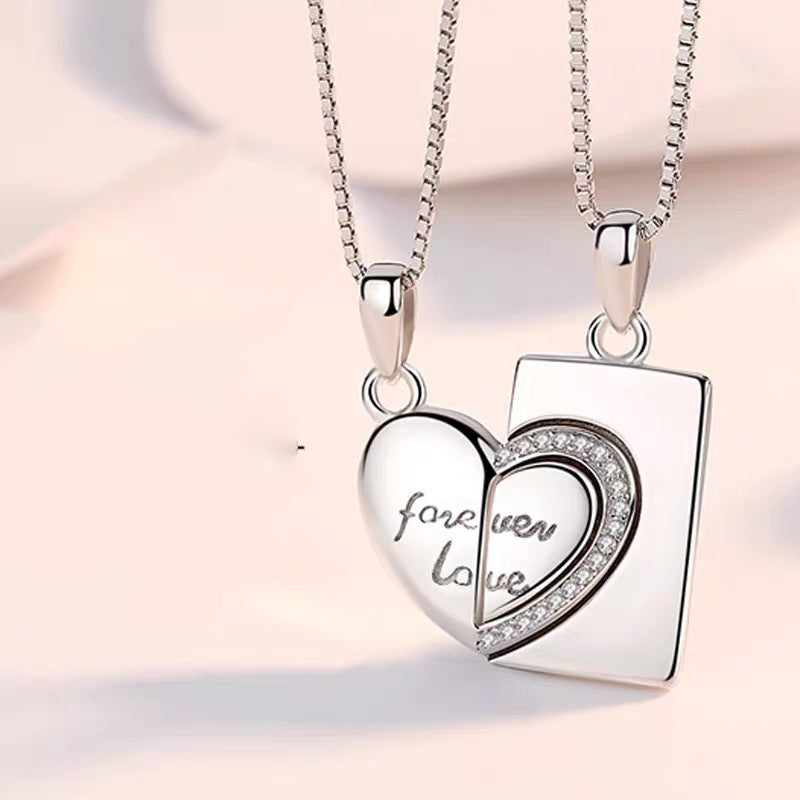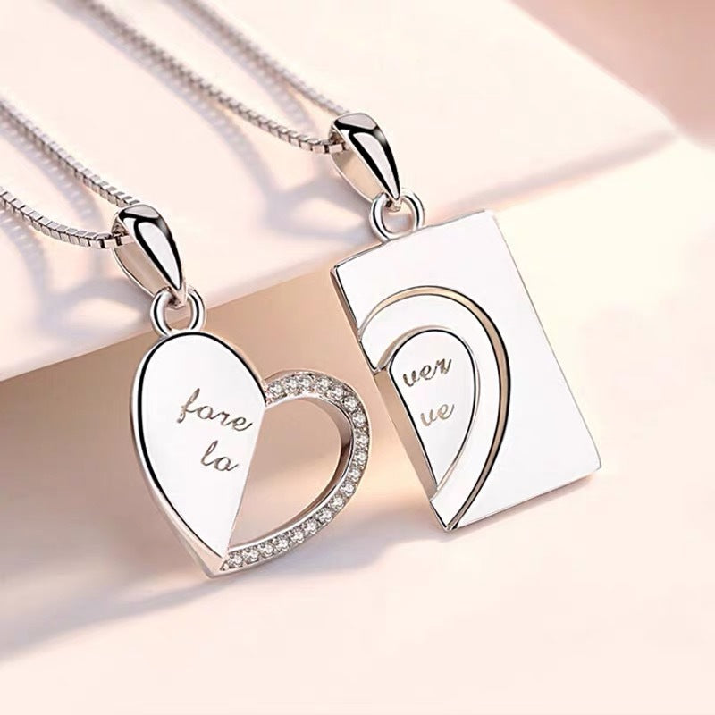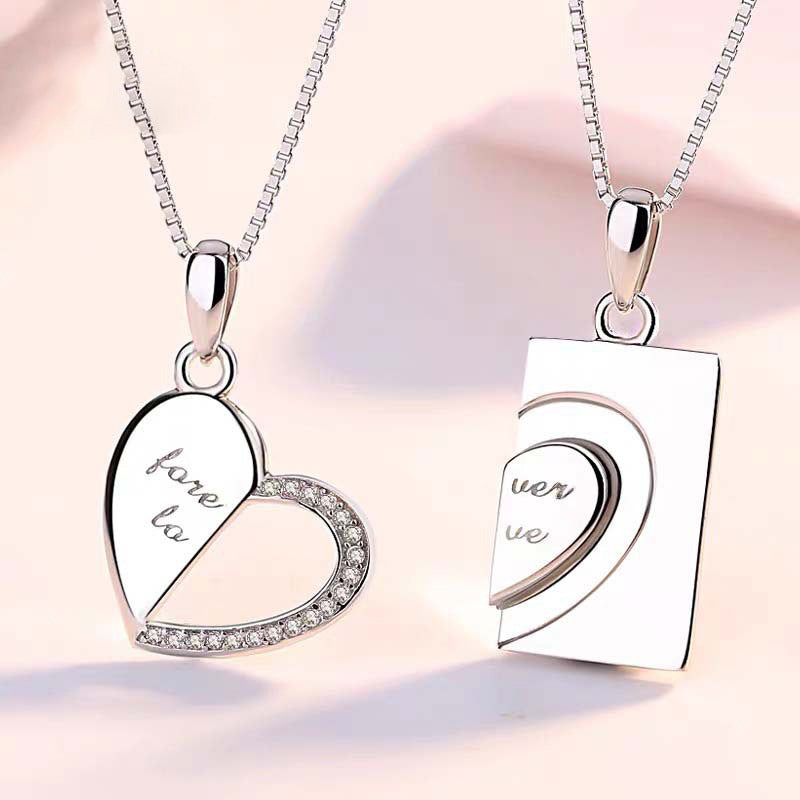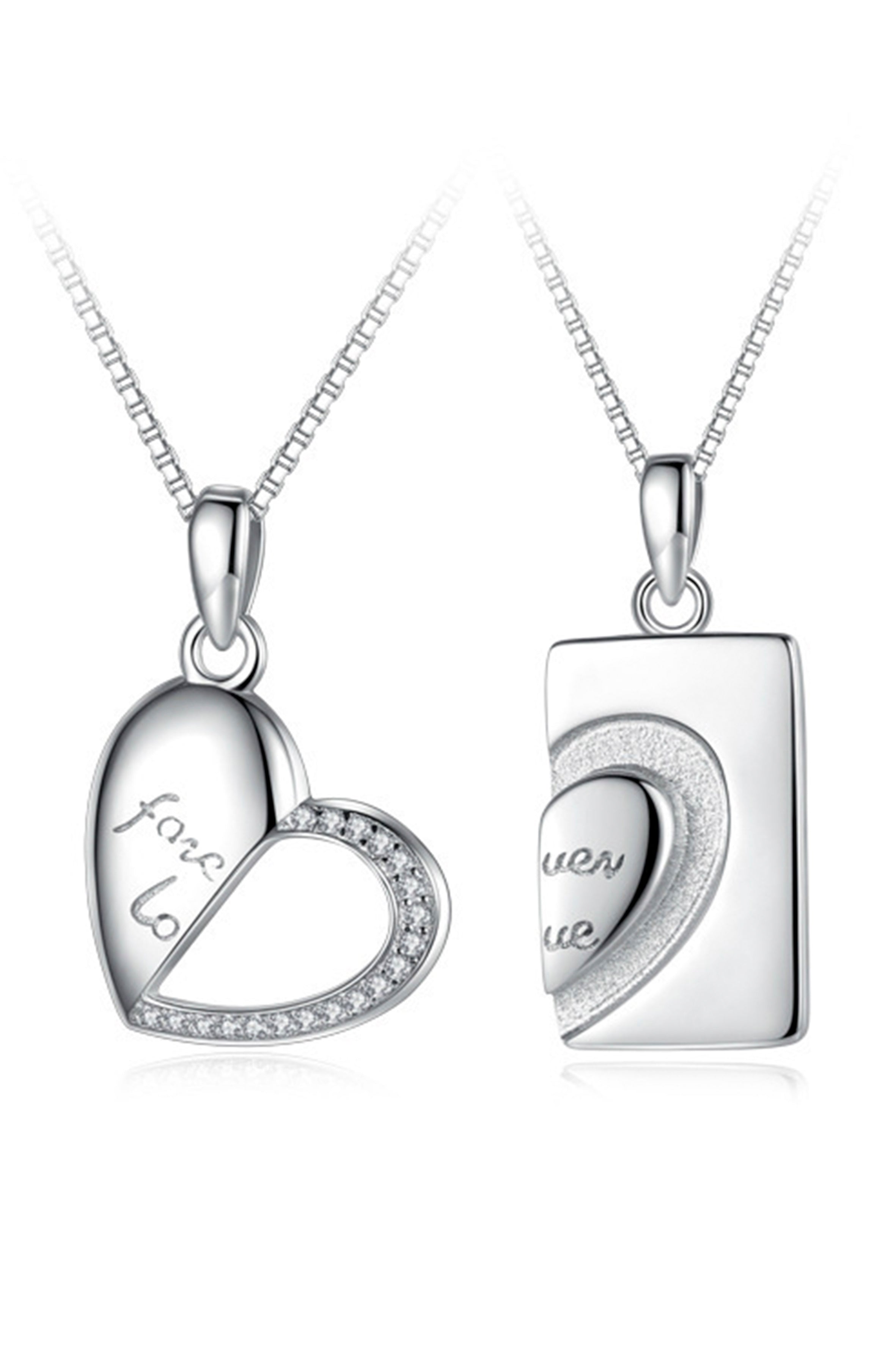 Heart Rhinestone Silver Couple Necklace Set N4193-Set
