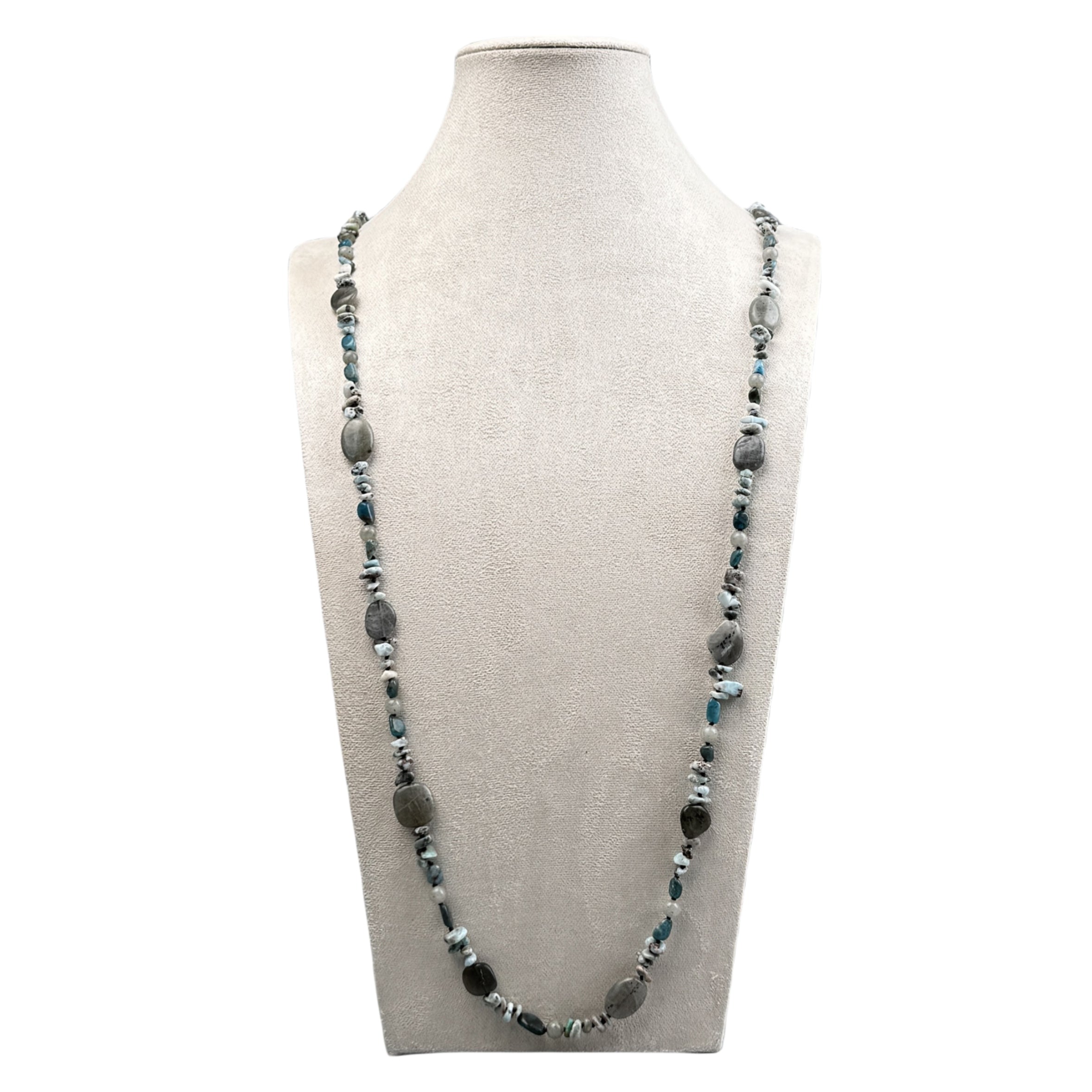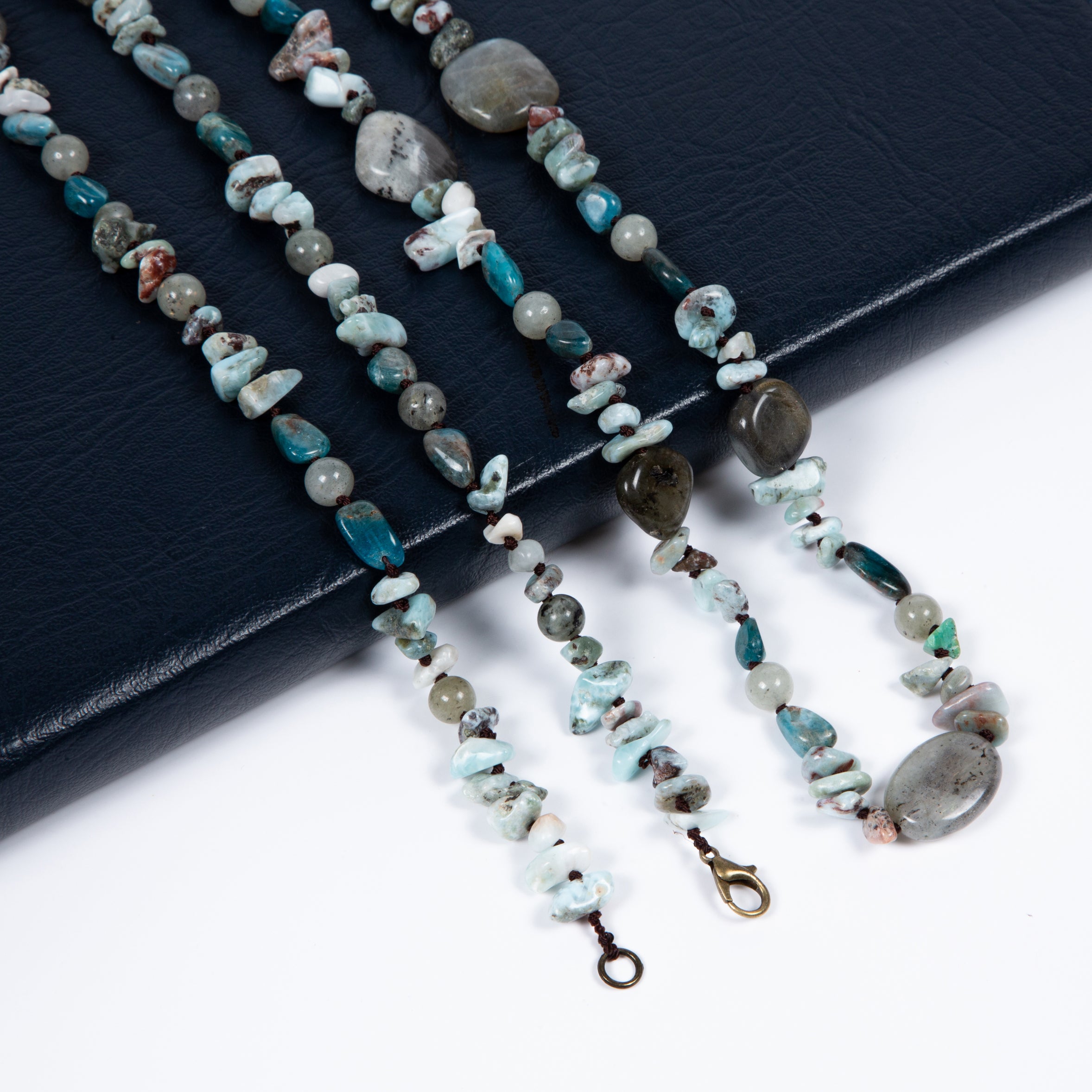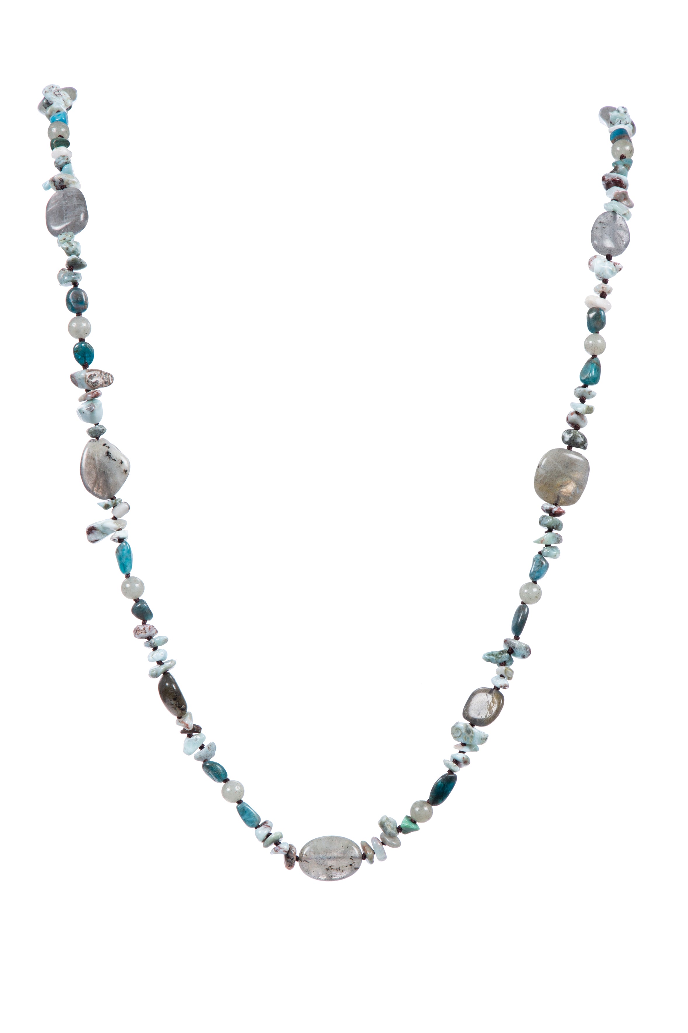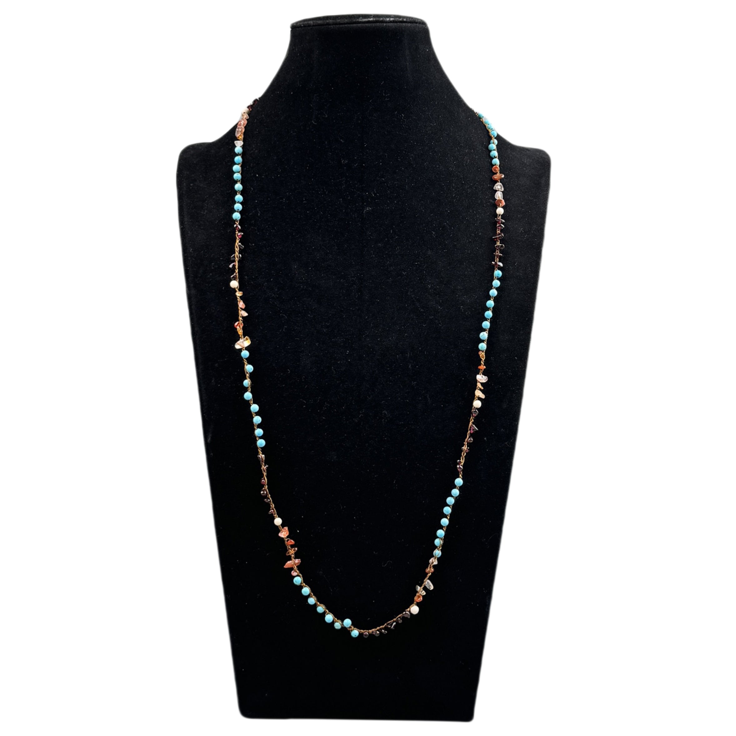 Handmade Braided Teal Cracked Turquoise Stone Beaded Necklace N5496