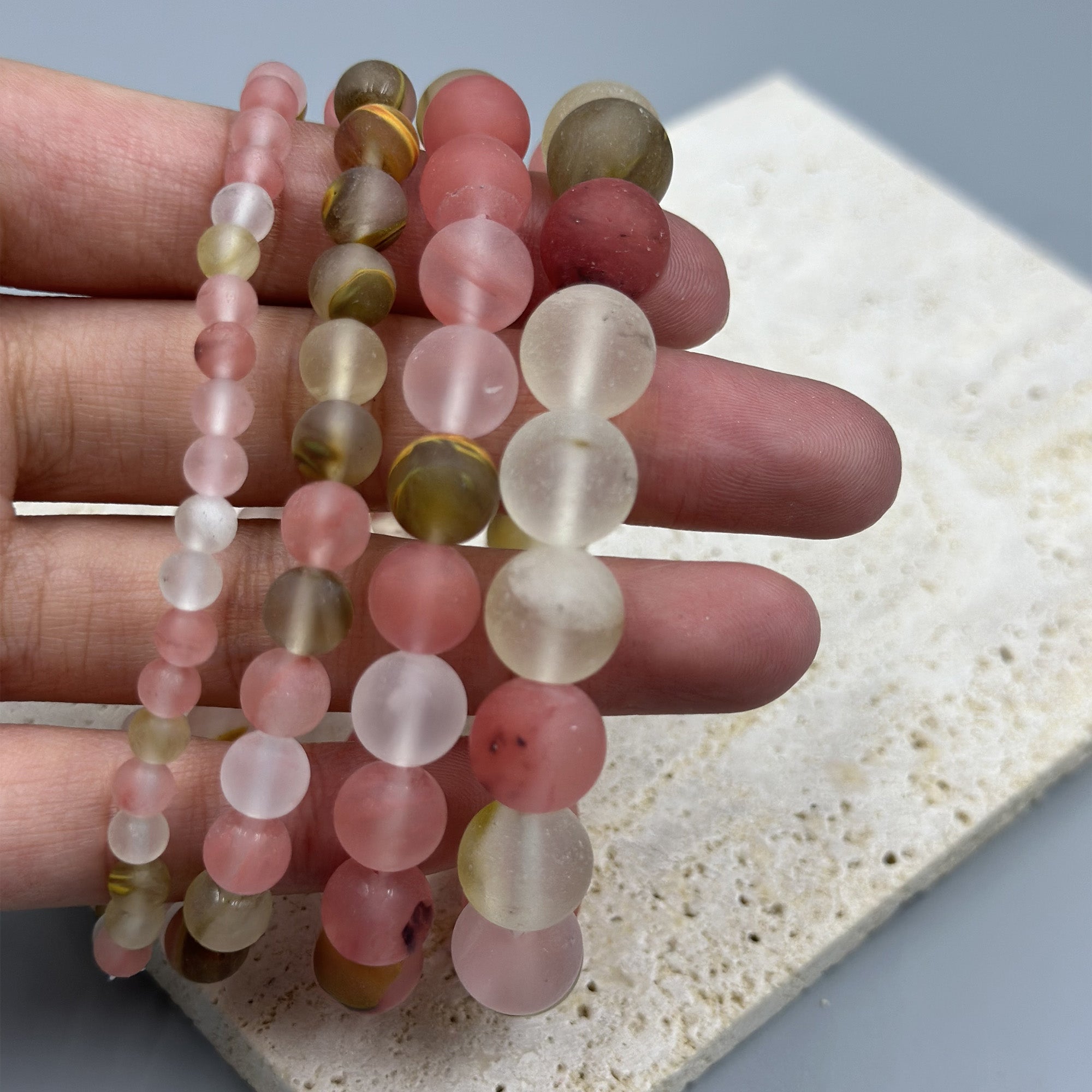 Cherry Quartz Matte Stone Stretch Bracelet B1872-12MM