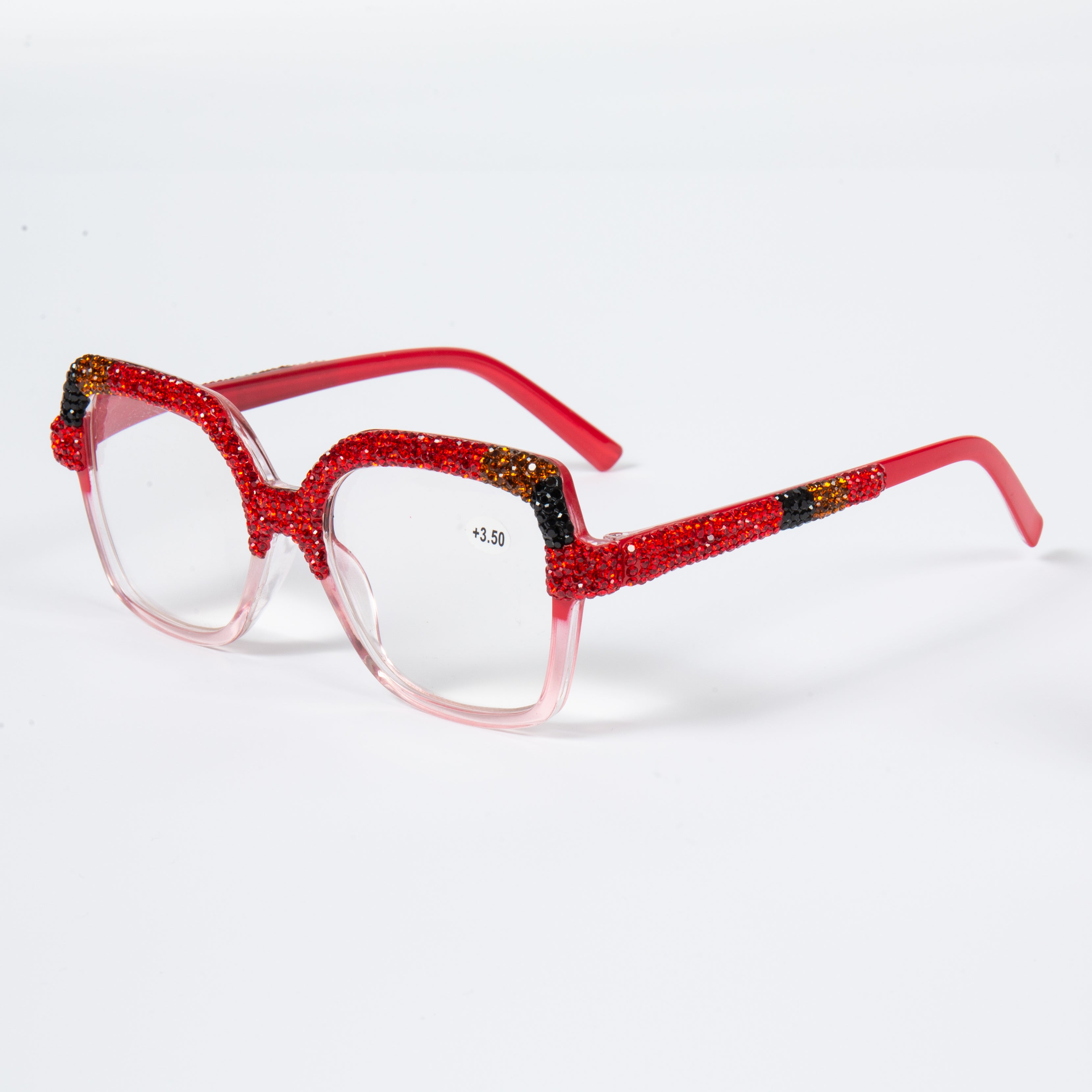 Handmade Rhinestone Rectangle Reader Glasses G0560 - Red