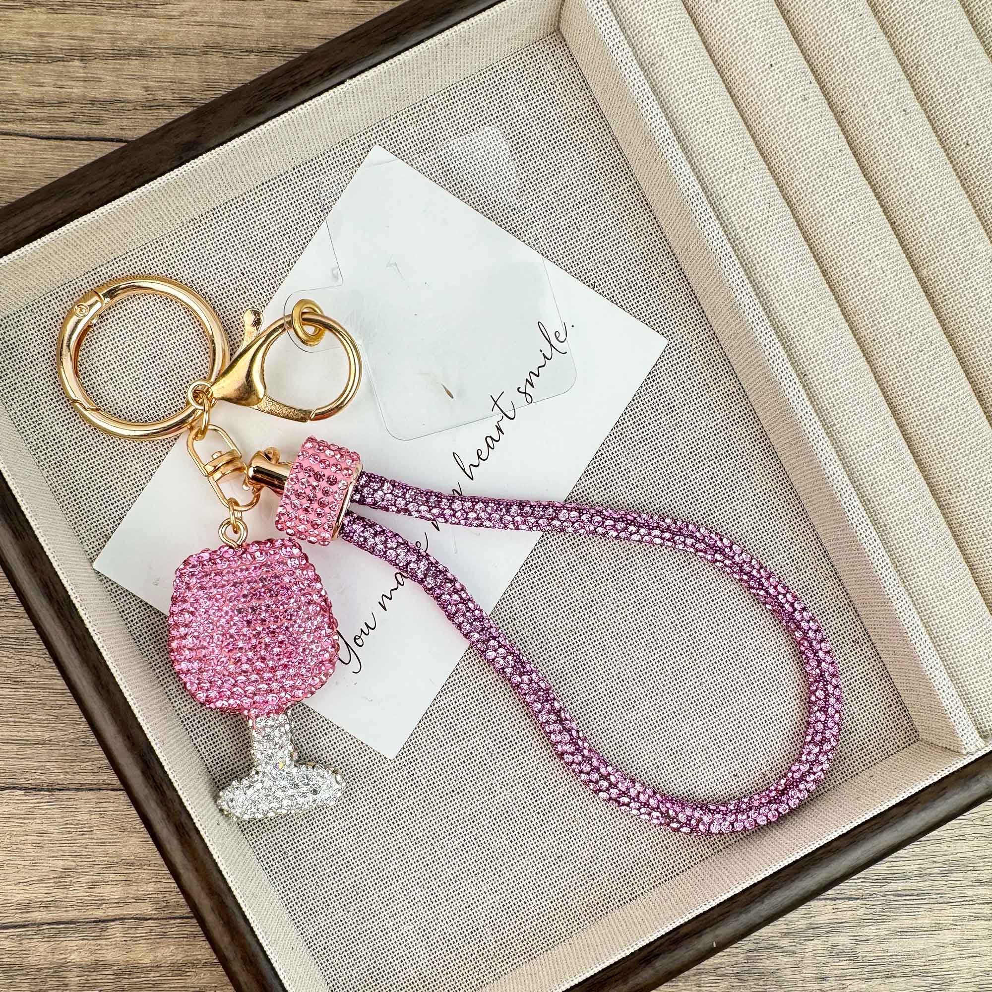 3. Wine Glass Rhinestone Alloy Keychain Wristlet k1434