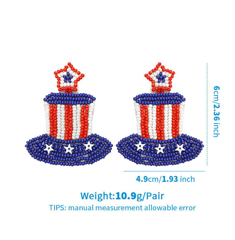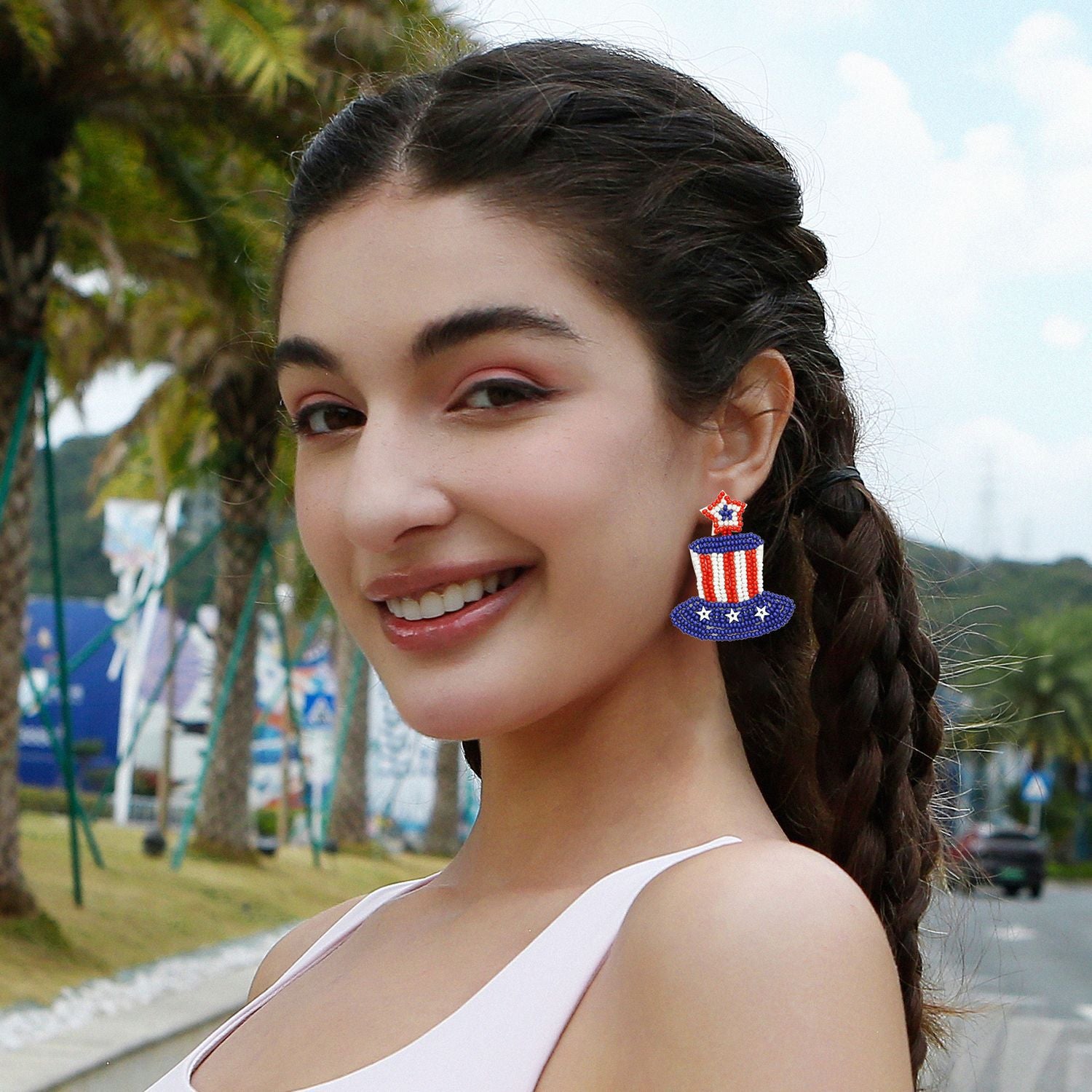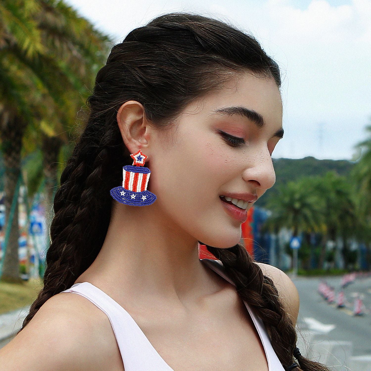 4th of July Earrings for Women Beaded Heart Star American Flag Dangle Drop Earrings Handmade Independence Day Patriotic Earrings Holiday Gifts