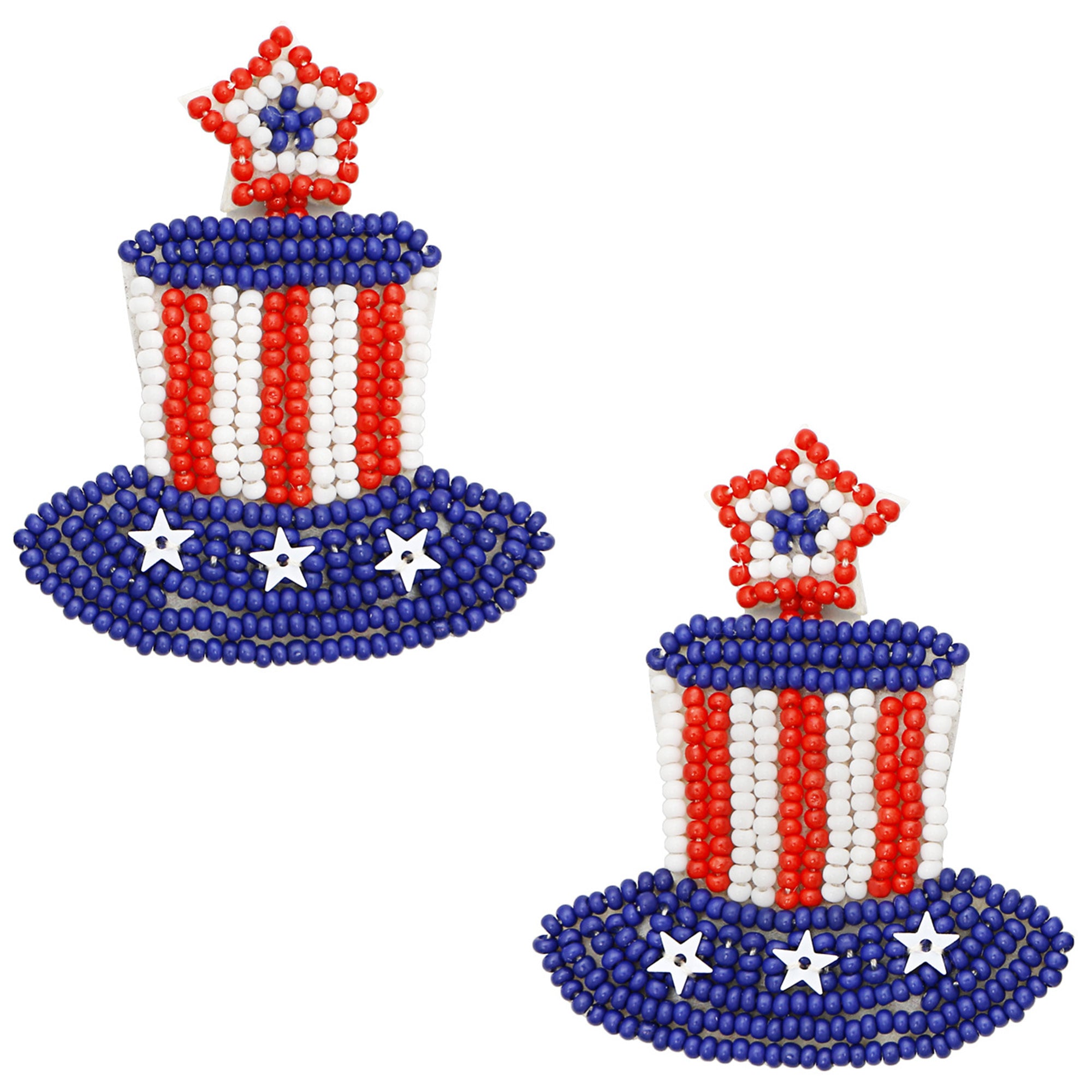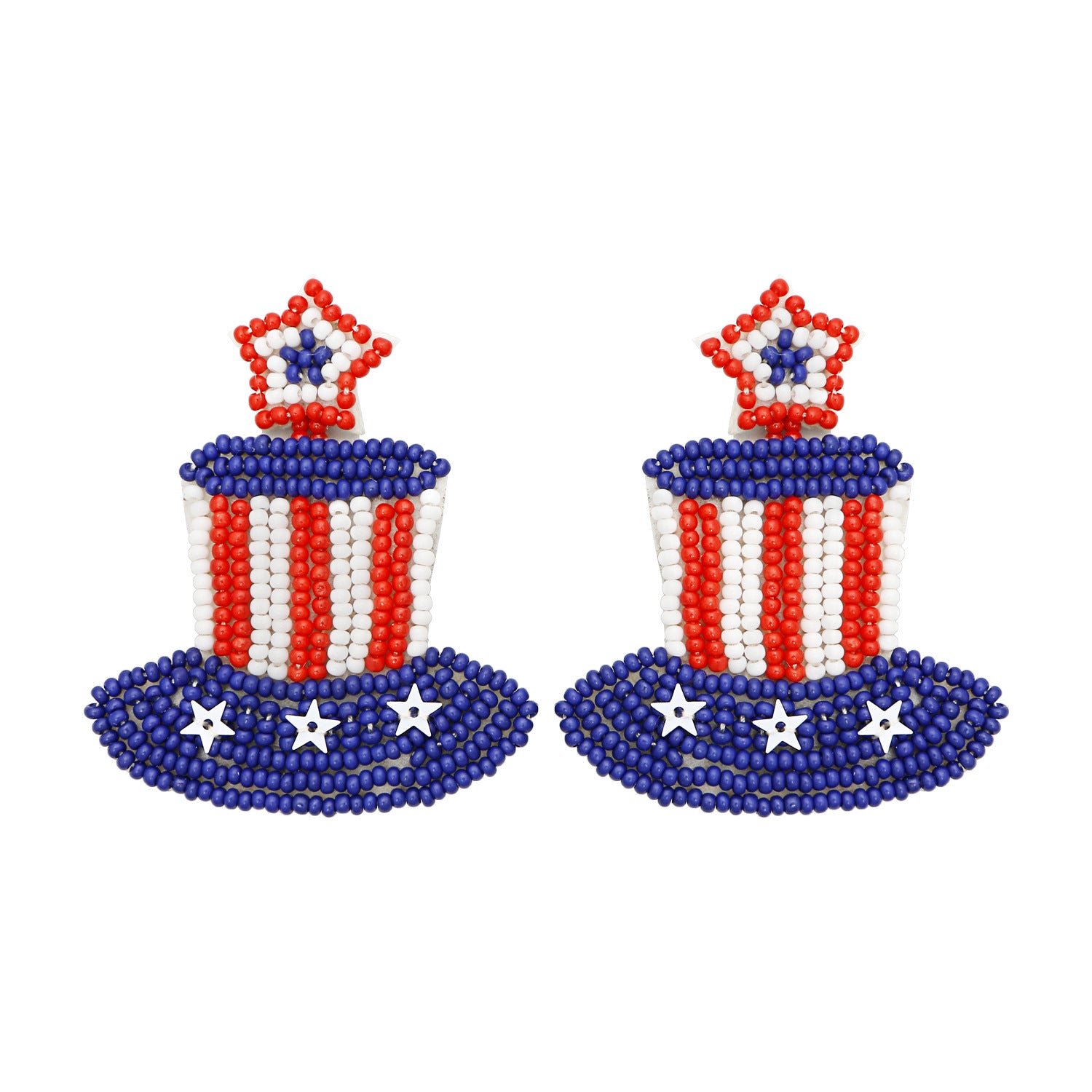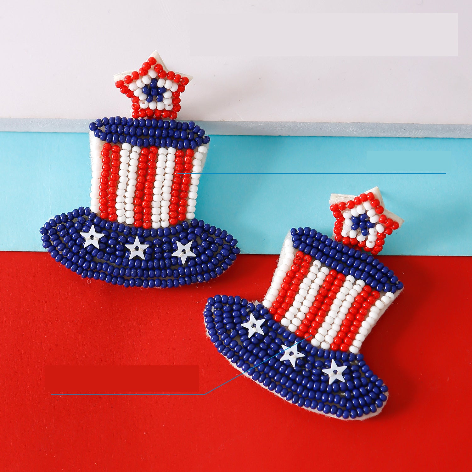 4th of July Earrings for Women Beaded Heart Star American Flag Dangle Drop Earrings Handmade Independence Day Patriotic Earrings Holiday Gifts