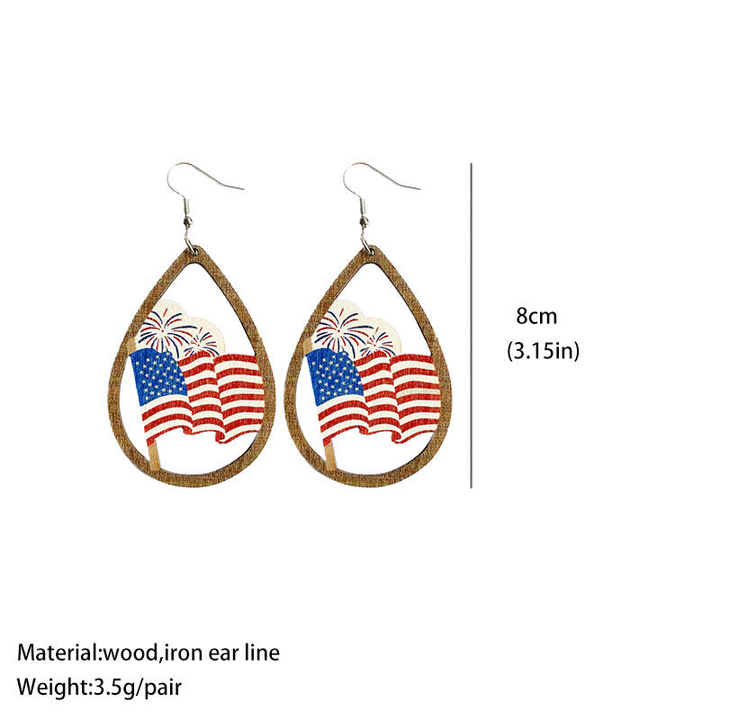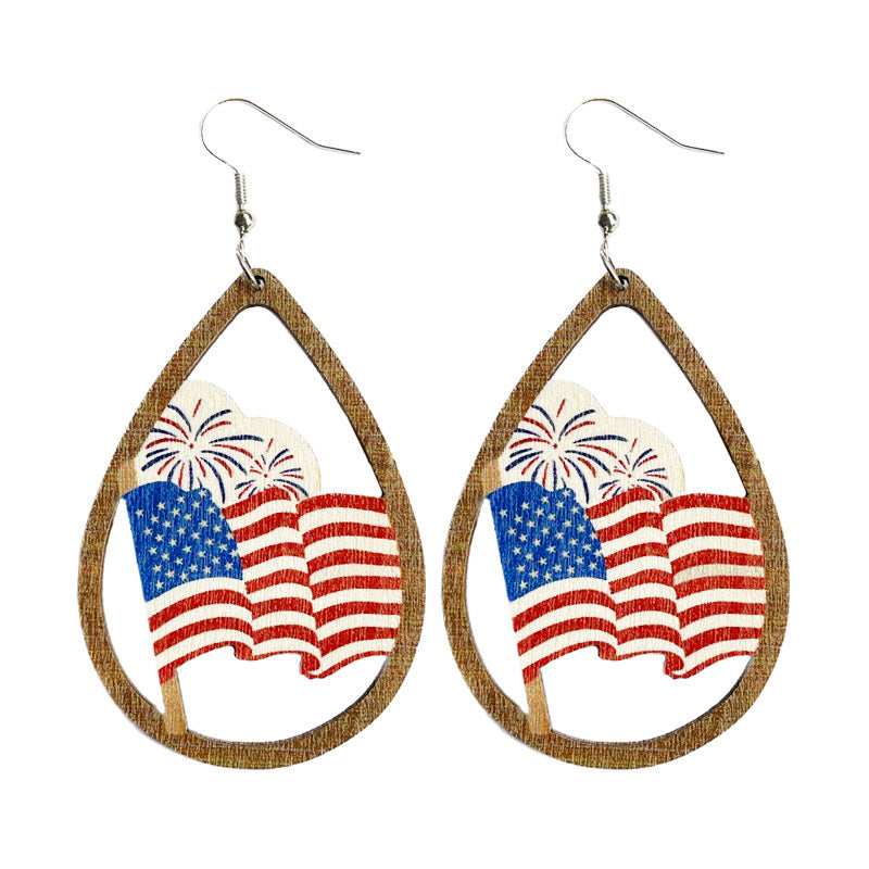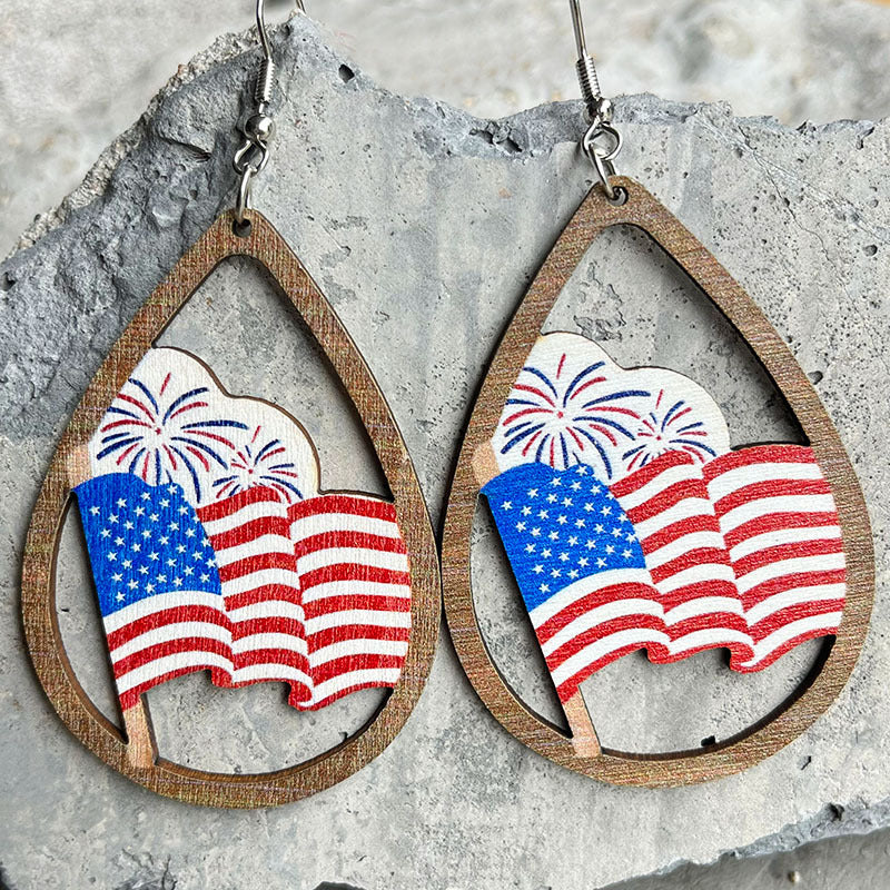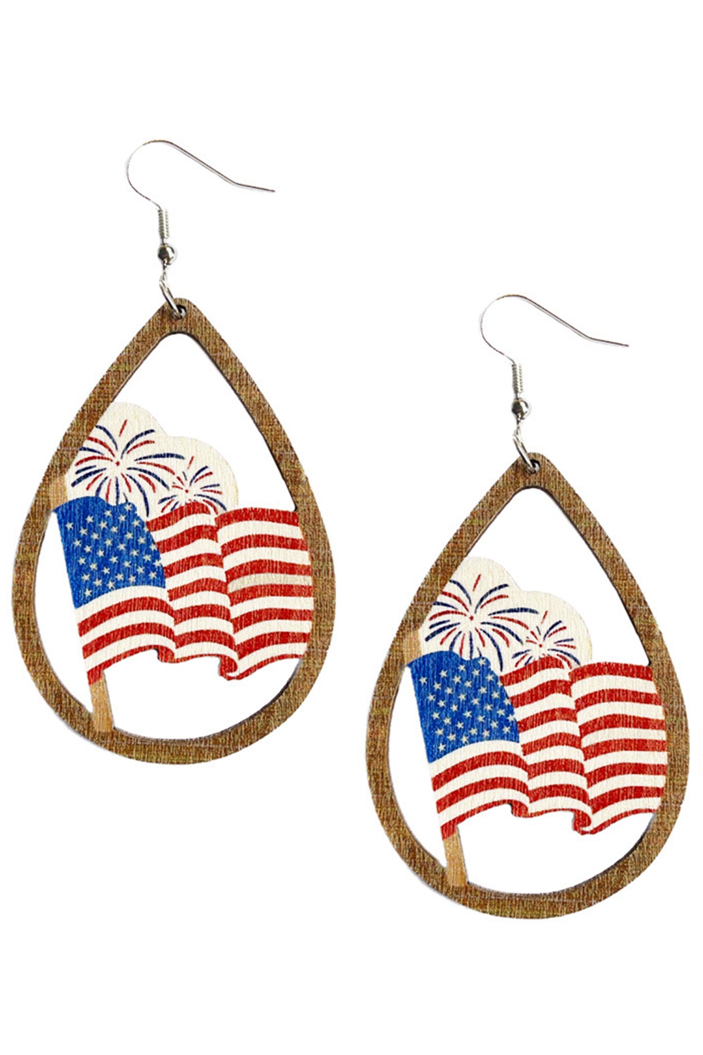 Teardrop American Flag Wooden Earrings E7905