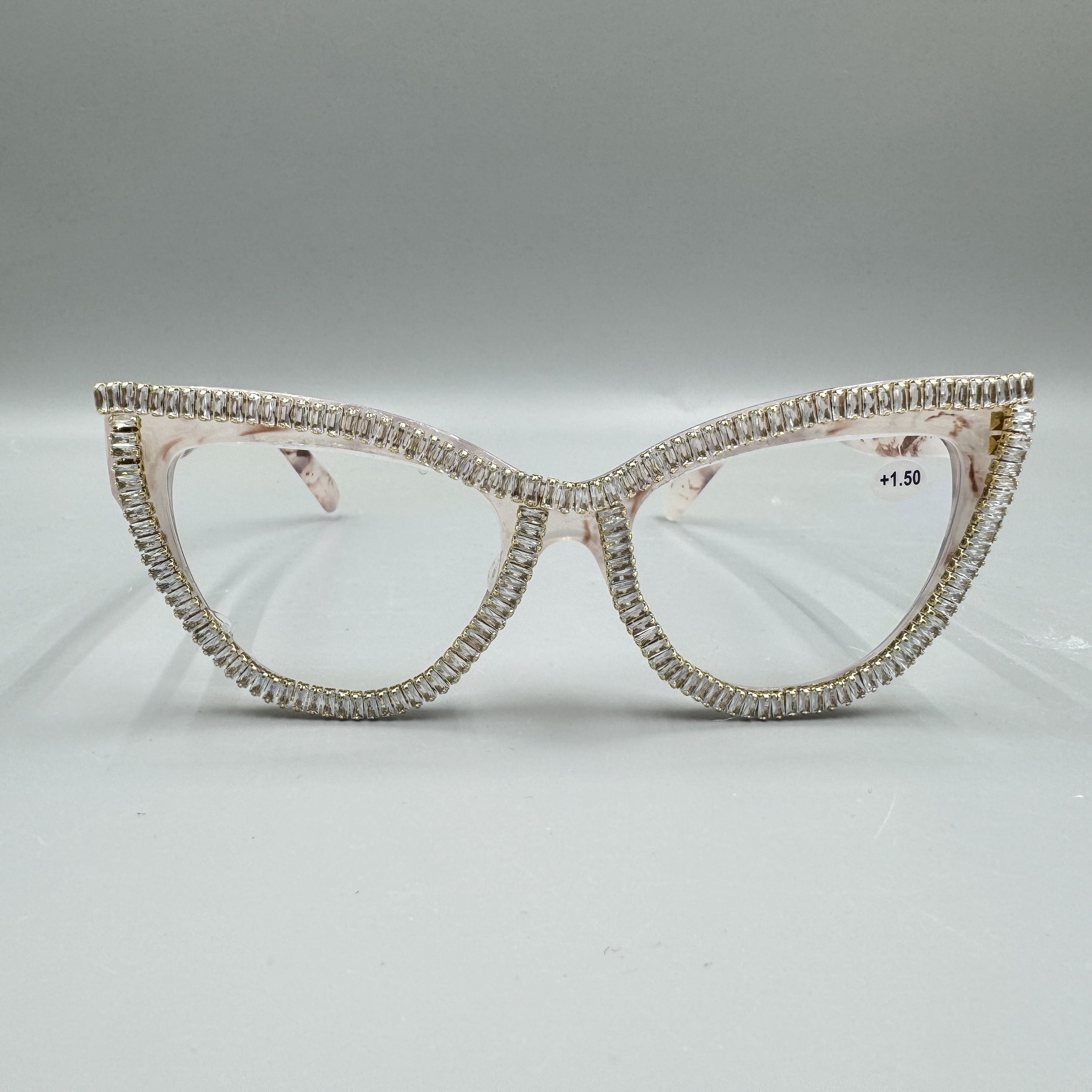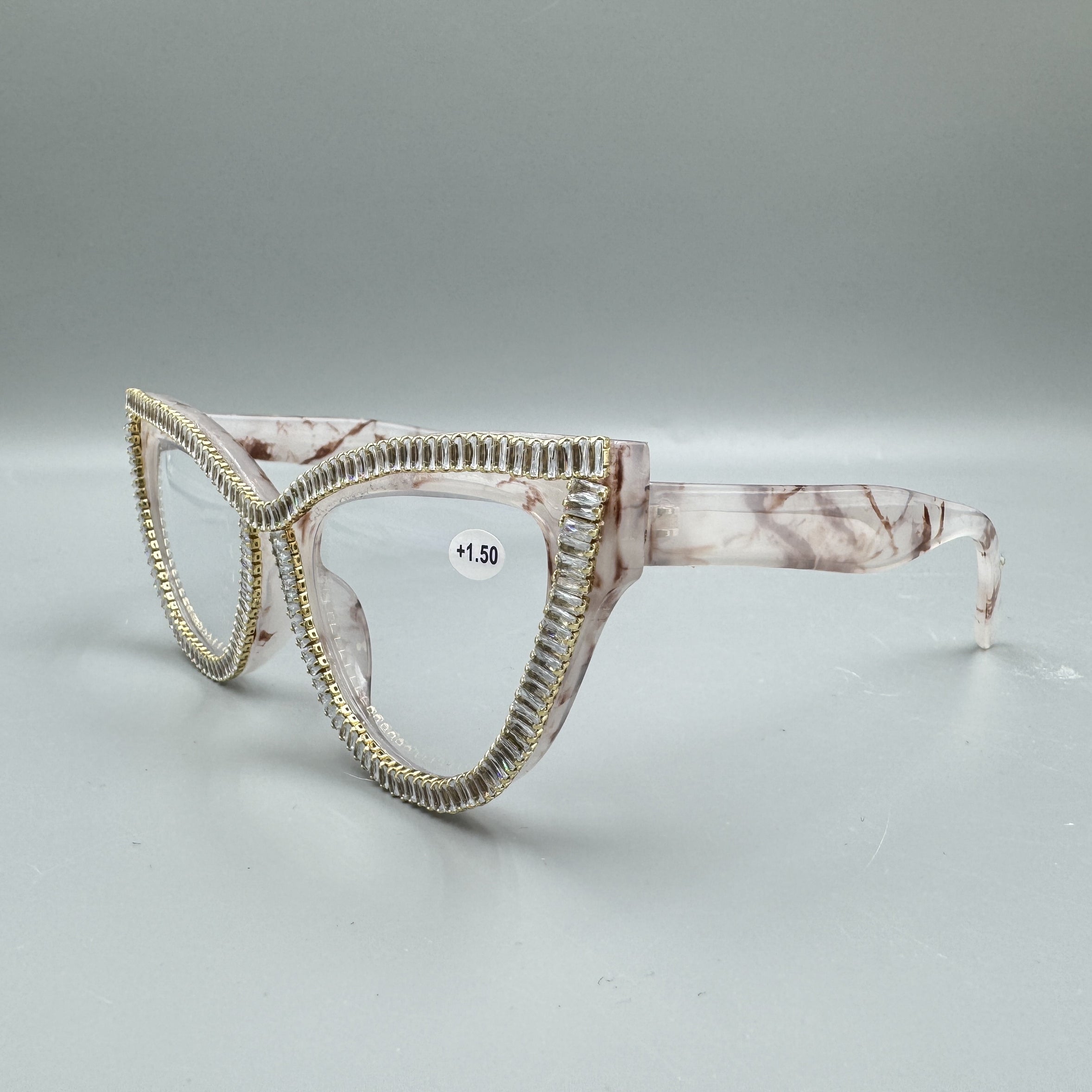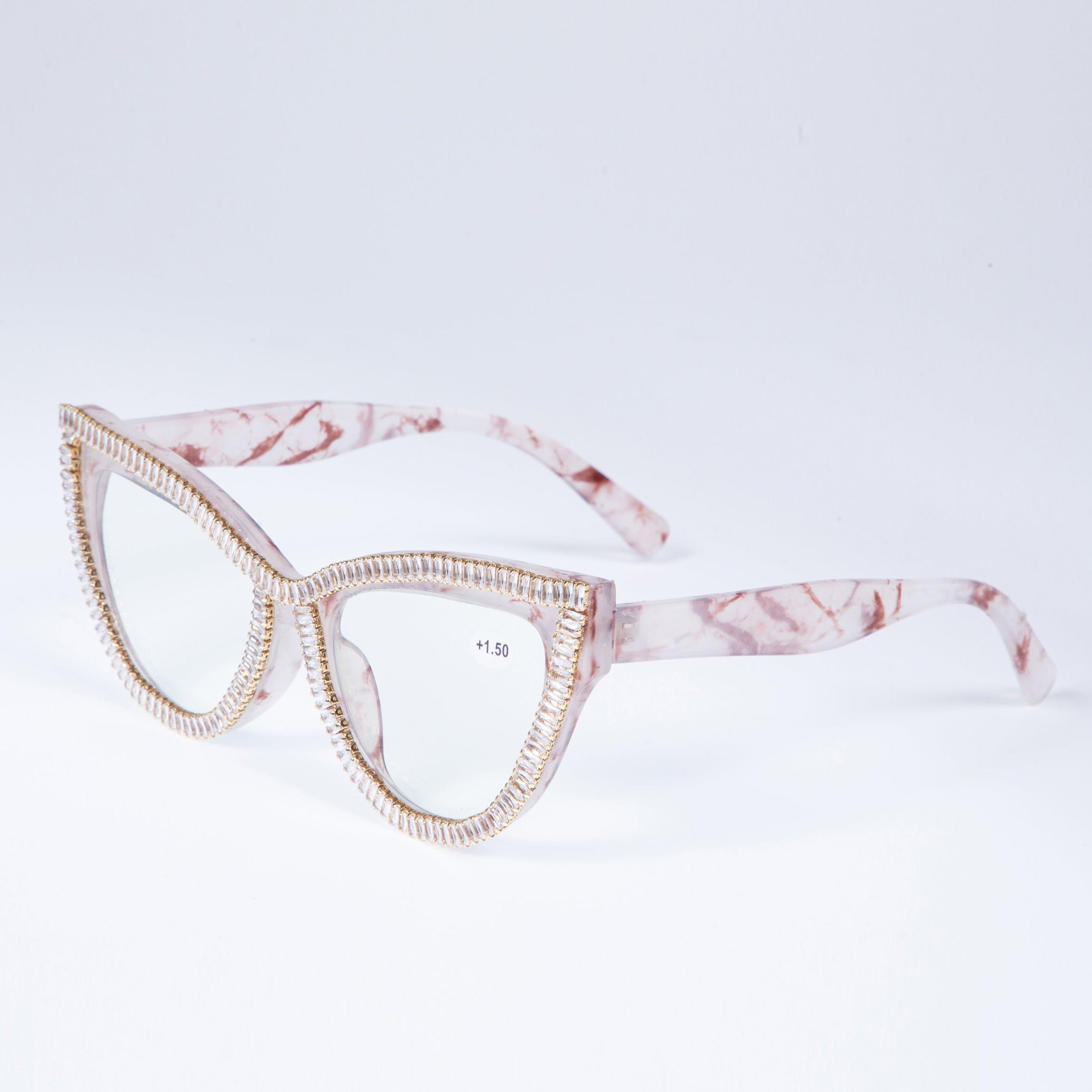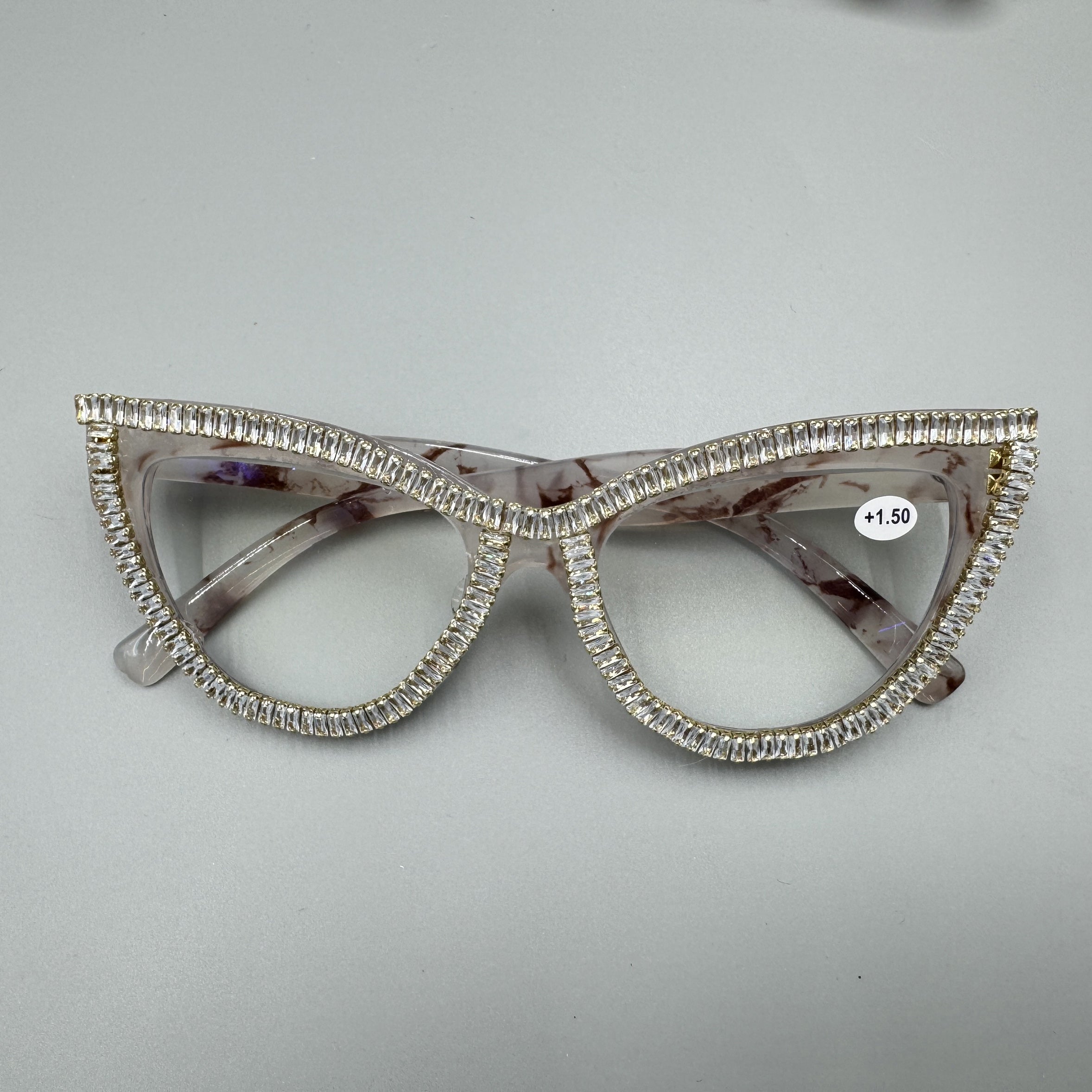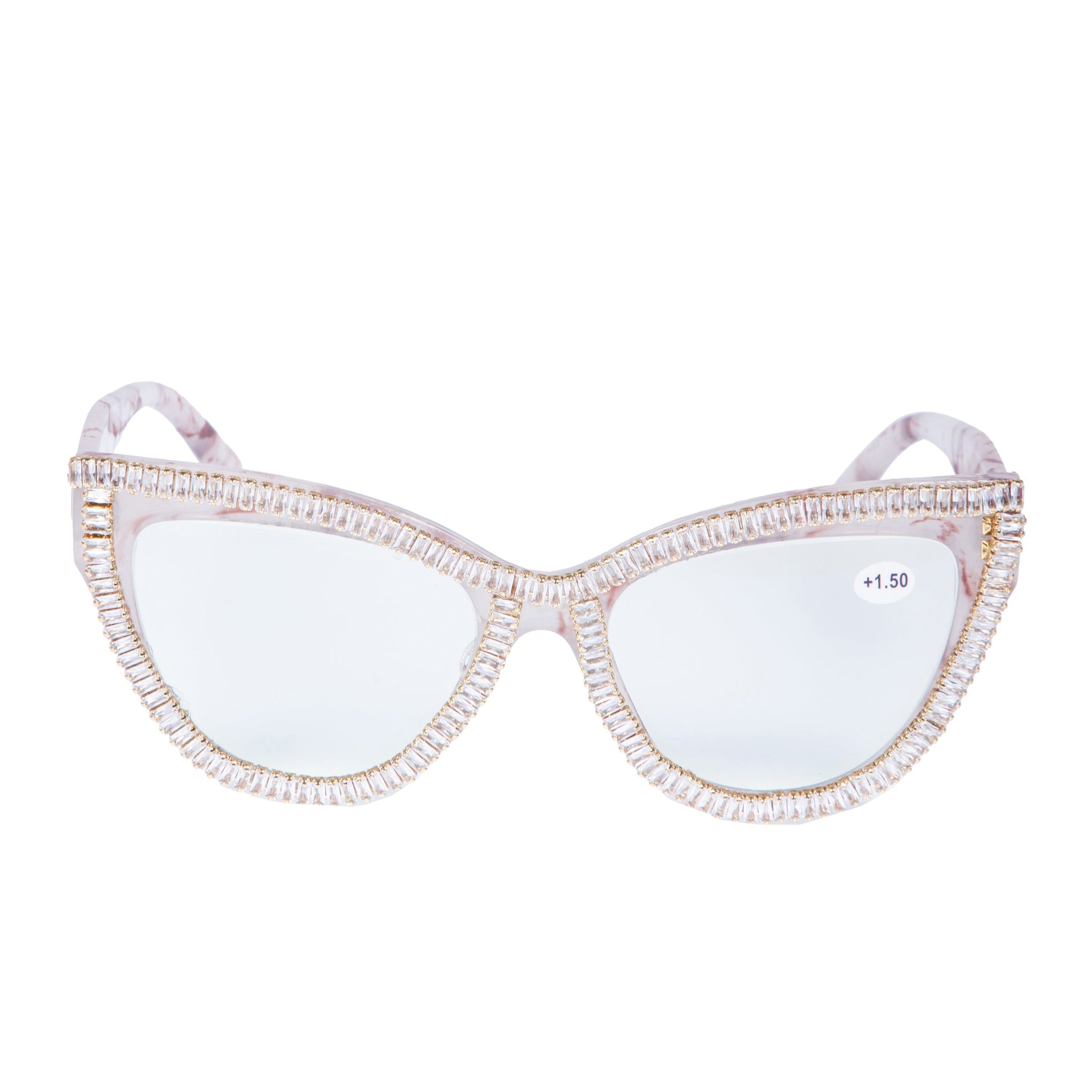 Handmade Rhinestone Cat Eye Reader G0455-White
