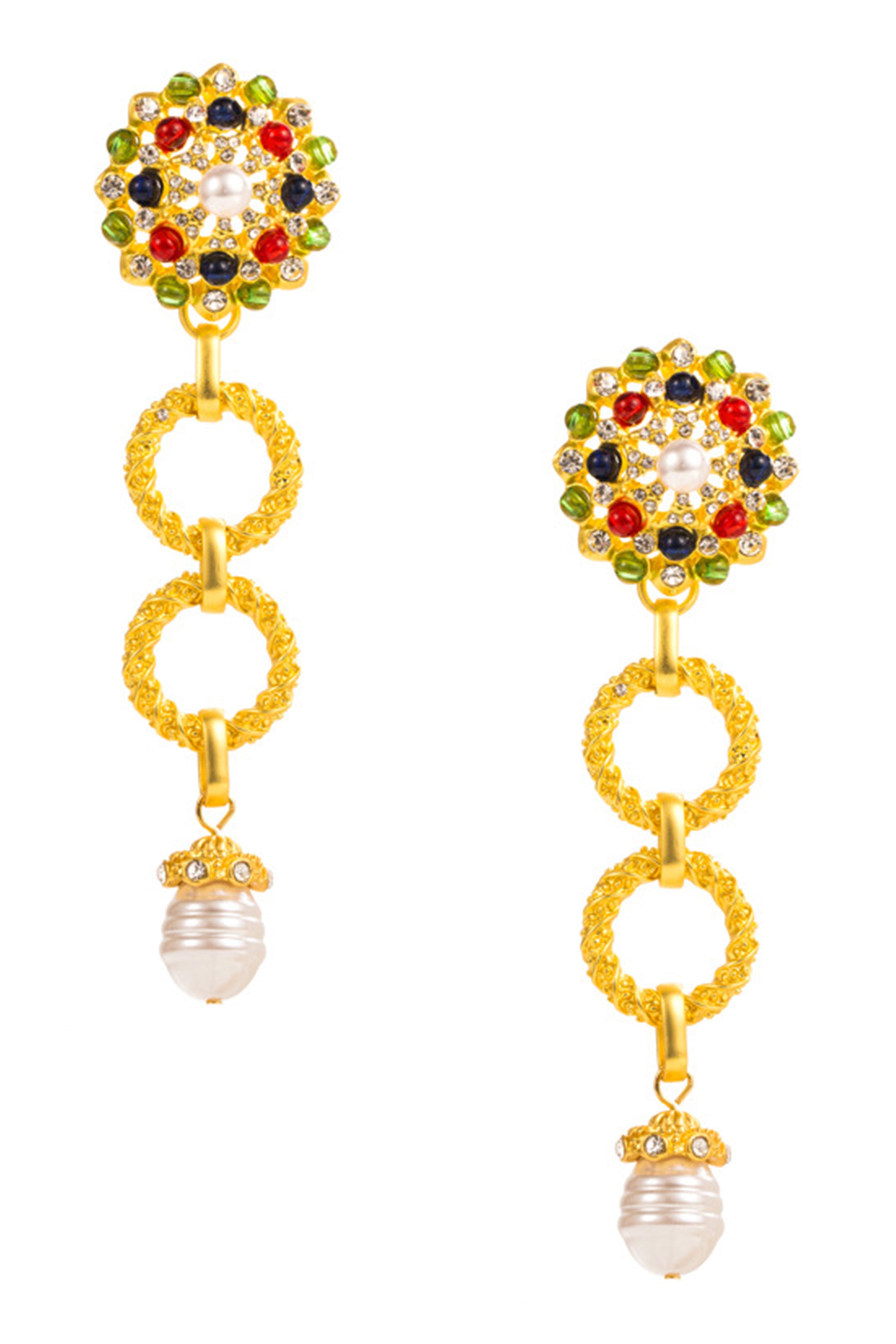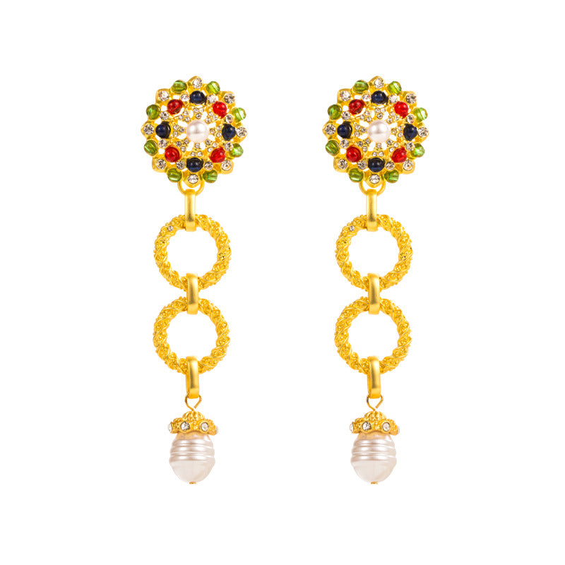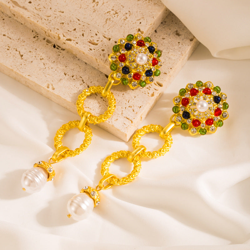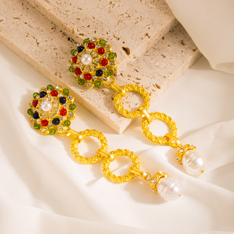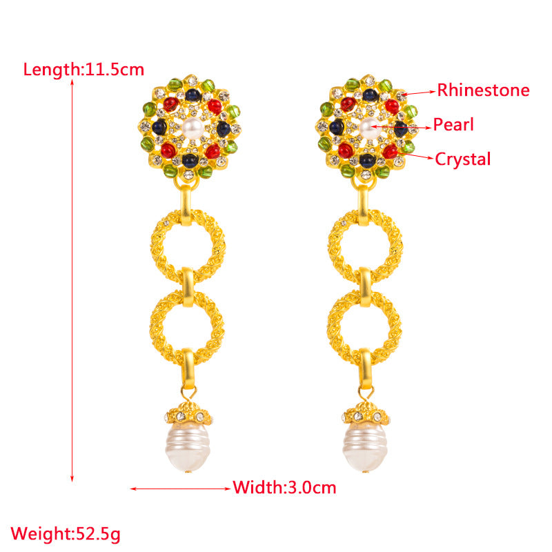 Floral Rhinestone Pearl Chain Earrings E7390