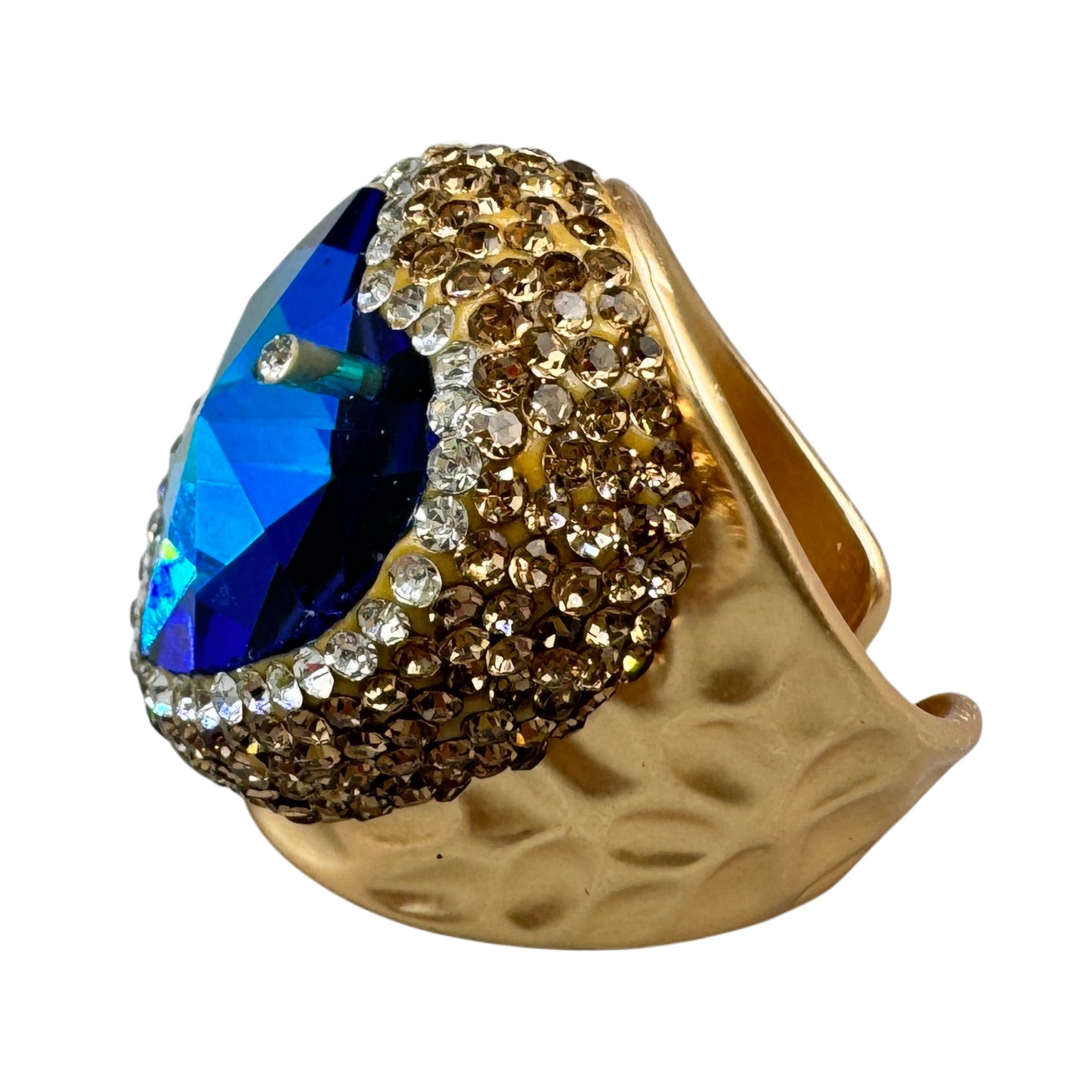 Rhinestone Diamond and Natural Gemstone Wide Band Ring Gemstone Women Stainless Steel Ring