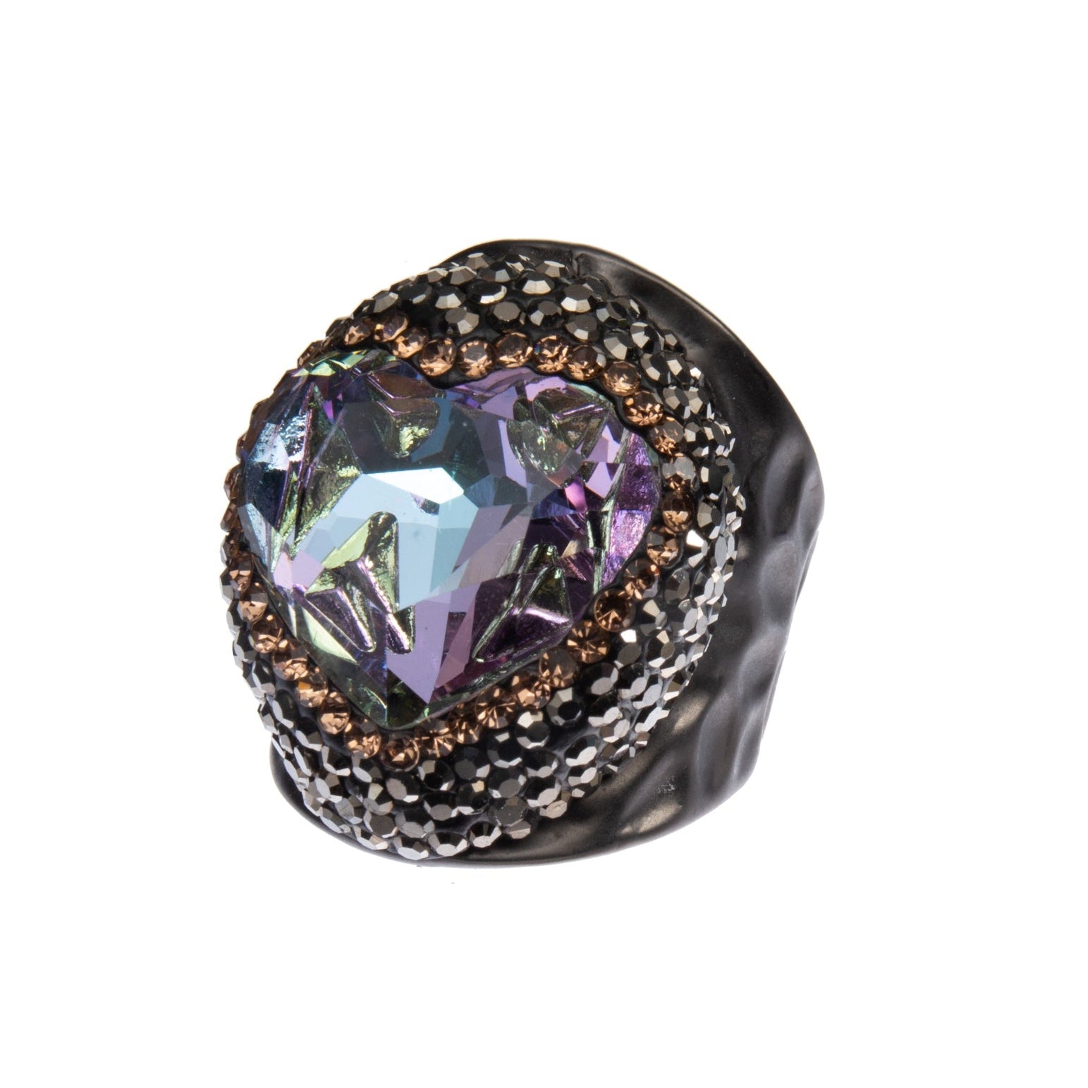 Multi Color Crystal With Rhinestone Metal Ring R2718-Black