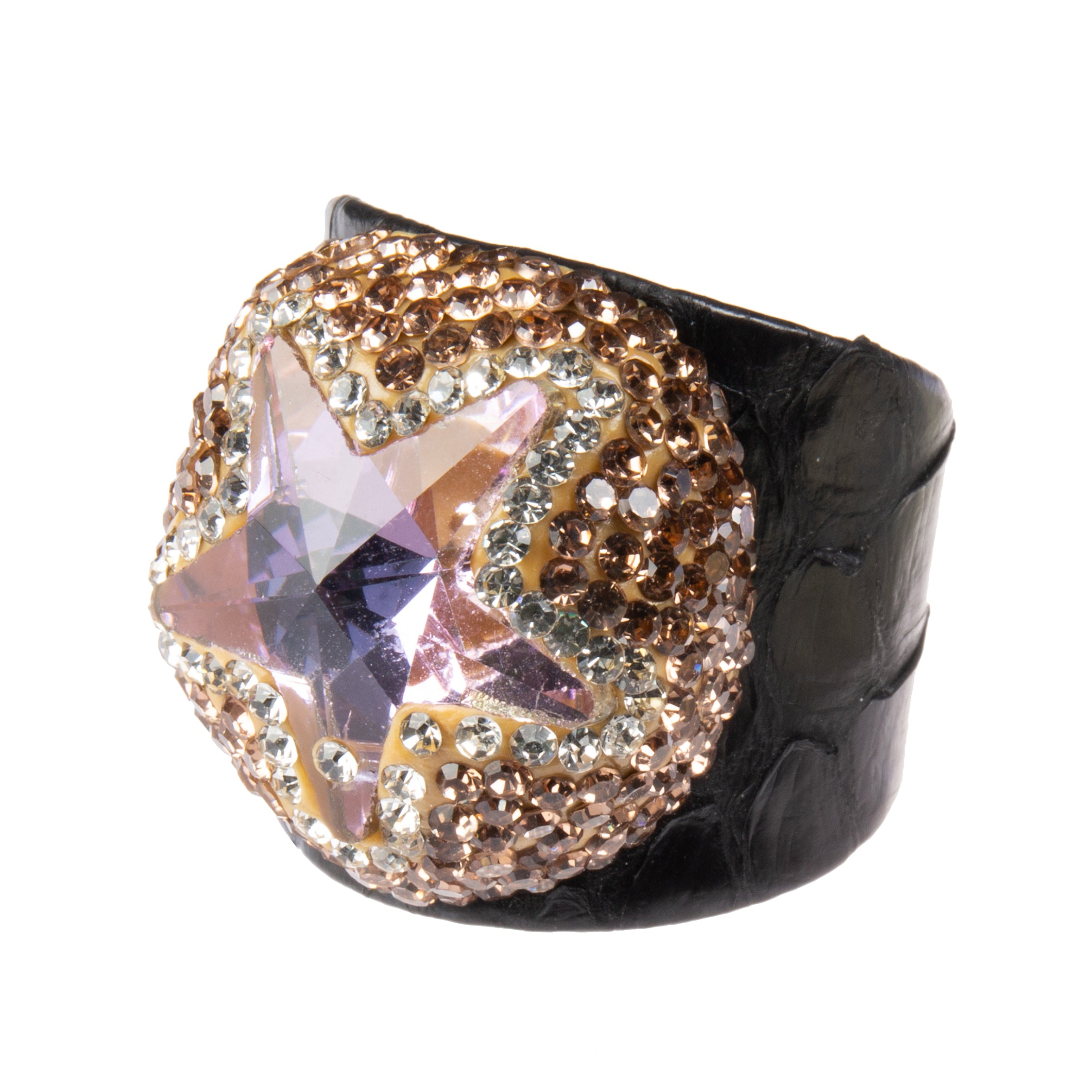 3. Pentagram Crystal With Rhinestone Metal Leather Ring R2763