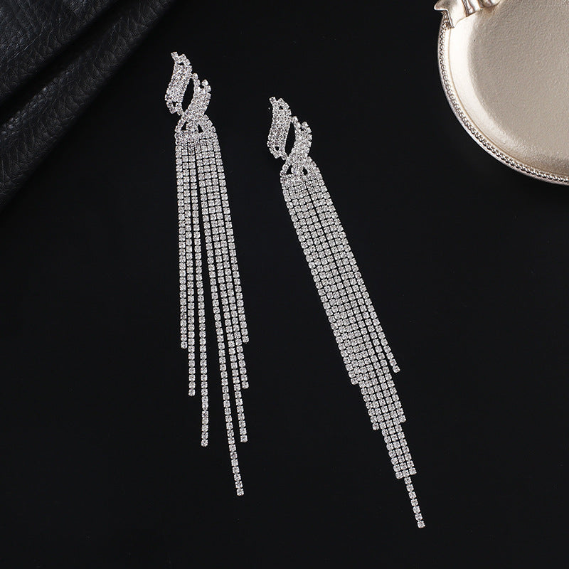 Geometry Tassel Cubic Zirconia Earrings E7679