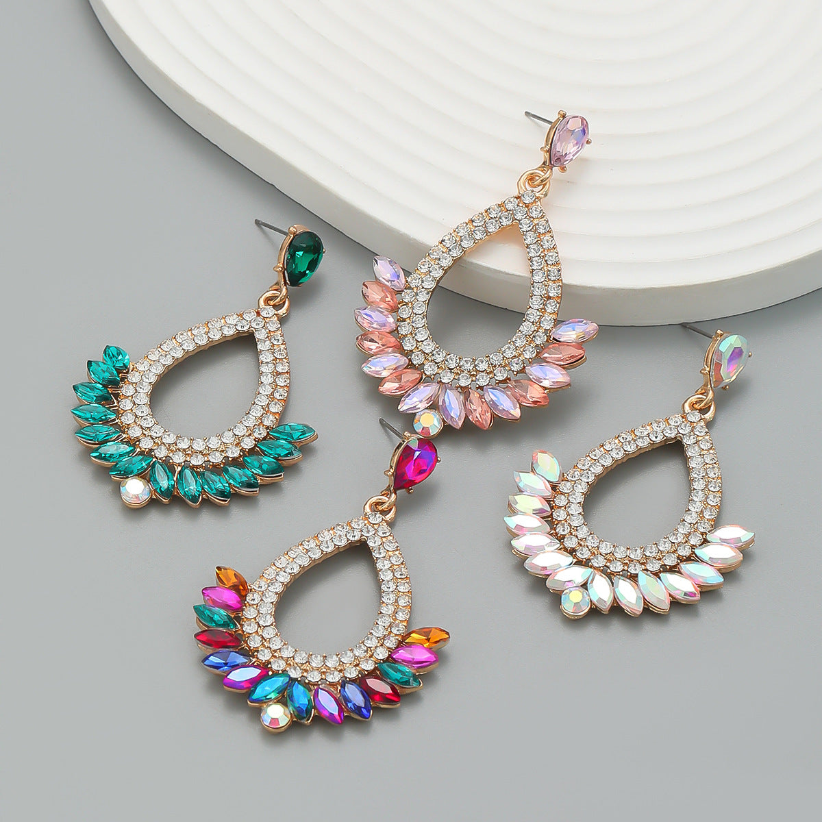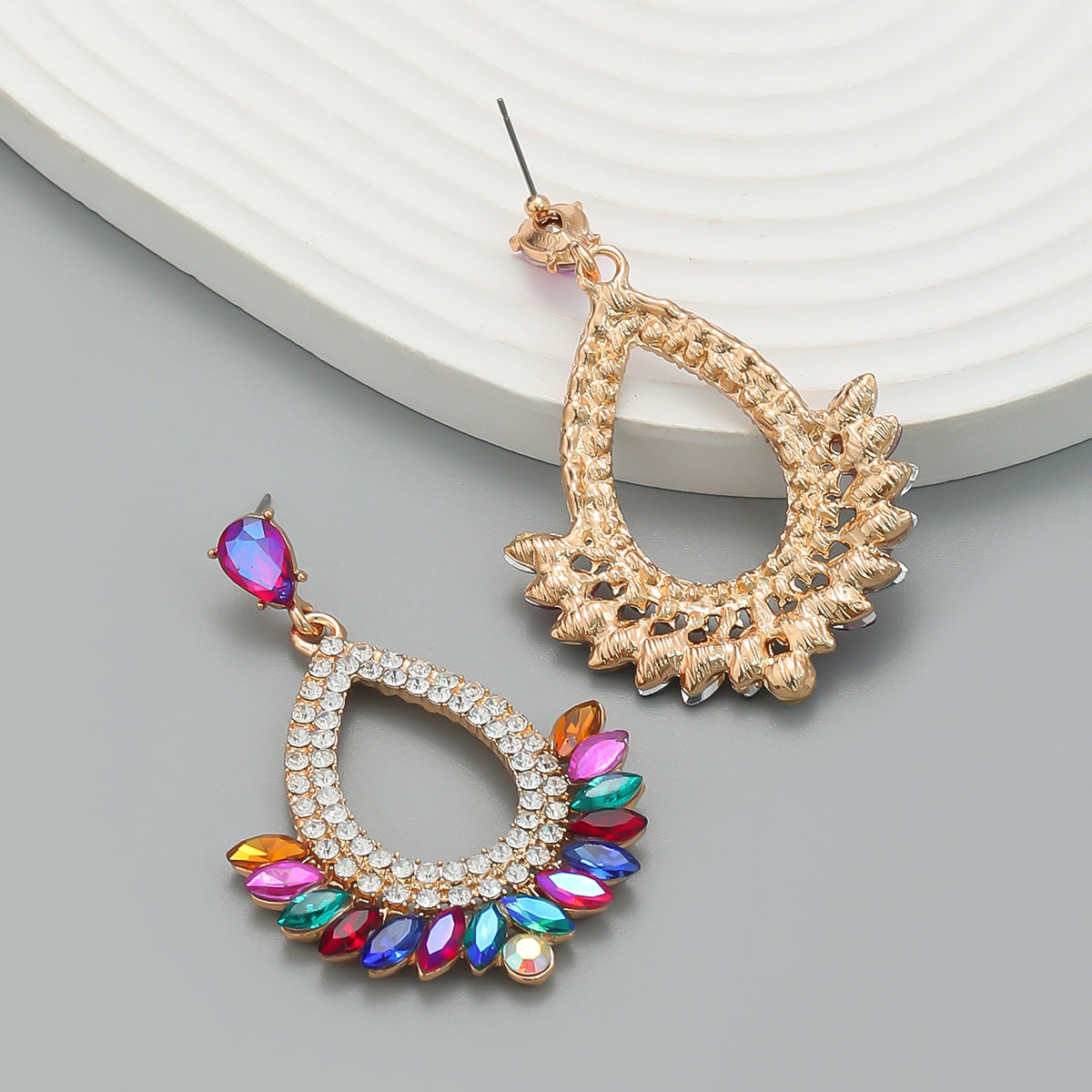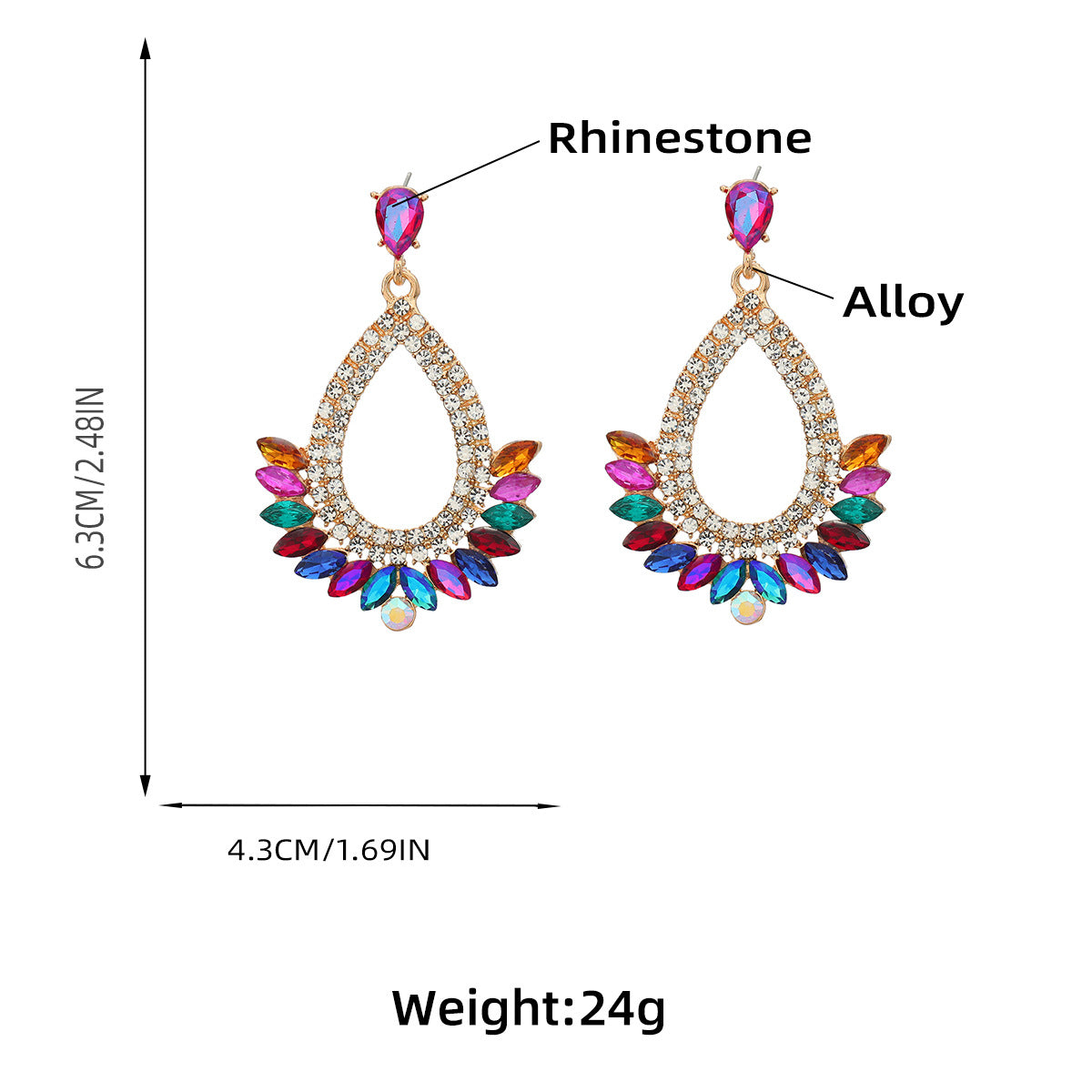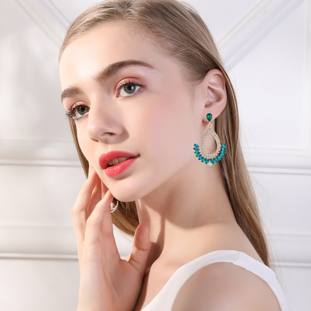 Crystal Column Alloy Hoop Earrings E7030