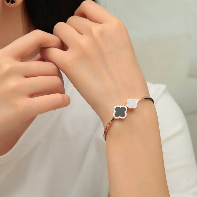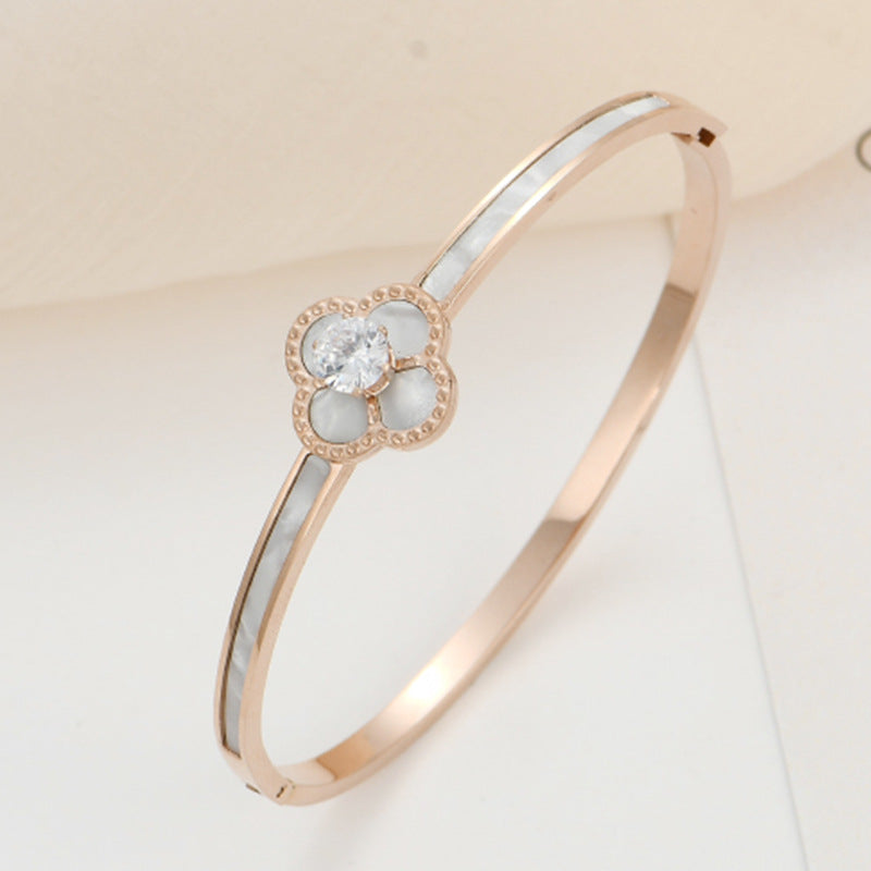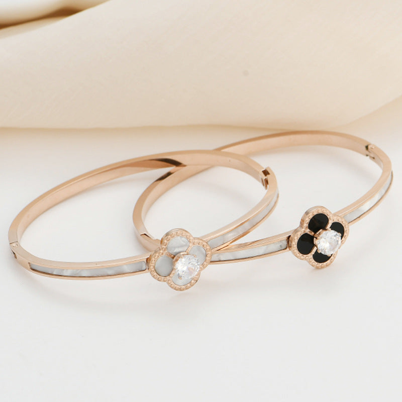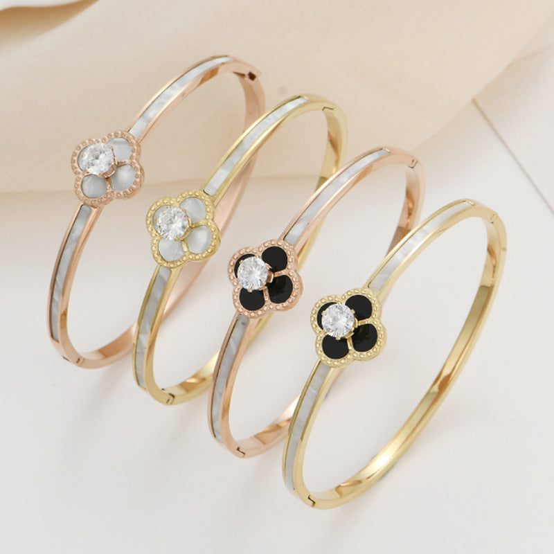 Clover Zircon Stainless Steel Bracelet B2727
