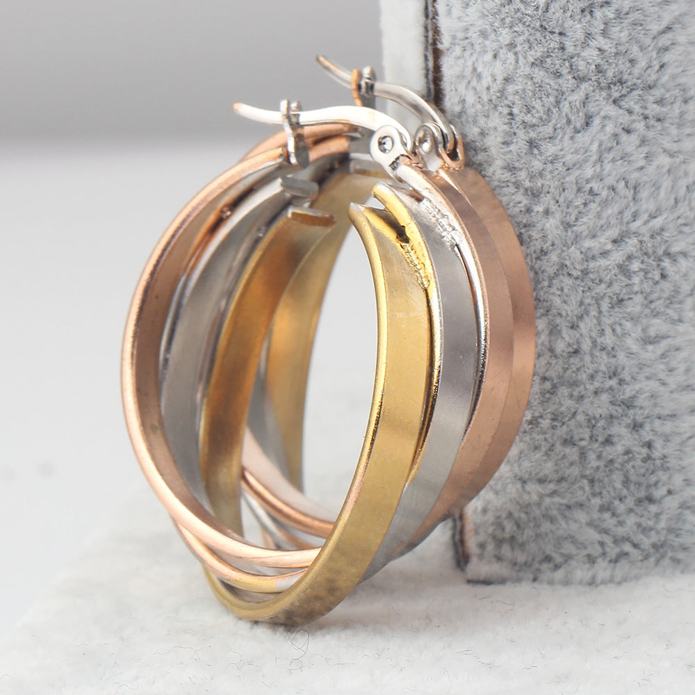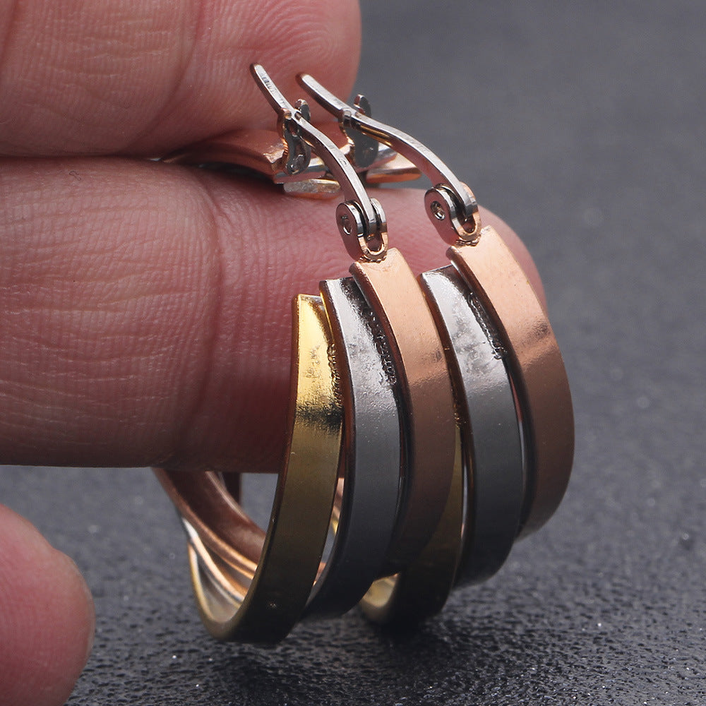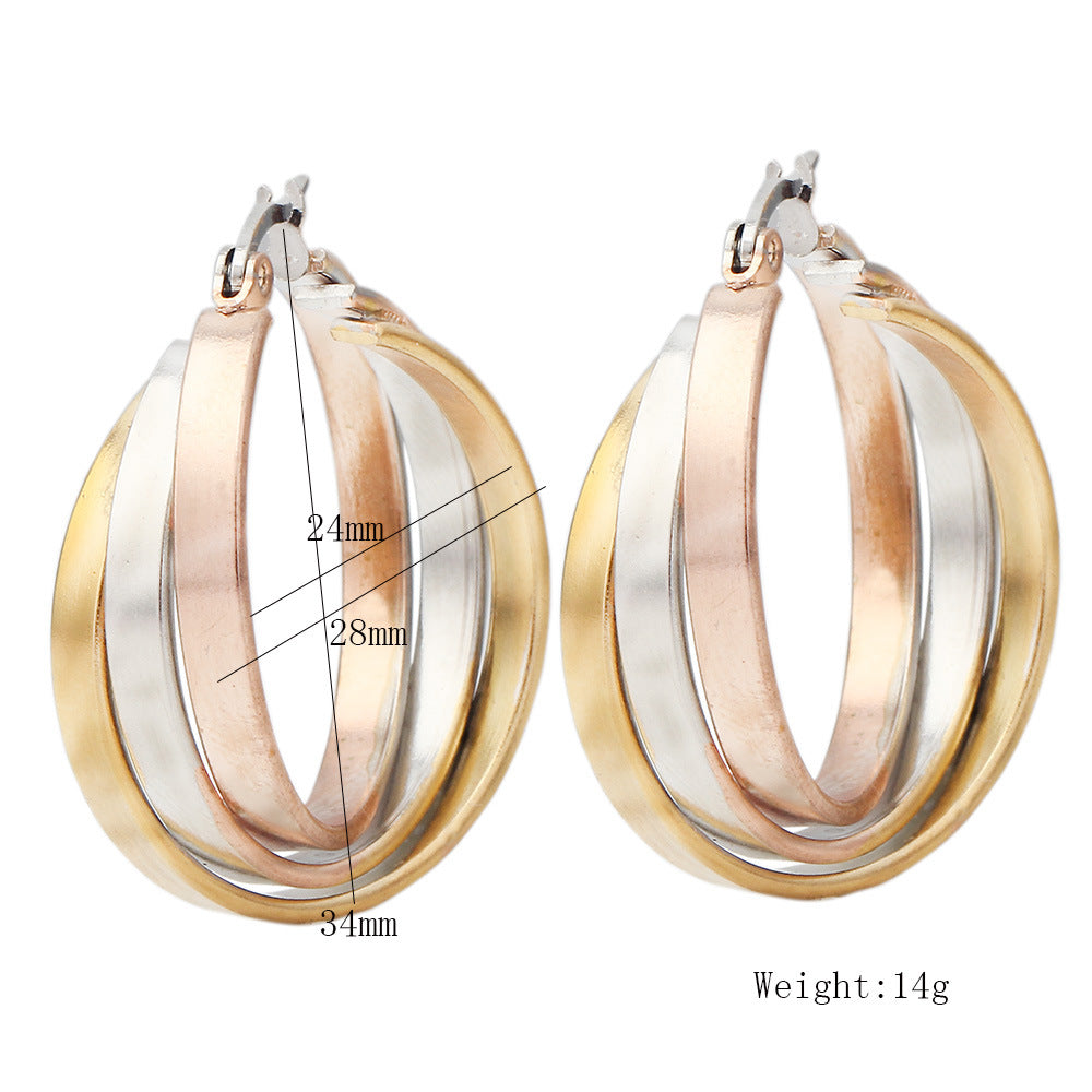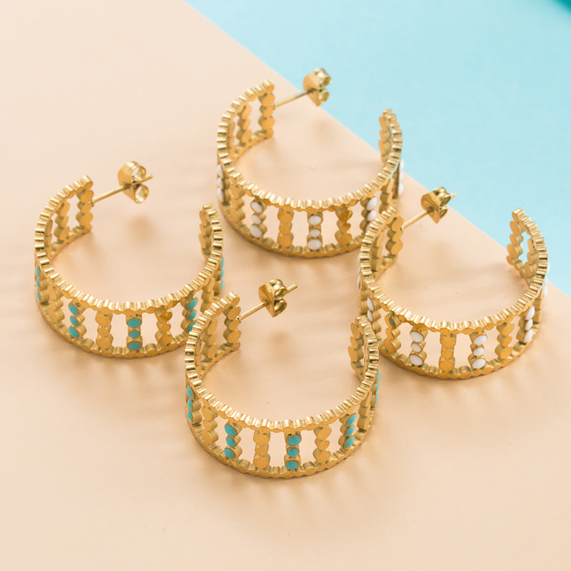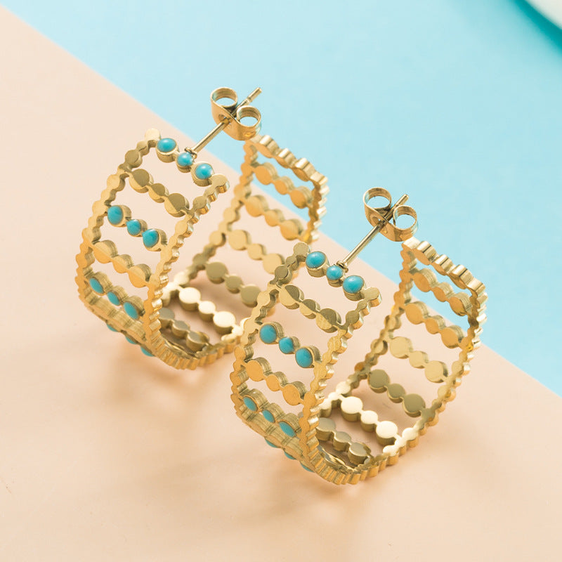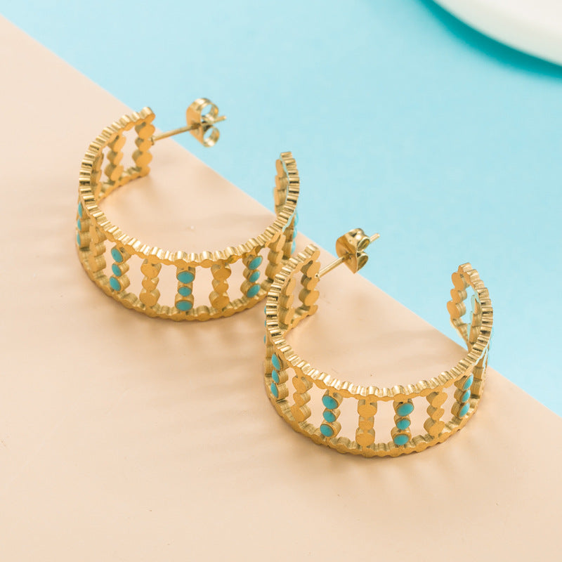 Rhinestone Stainless Steel Hoop Earrings E3404