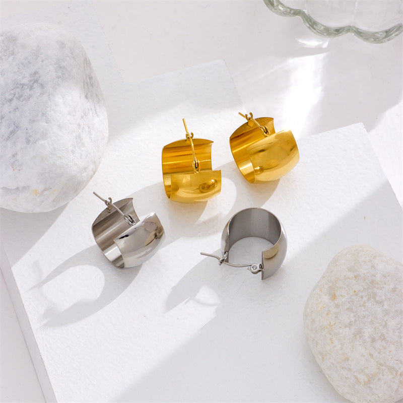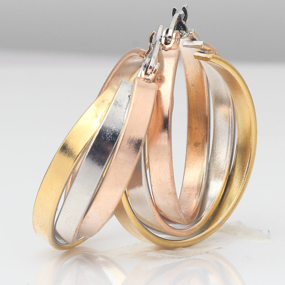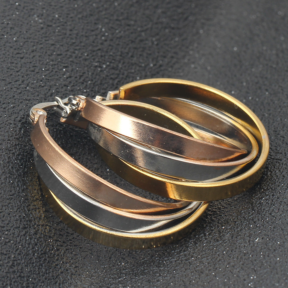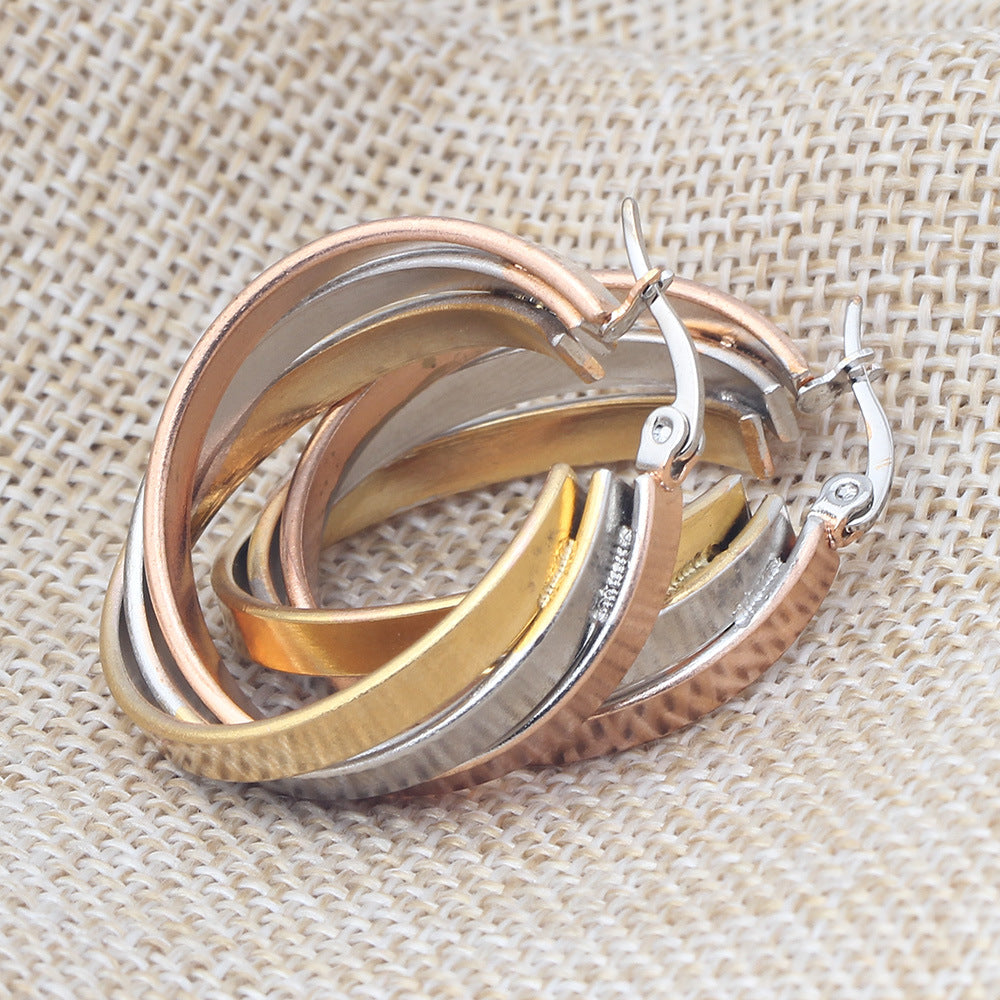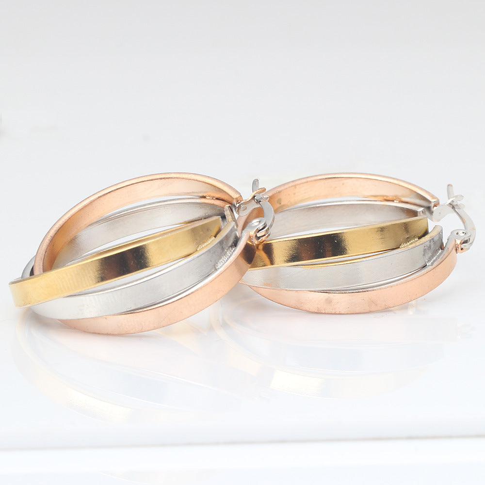 Rhinestone Stainless Steel Hoop Earrings E3404