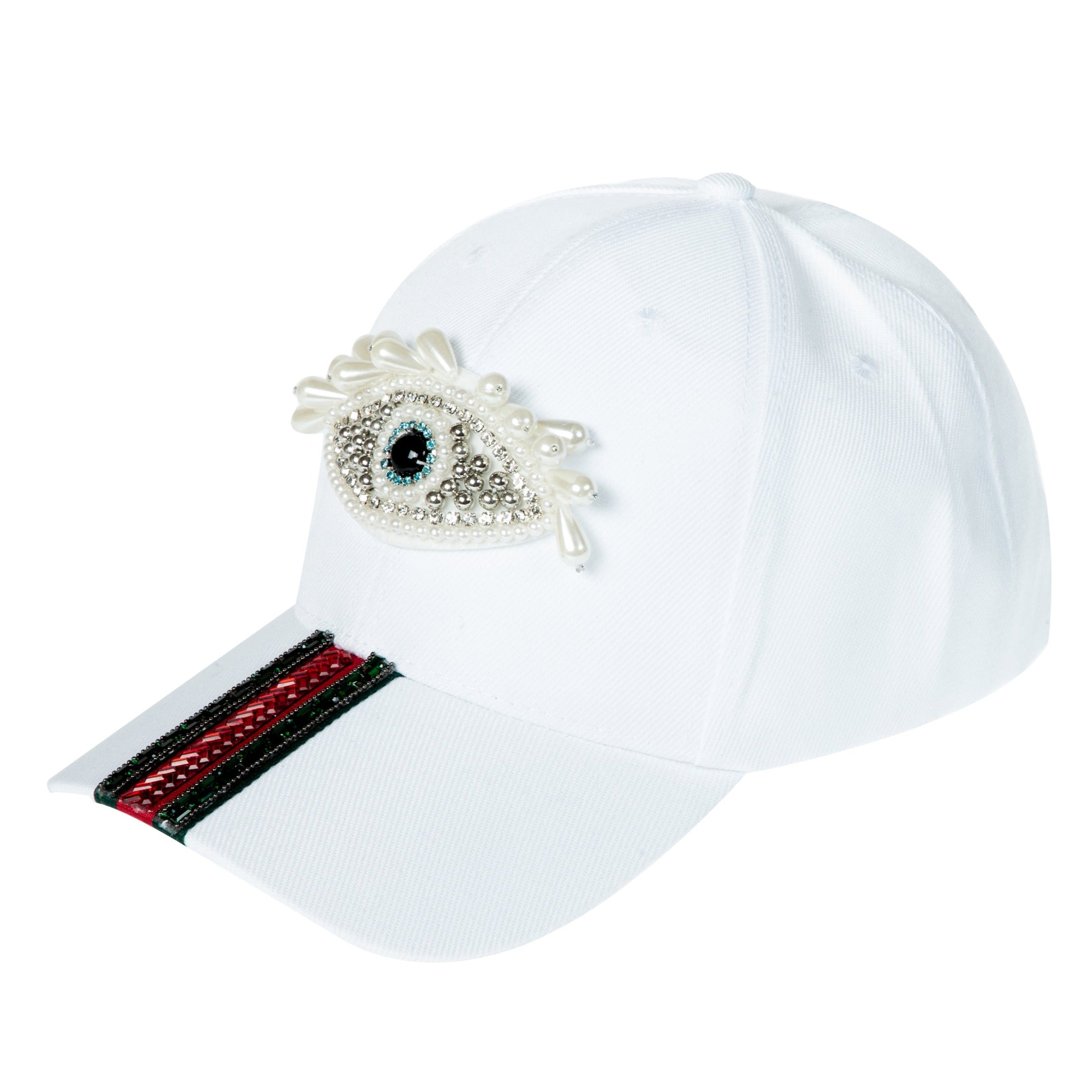 Gorra de béisbol con rayas de diamantes de imitación y perlas de ojo malvado C0765
