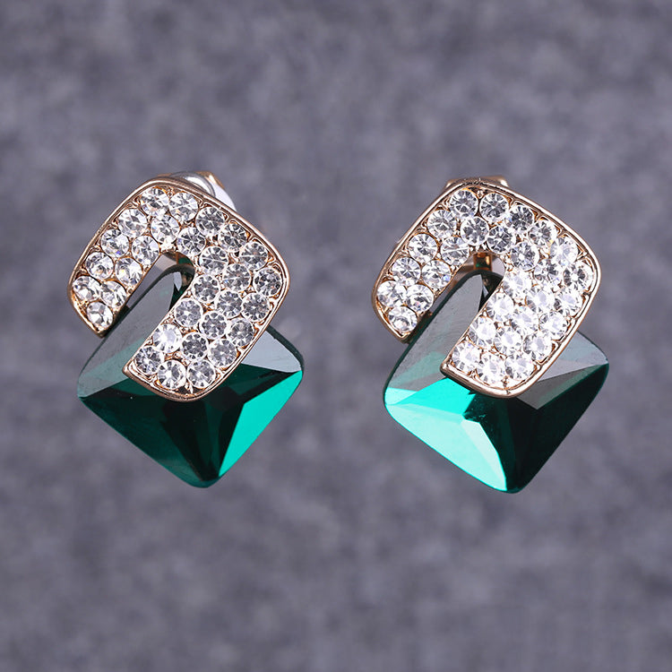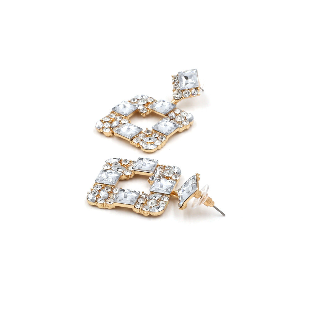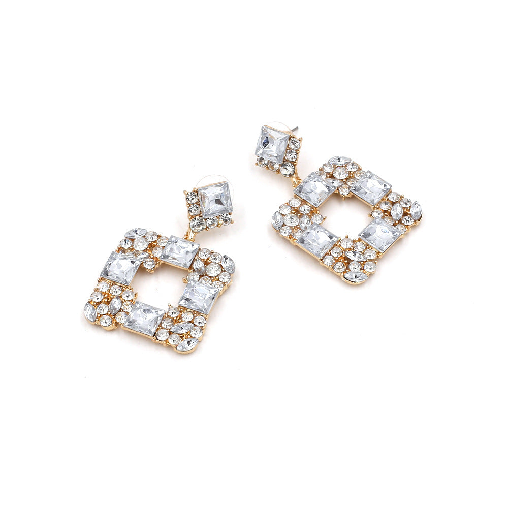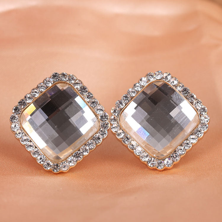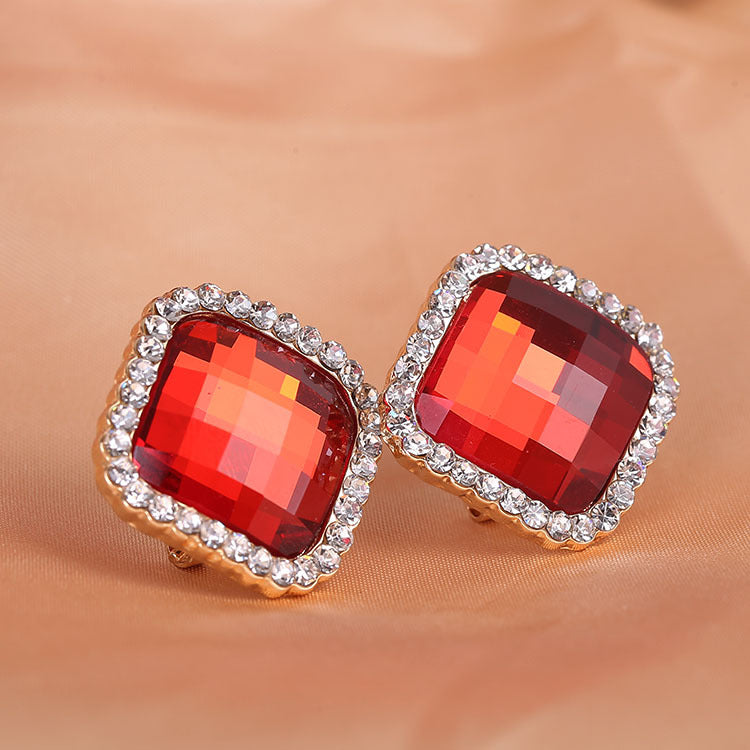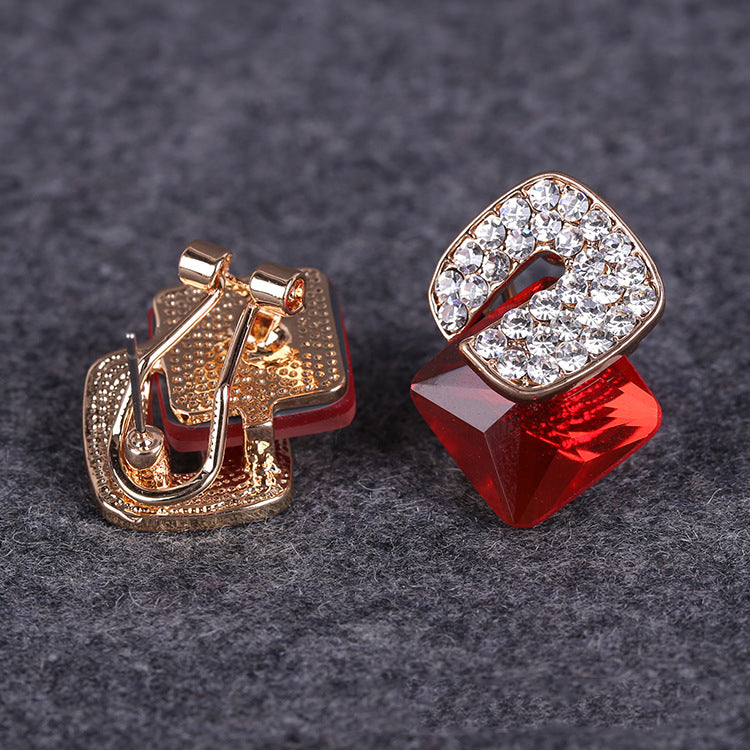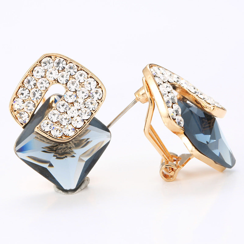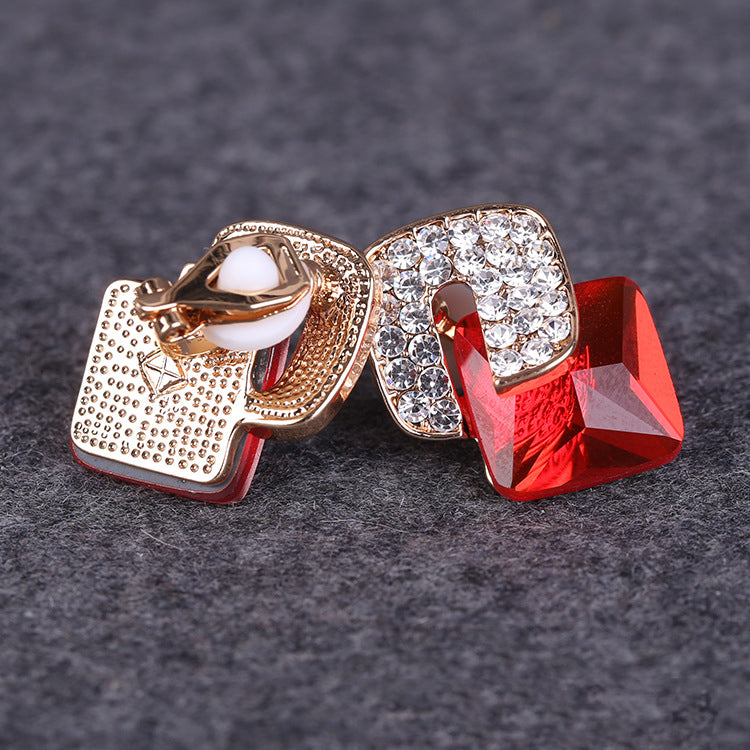 Pendientes de clip con diamantes de imitación cuadrados E8296