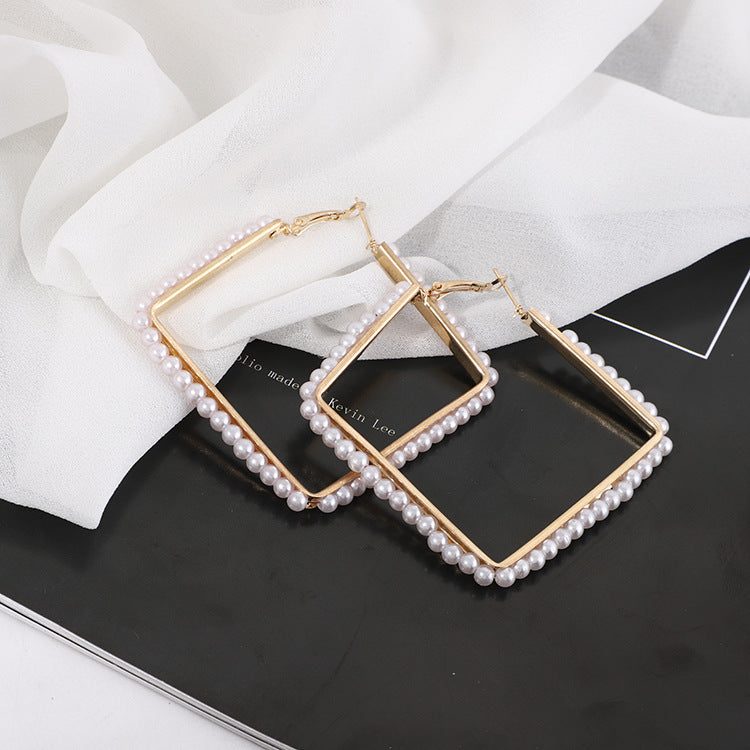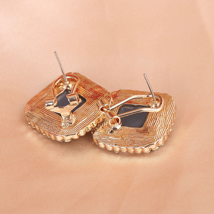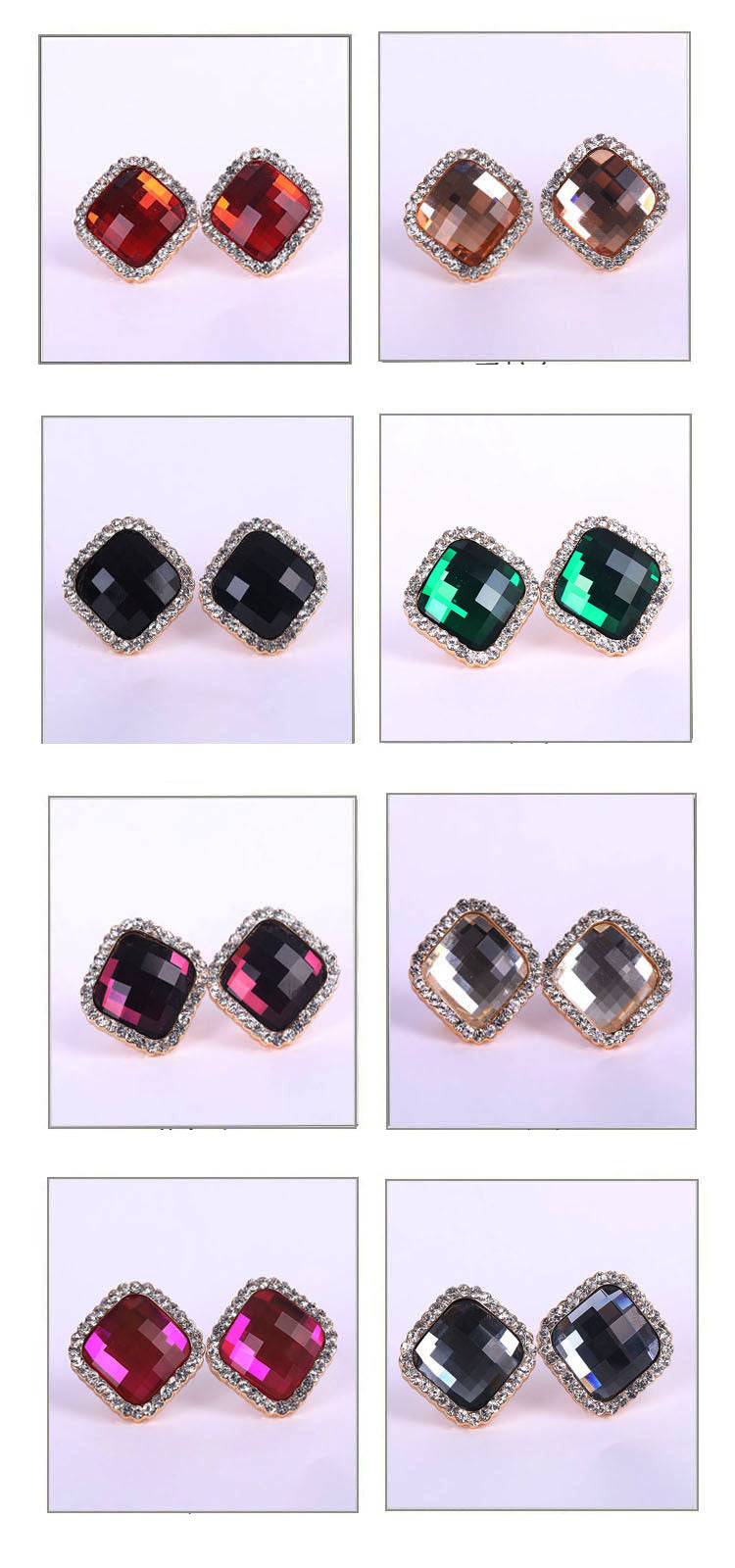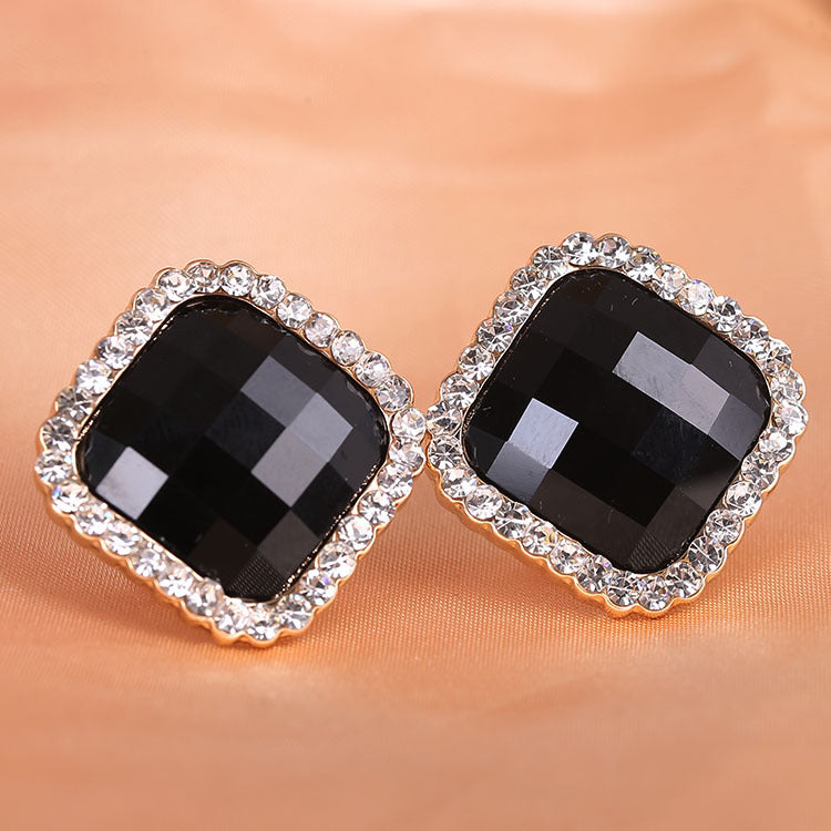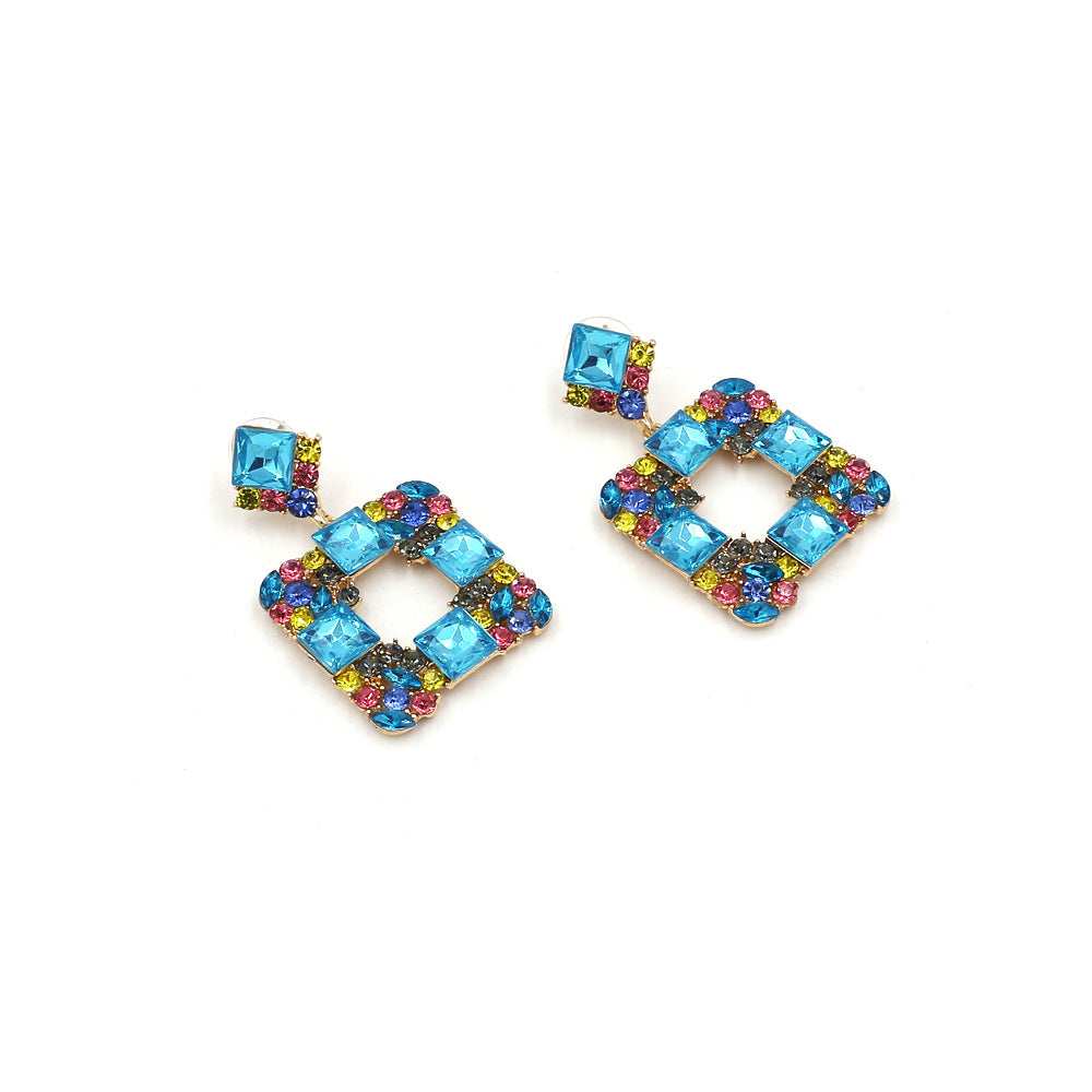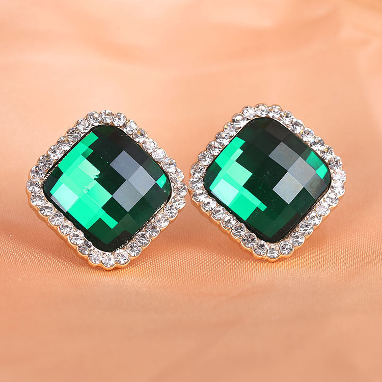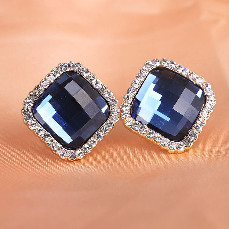 Pendientes de clip con diamantes de imitación cuadrados E8296