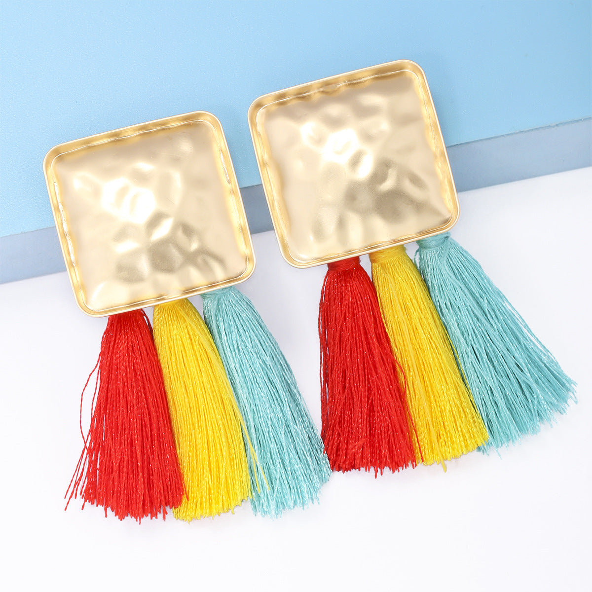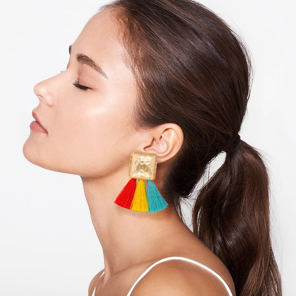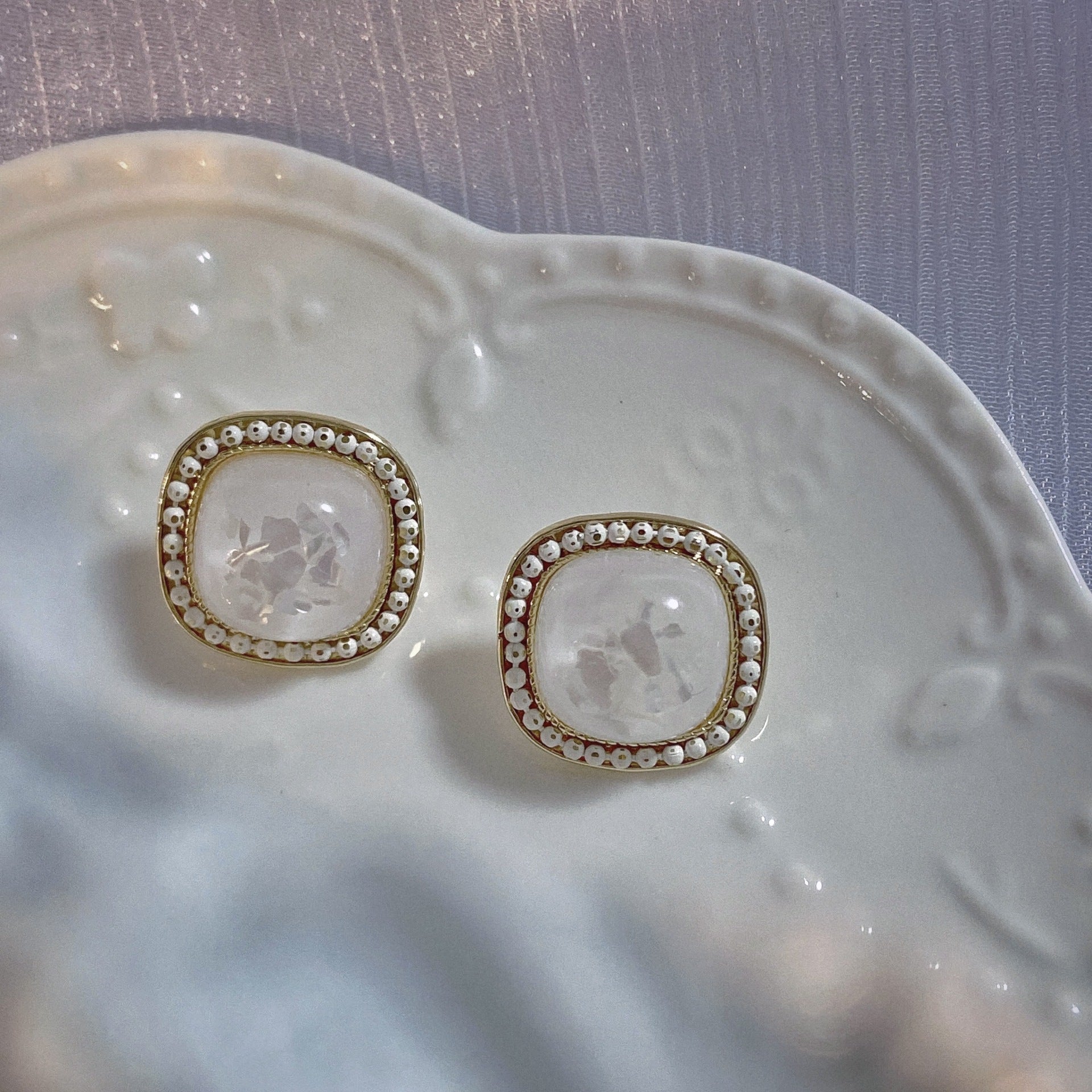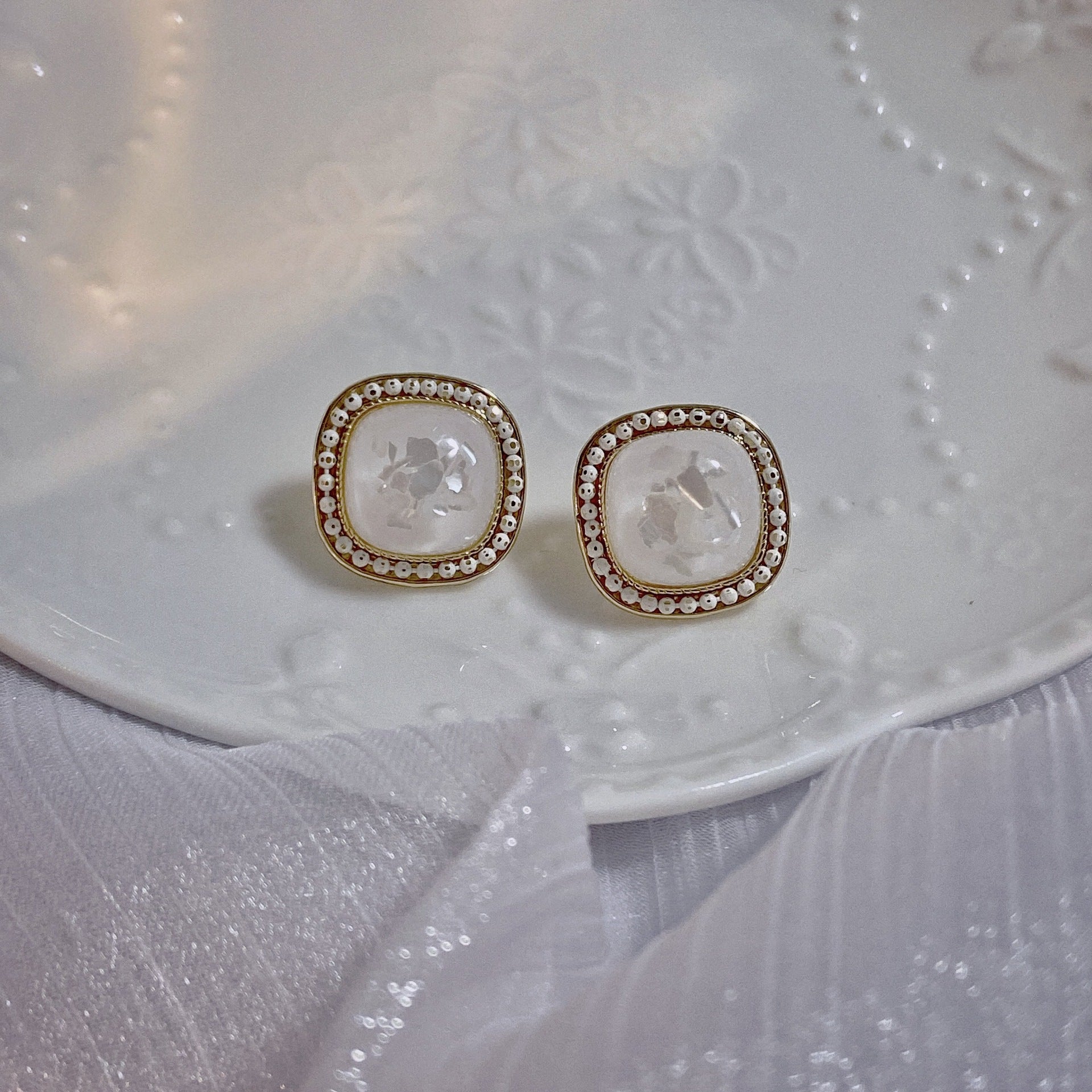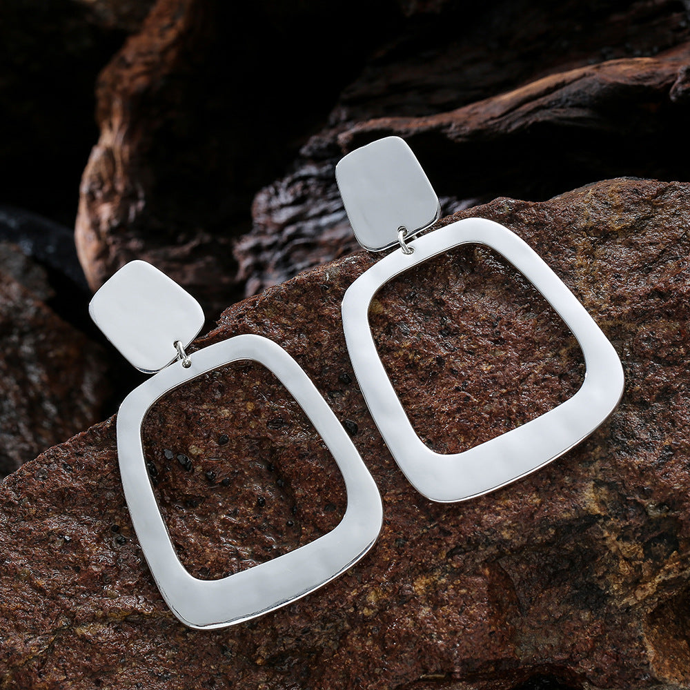 Pendientes de clip con diamantes de imitación cuadrados E8296