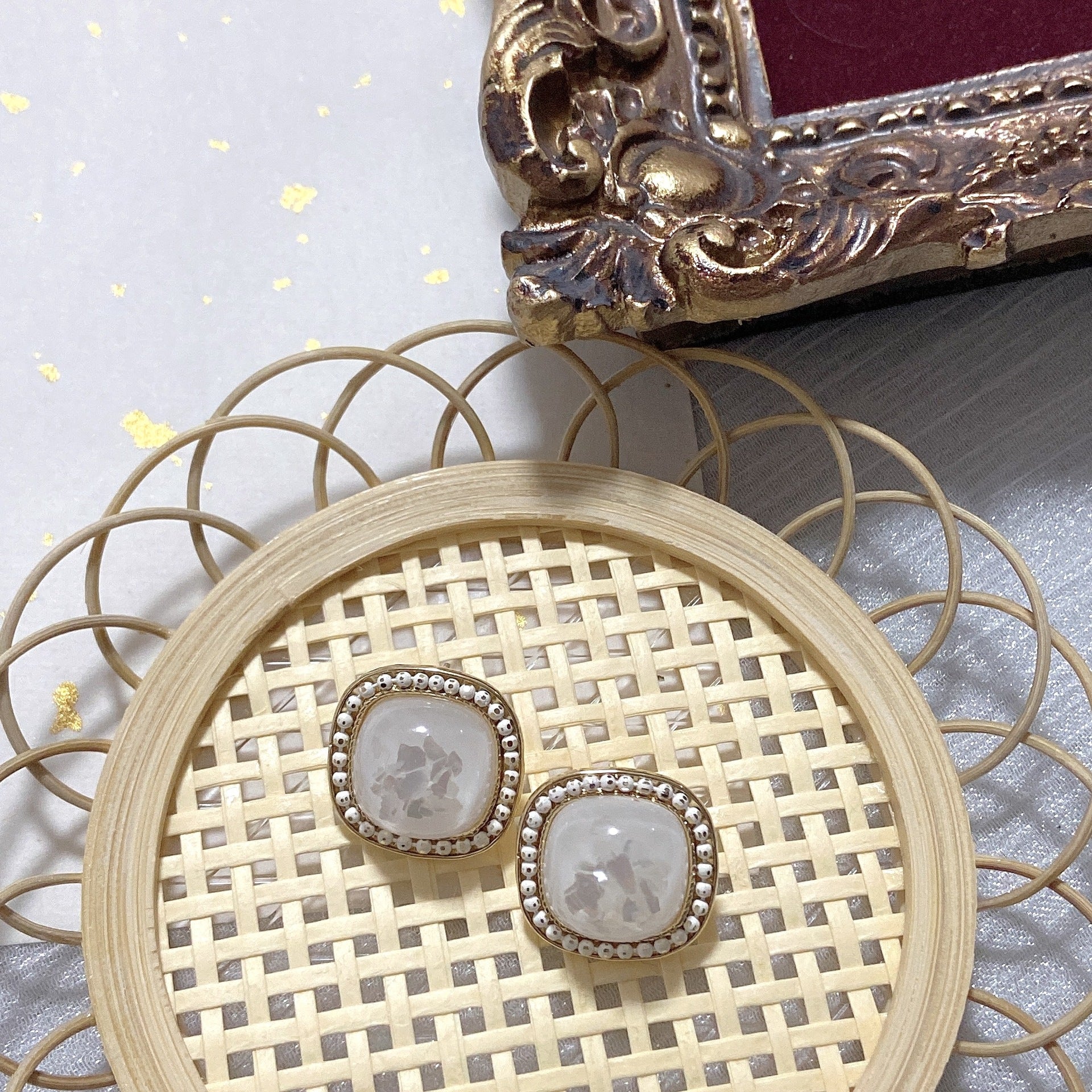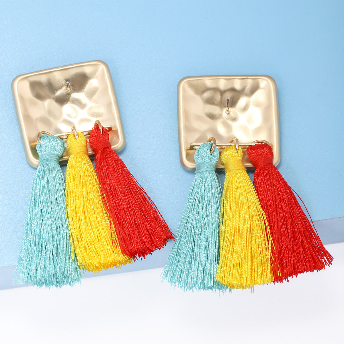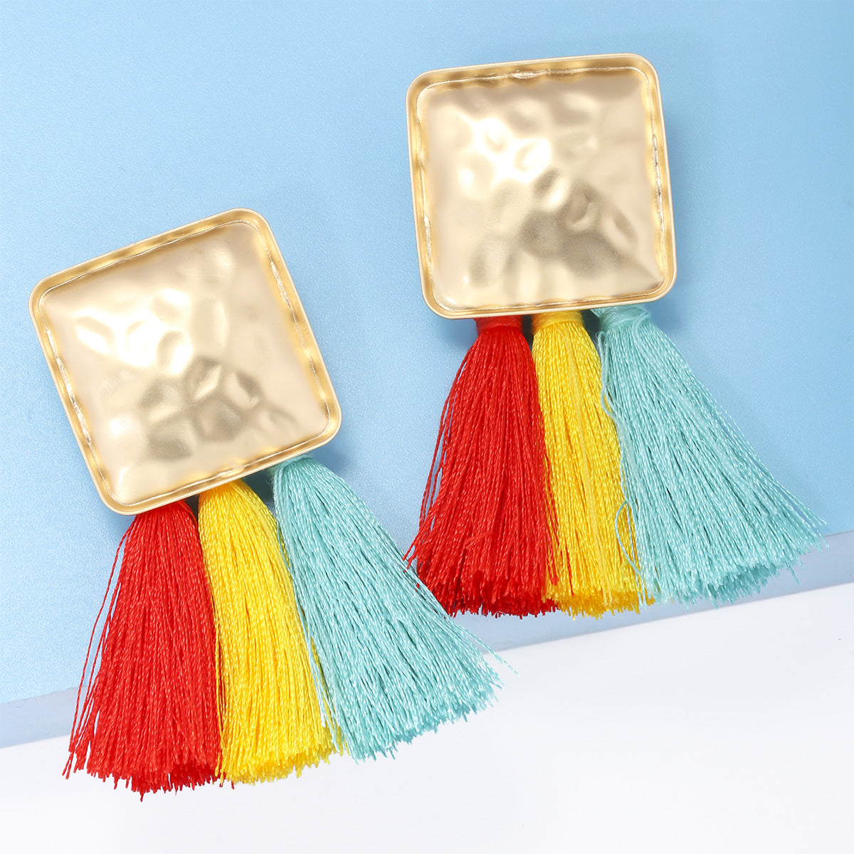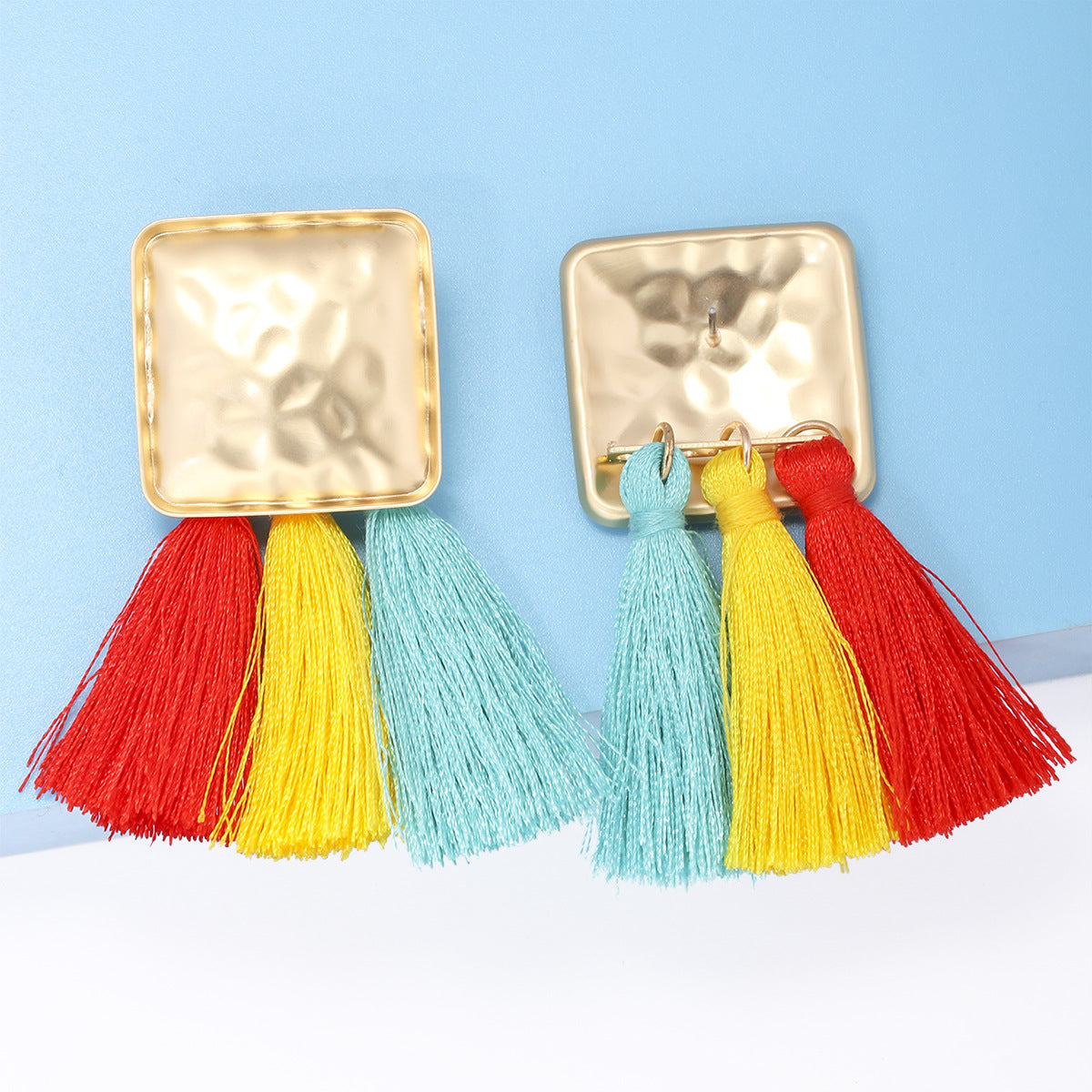 Pendientes de clip con diamantes de imitación cuadrados E8296