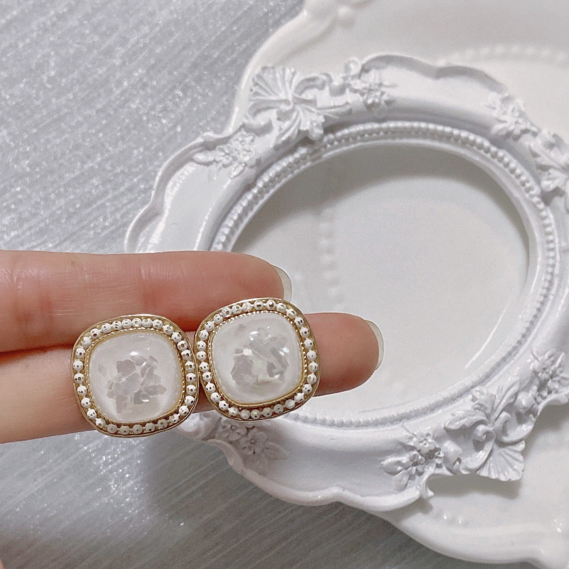Espejo de mano cuadrado con diamantes de imitación M0430