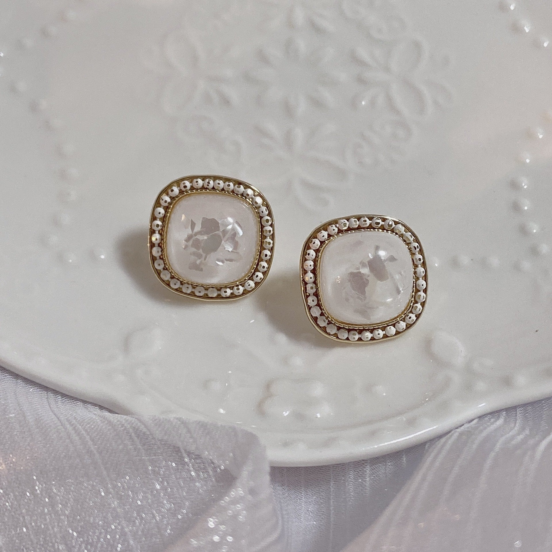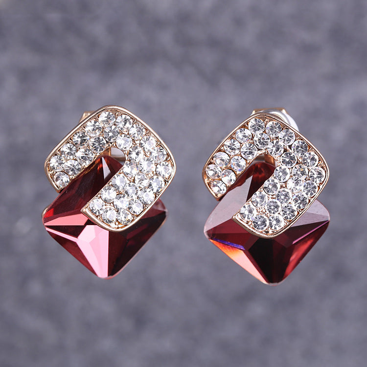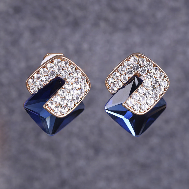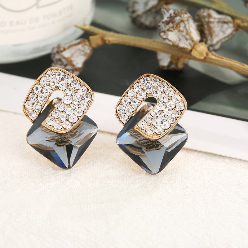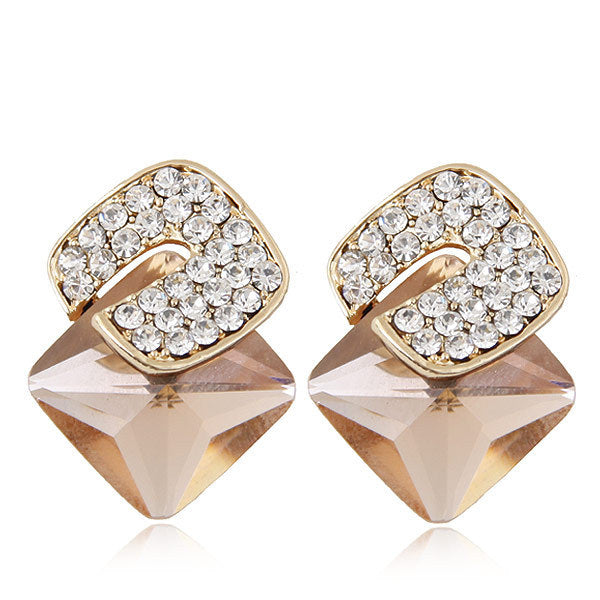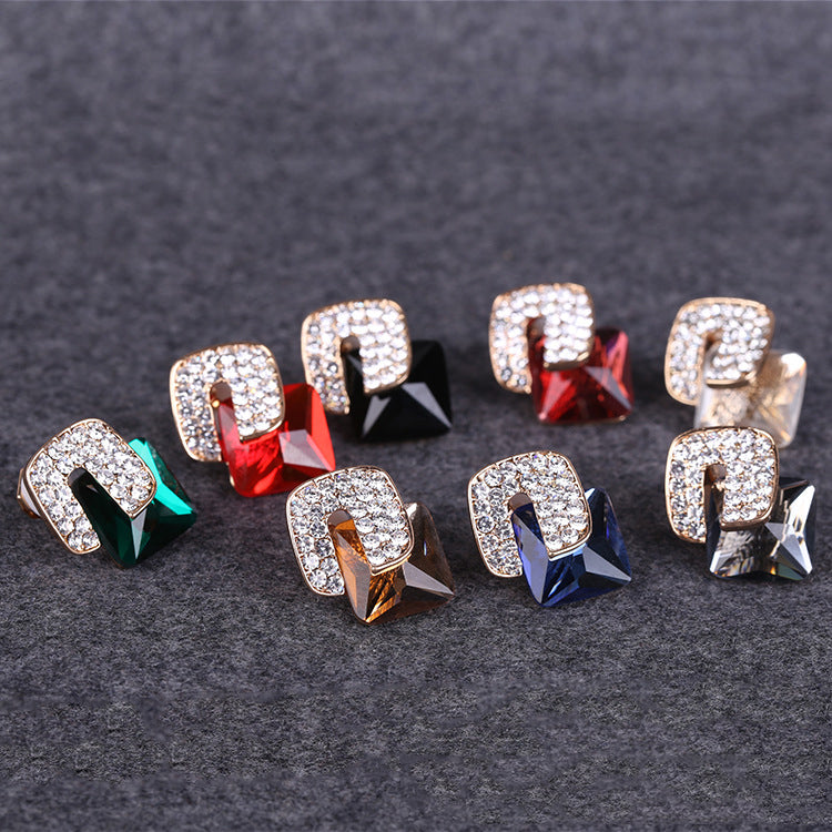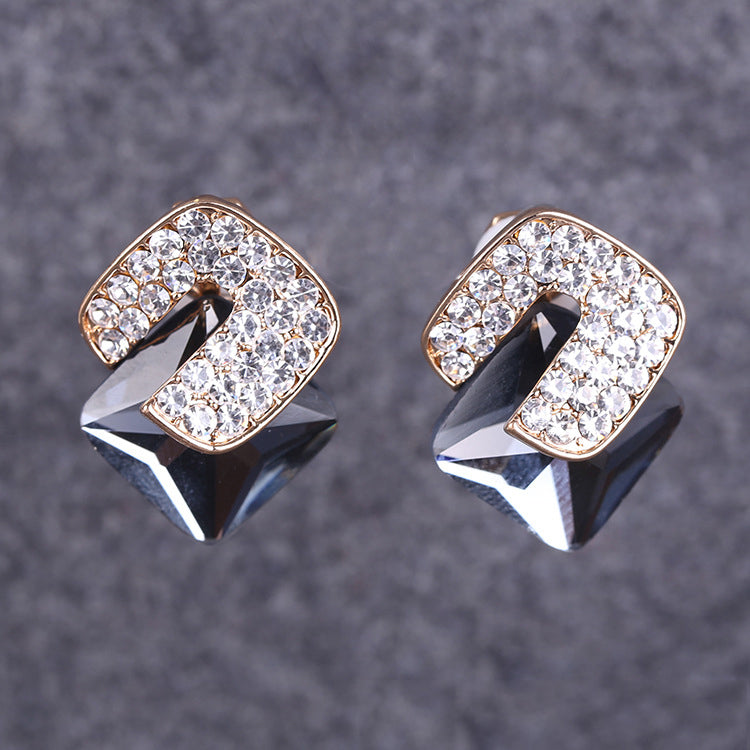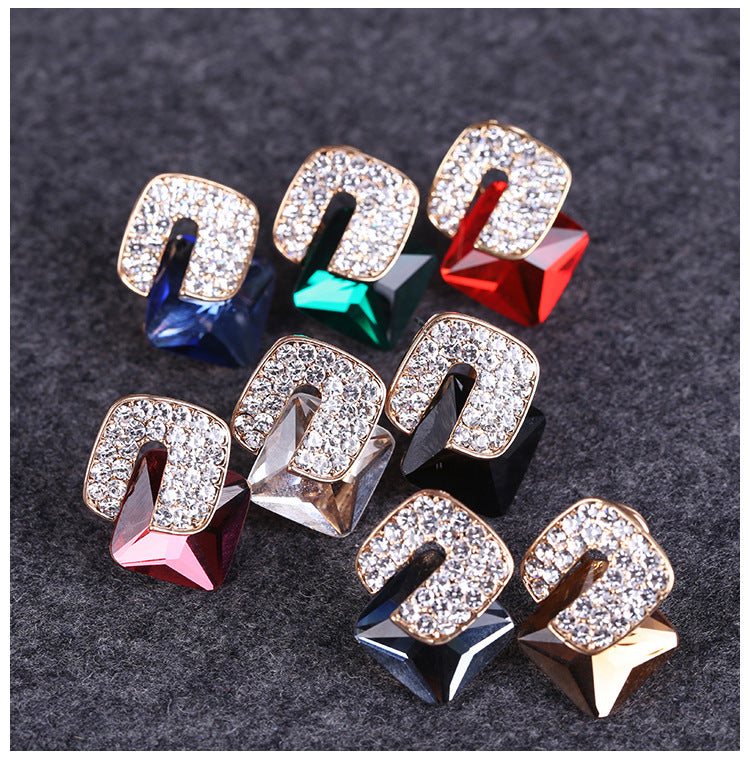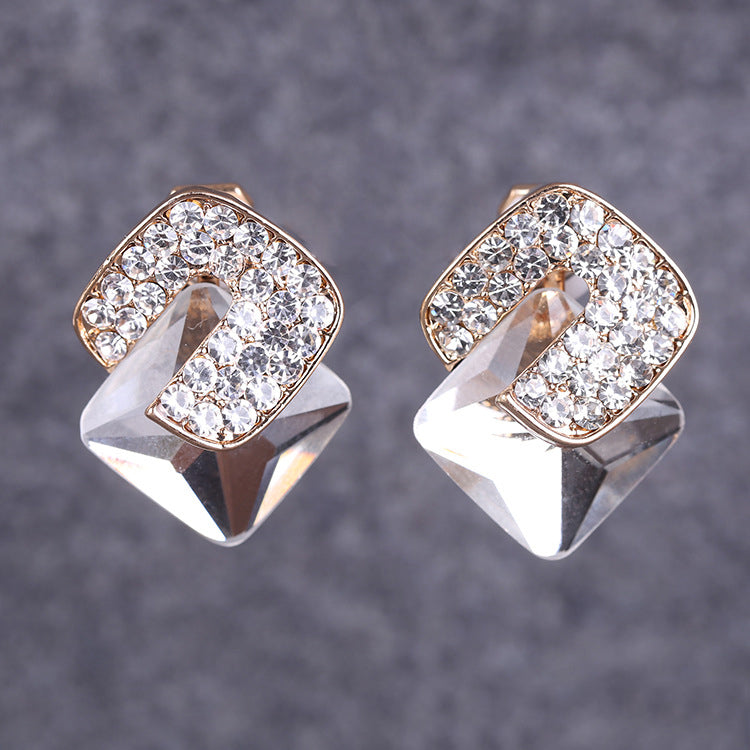 Pendientes de clip con forma de cubo cuadrado y diamantes de imitación E8297