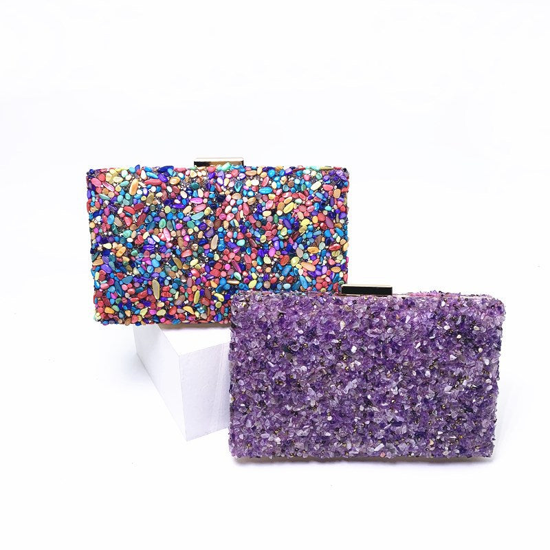 Bolso pequeño de amuleto/collares de terciopelo con piedra V0719