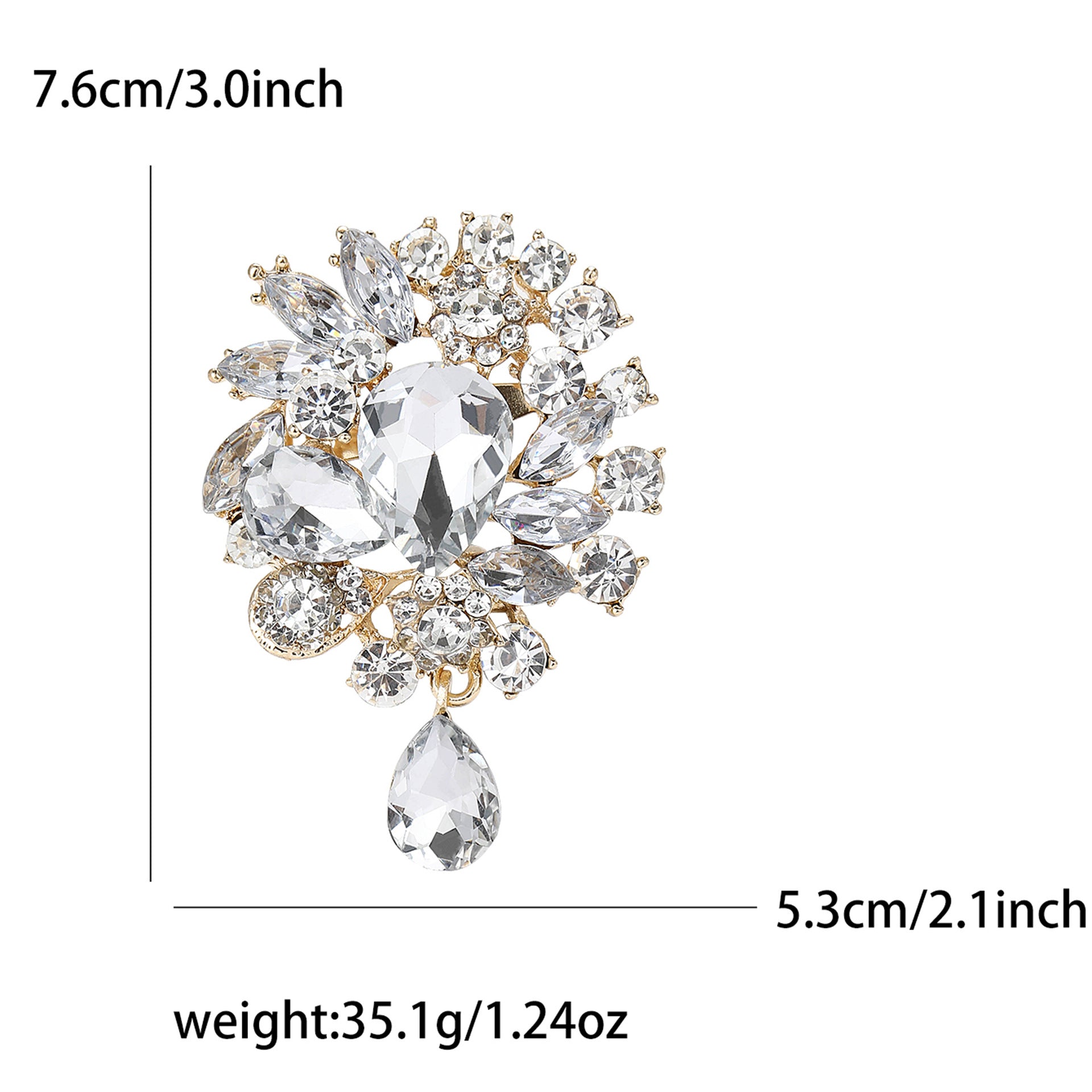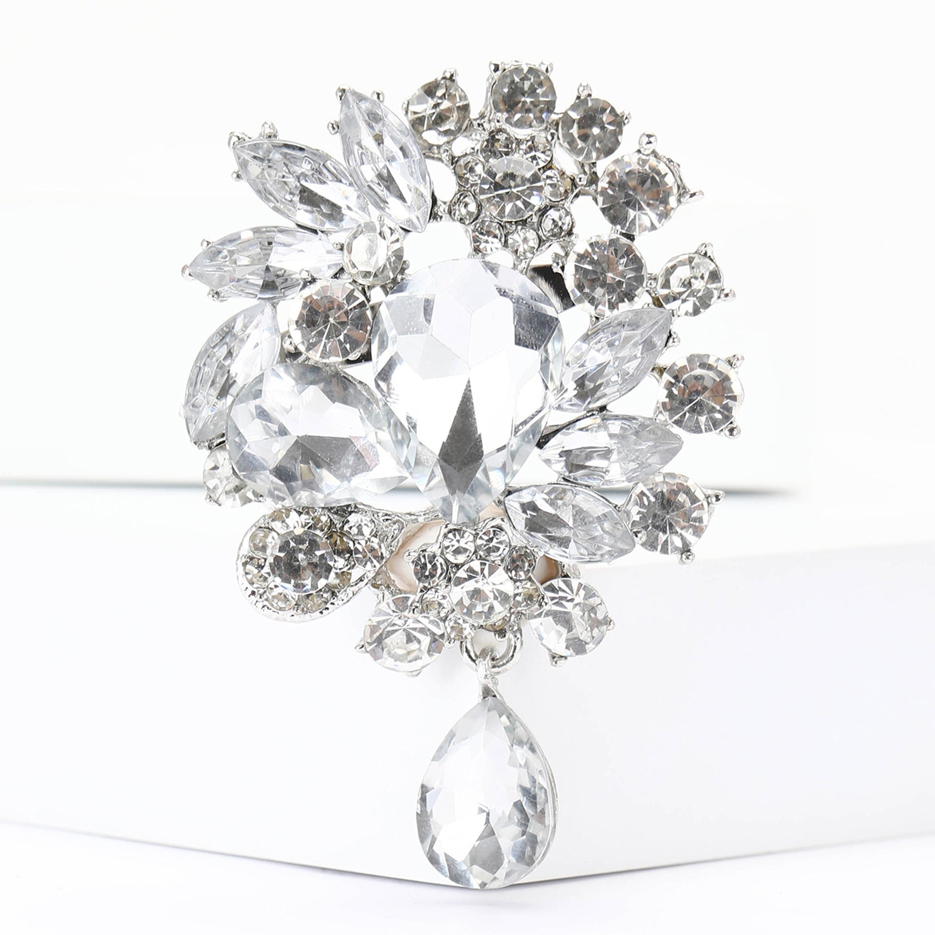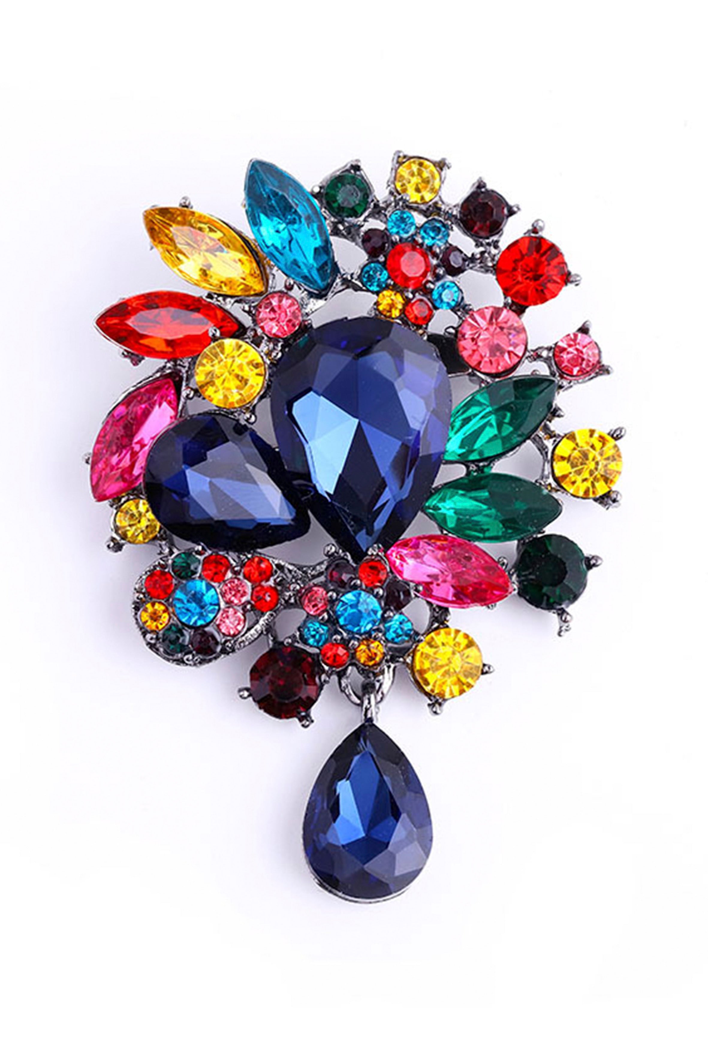 Vintage Rhinestone Flower Teardrop Brooch PA3605