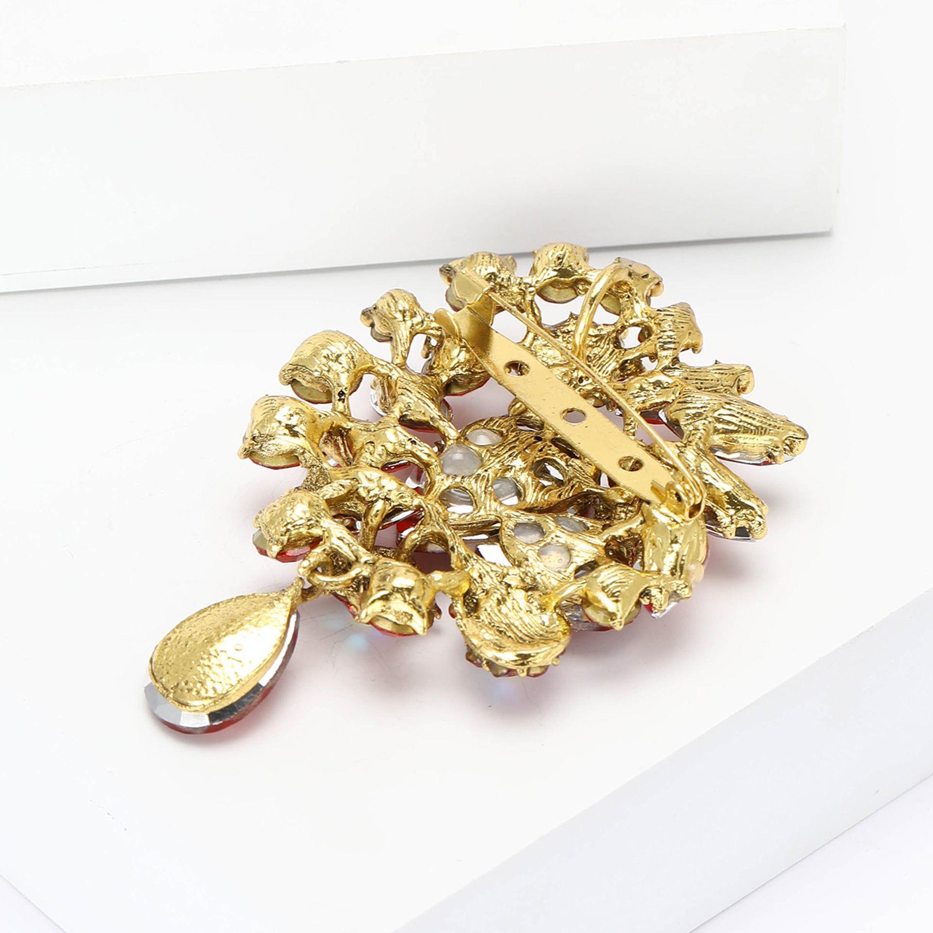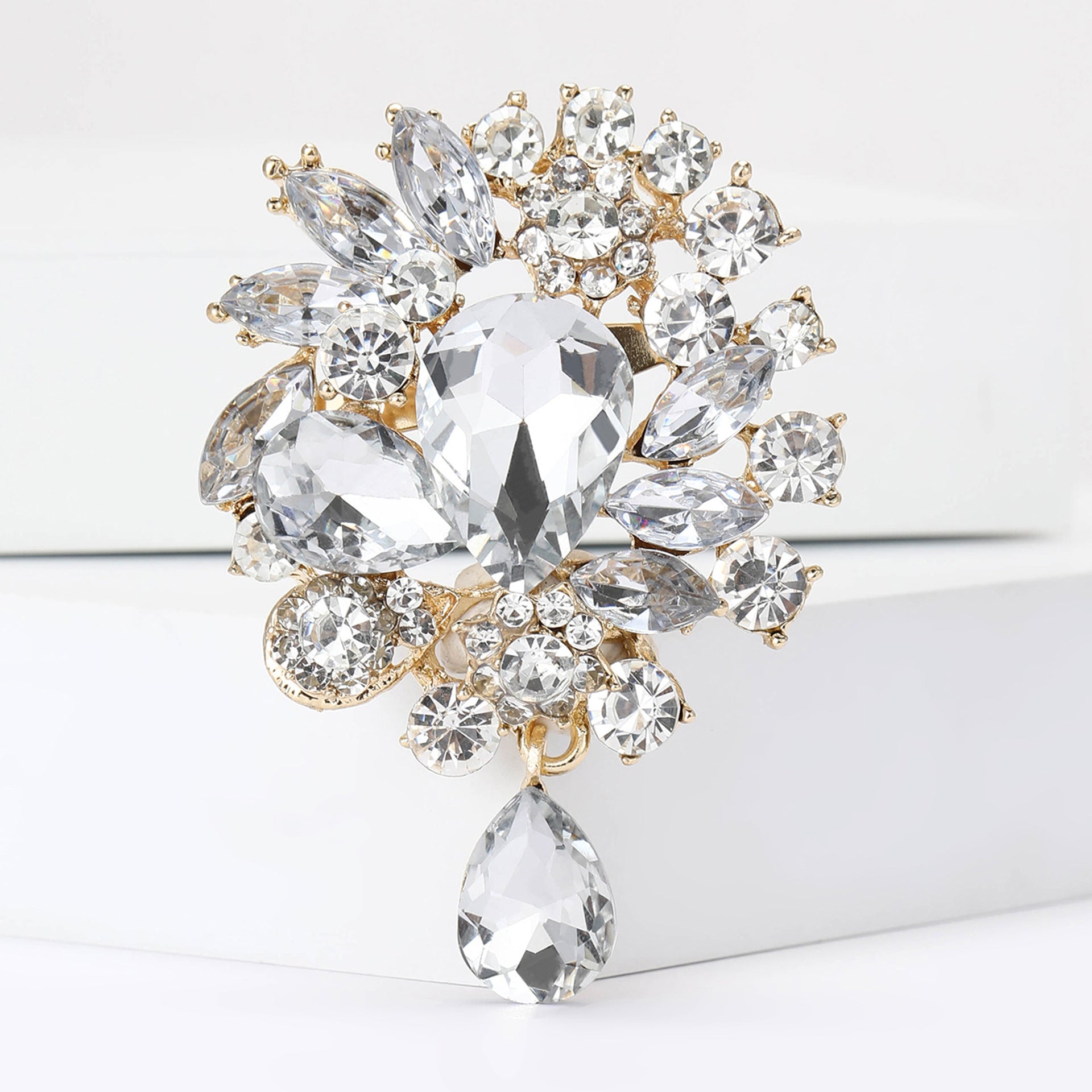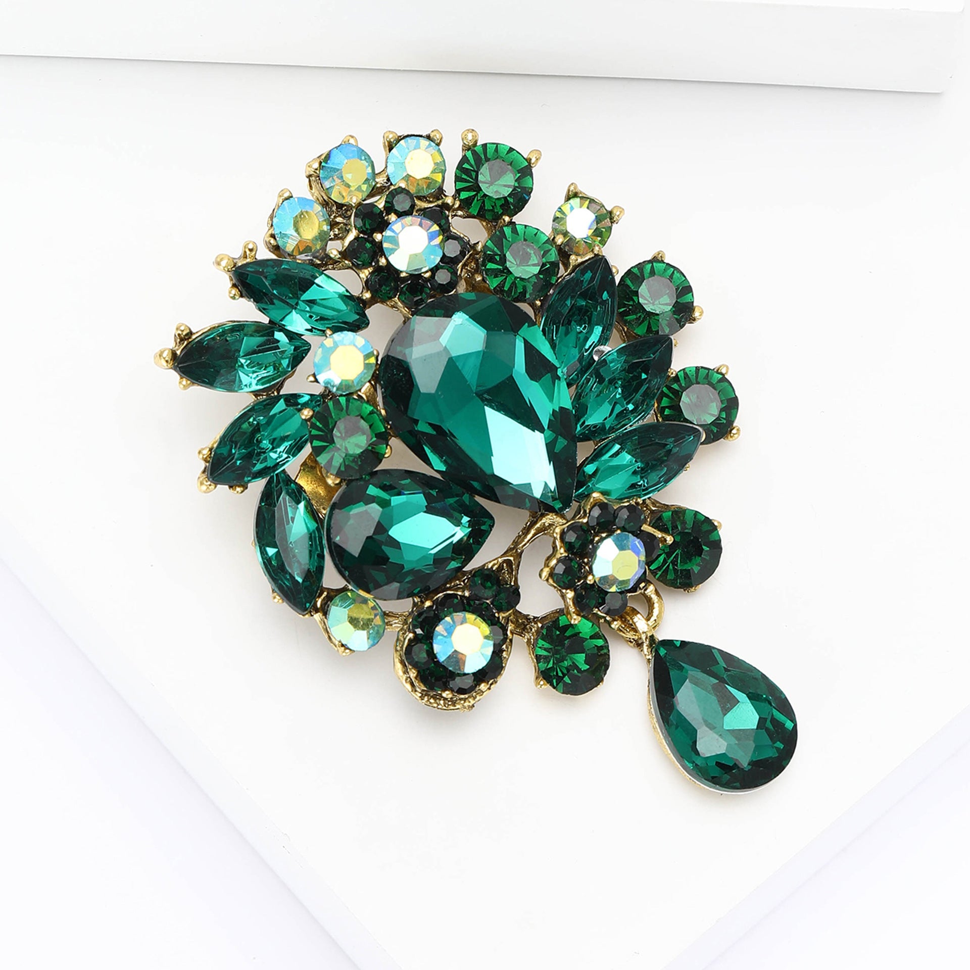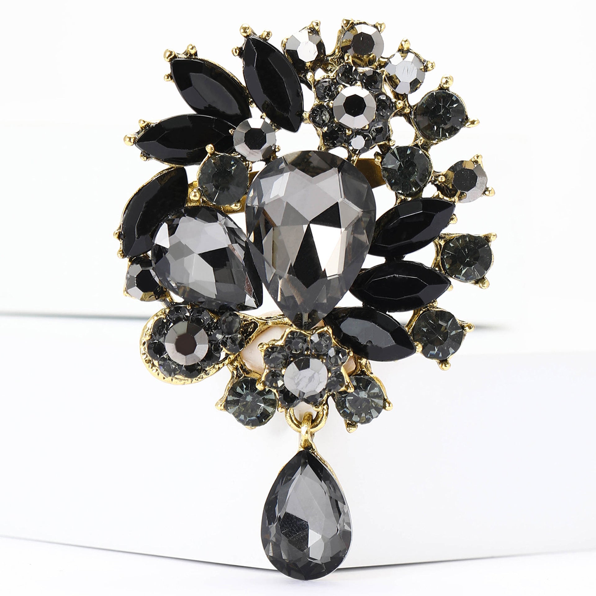 Vintage Rhinestone Flower Teardrop Brooch PA3605