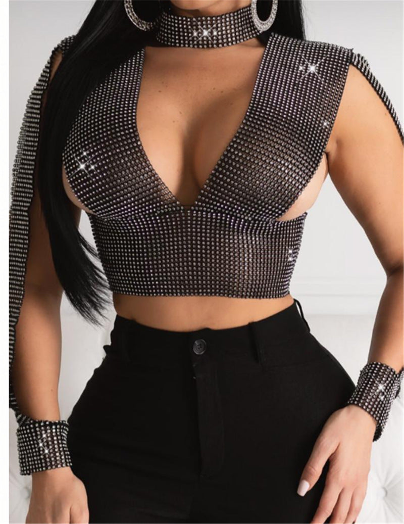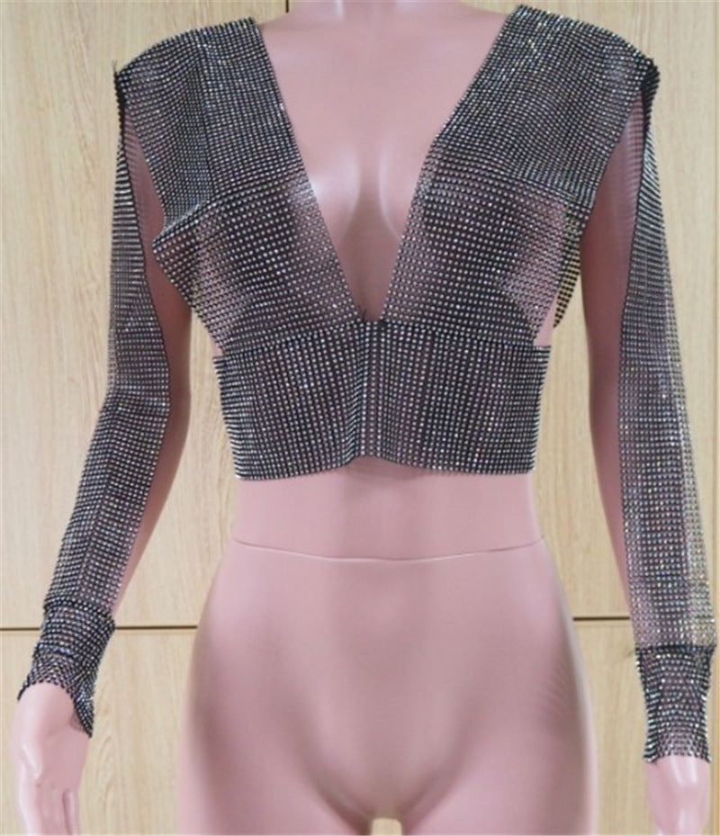 ¡Atrévete y añade un poco de brillo con nuestro top con escote en V profundo y diamantes de imitación WA0095! Este atrevido top tiene un busto elastizado (30-37 pulgadas) y un largo de 16 pulgadas. ¡Deja que los diamantes de imitación brillen y acepta el desafío y la aventura en tu guardarropa!
