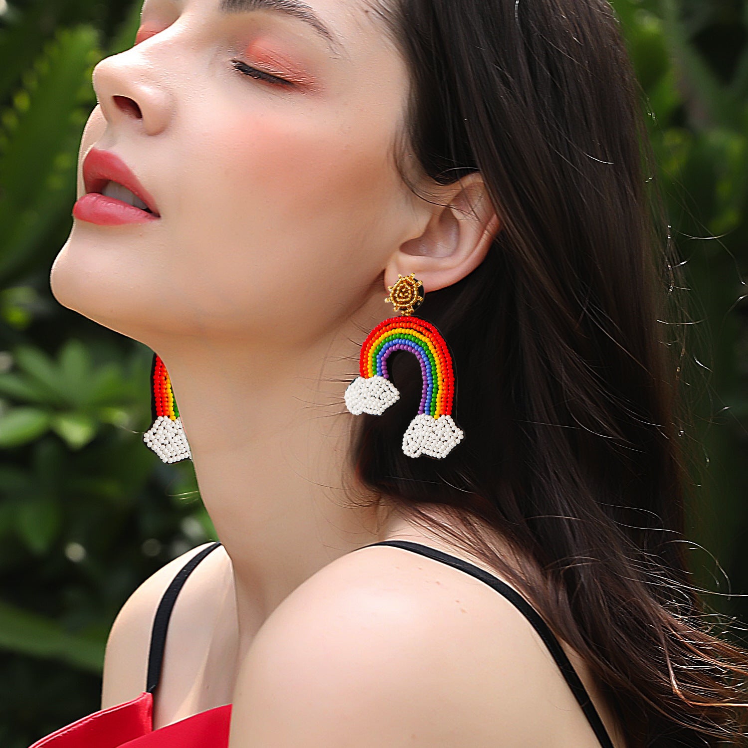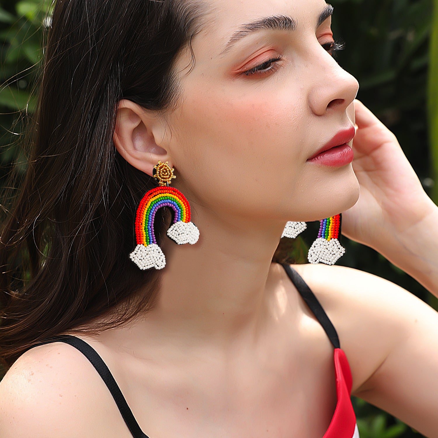 Pendientes de cuentas de semillas de arcoíris E6862-1
