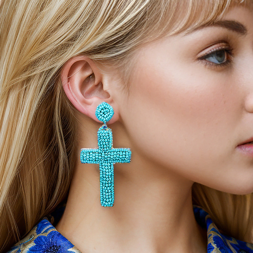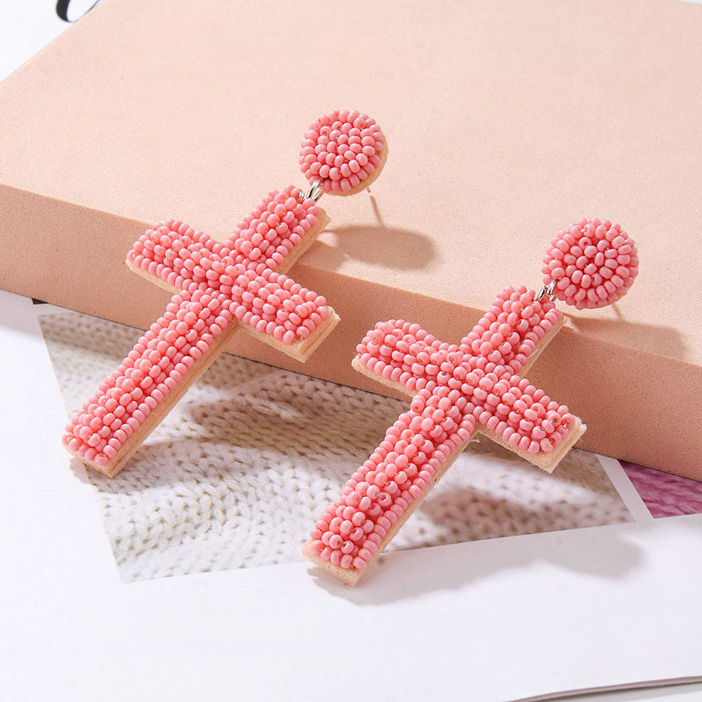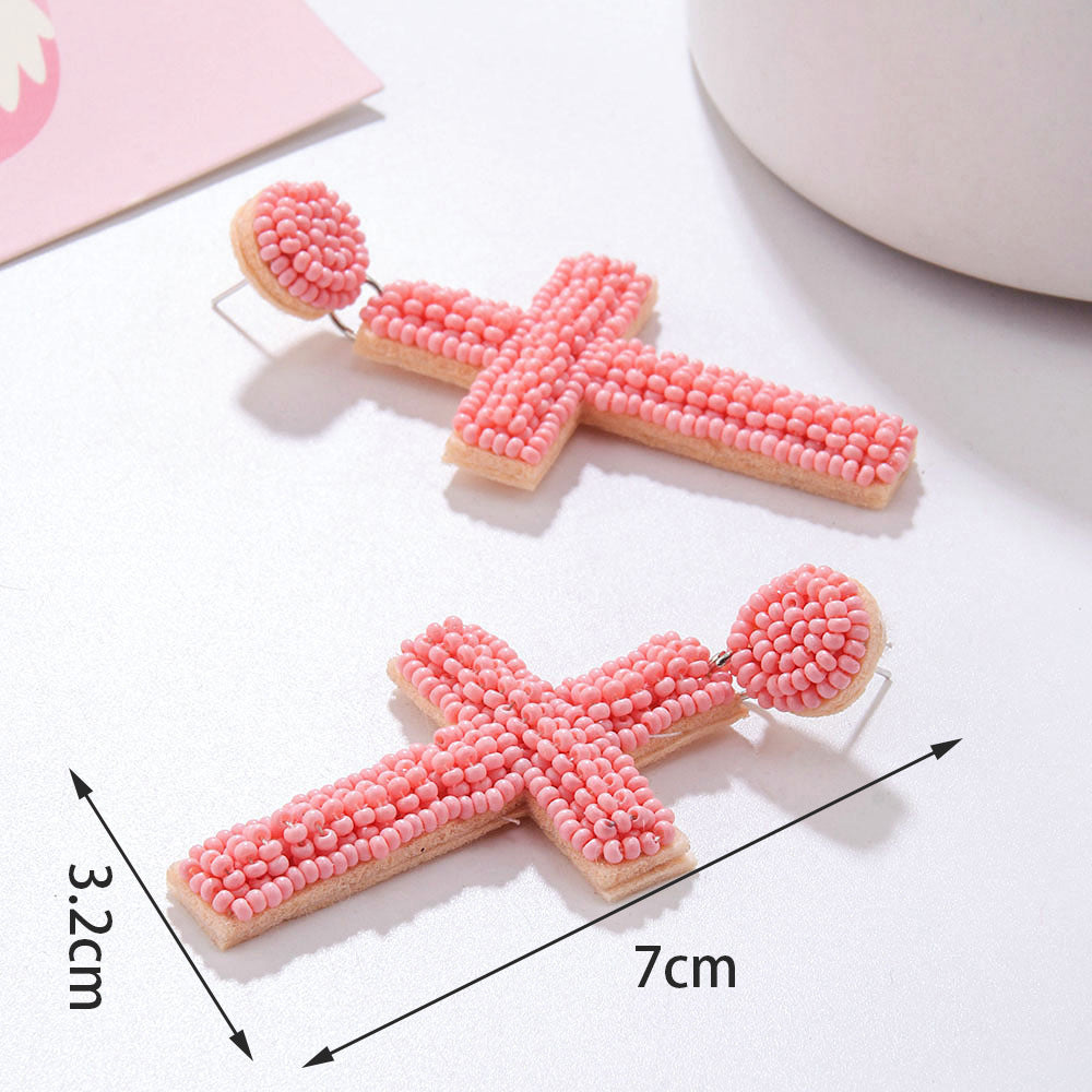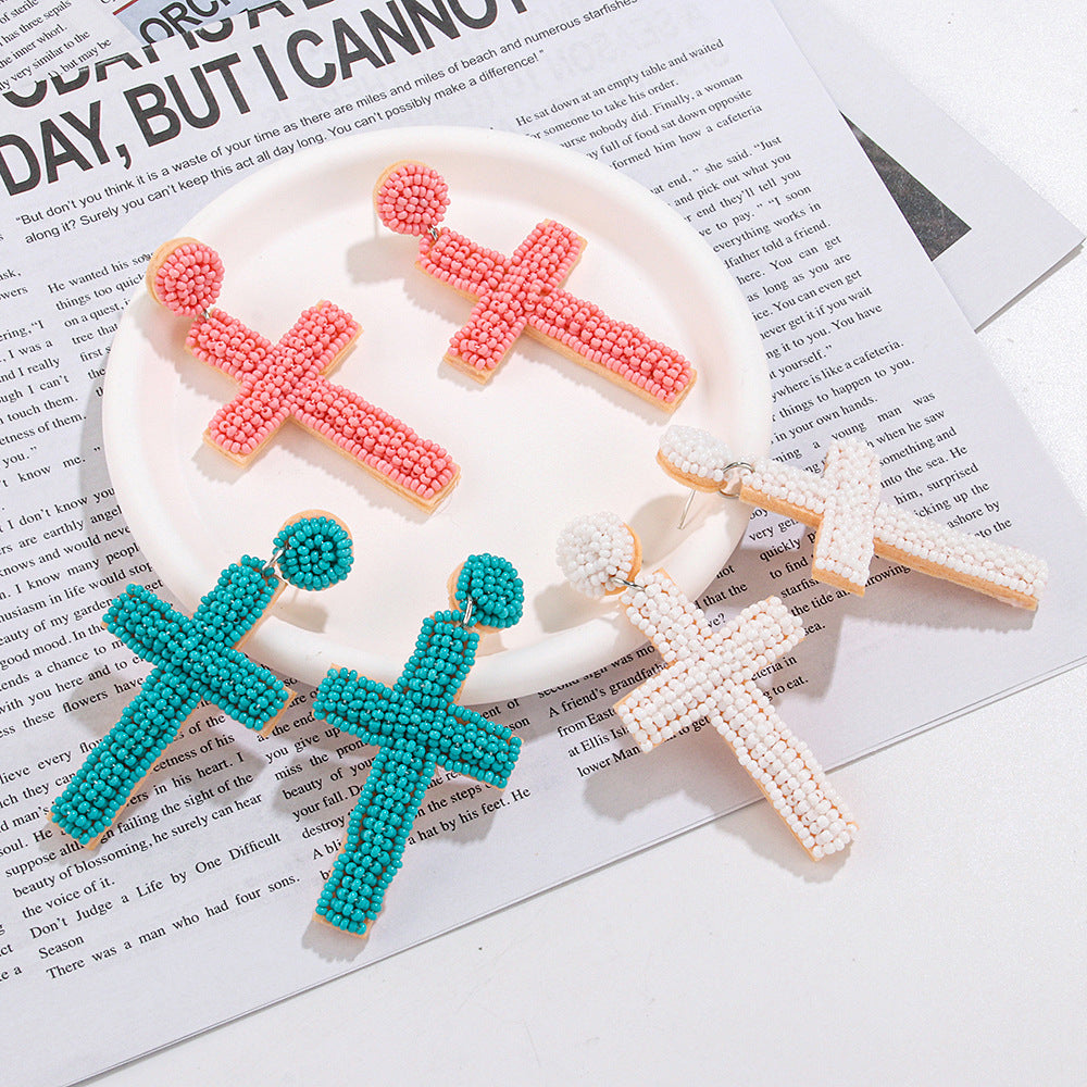 Pendientes de cuentas de semillas con forma de cruz estilo bohemio E8585