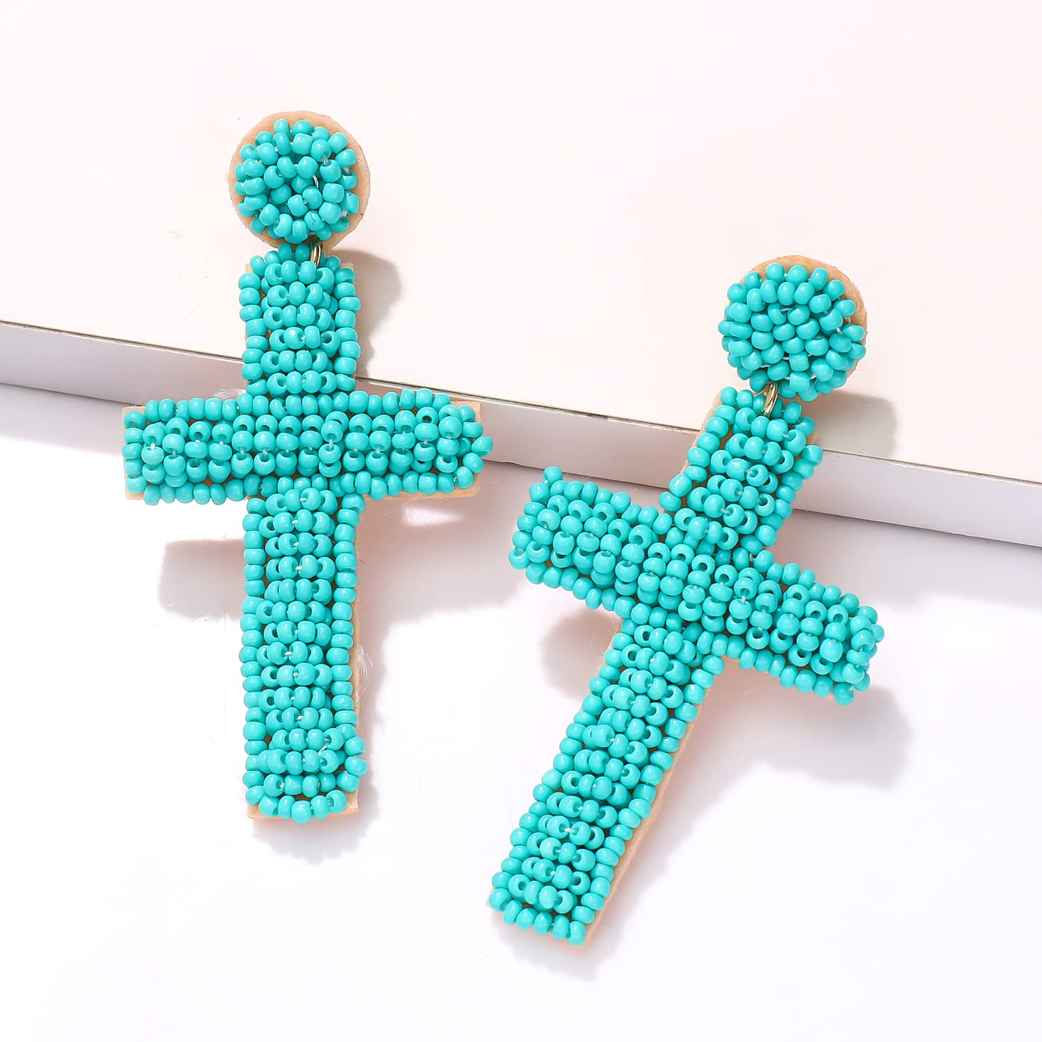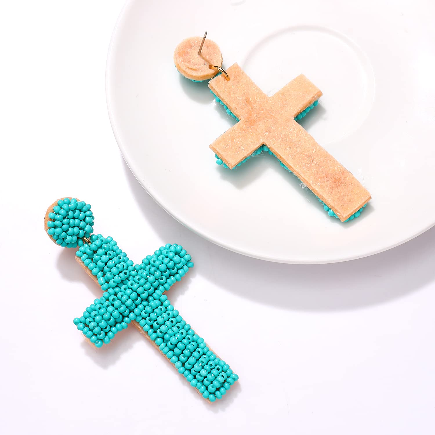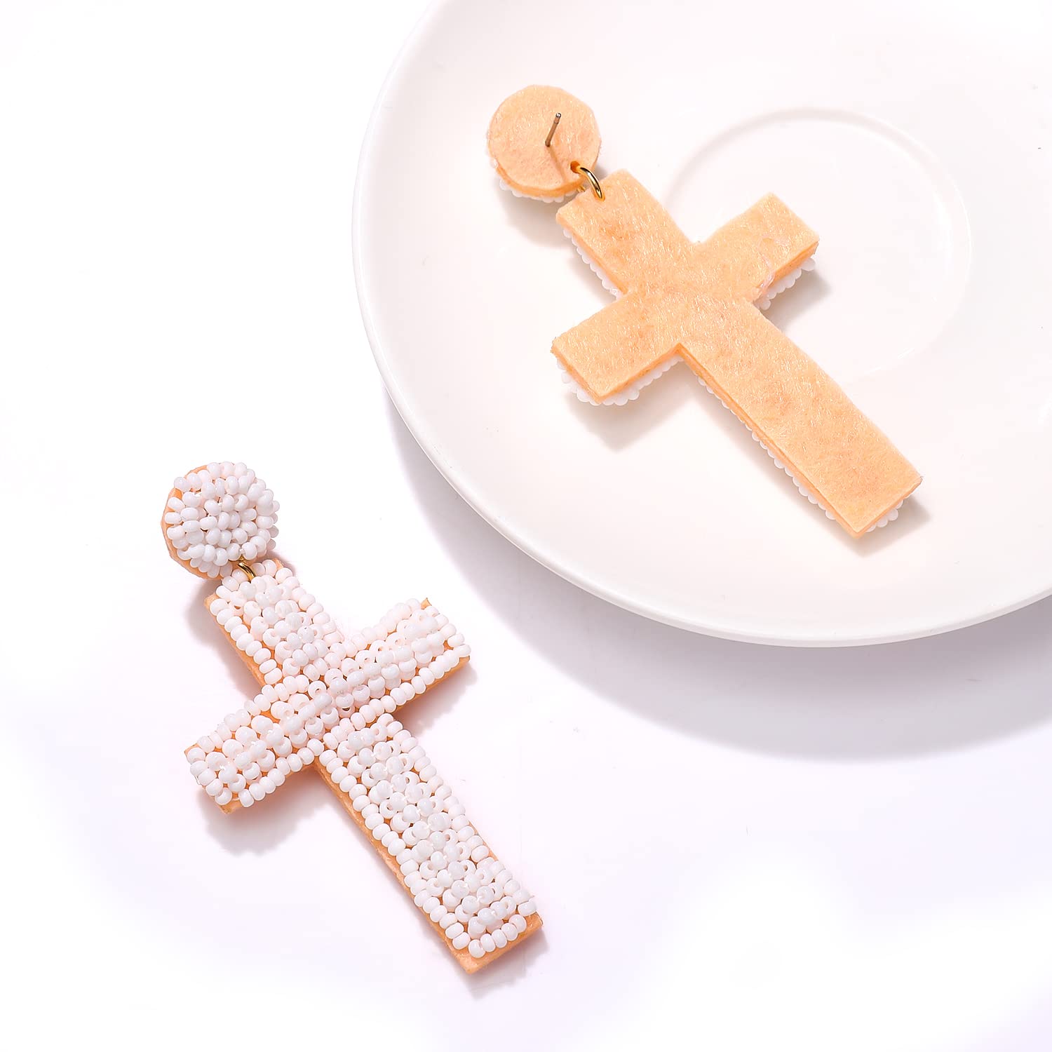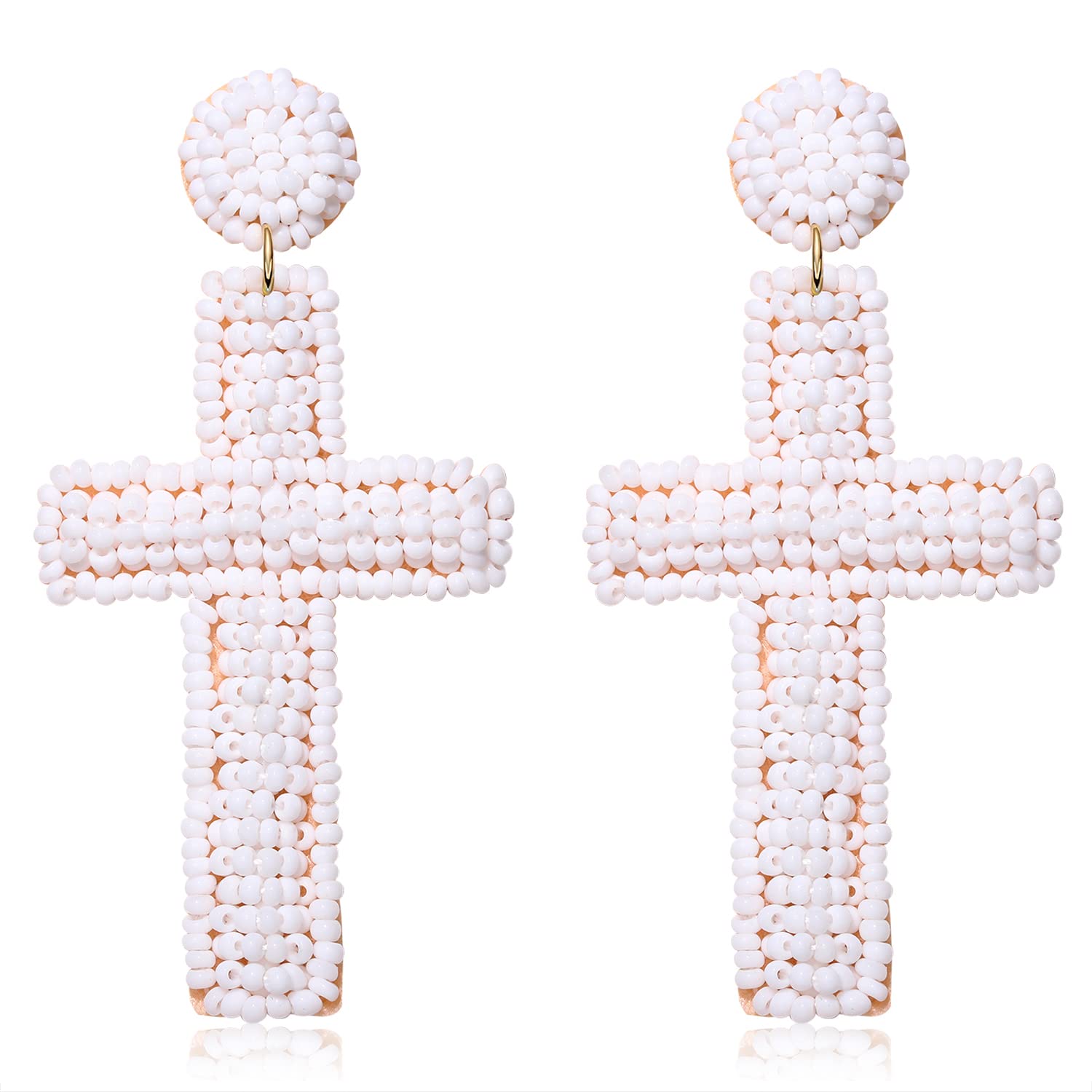 Pendientes de cuentas de semillas con forma de cruz estilo bohemio E8585