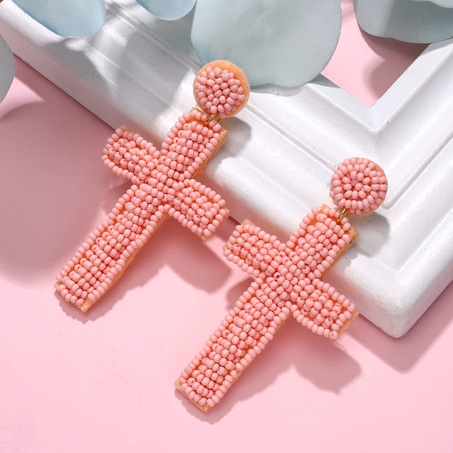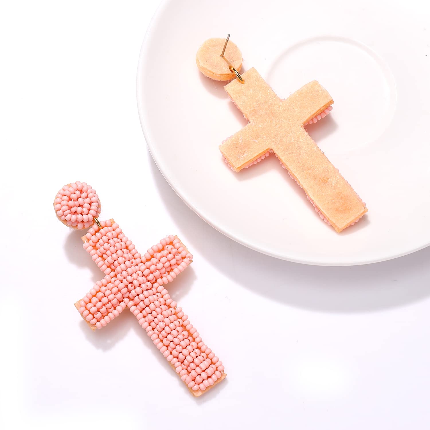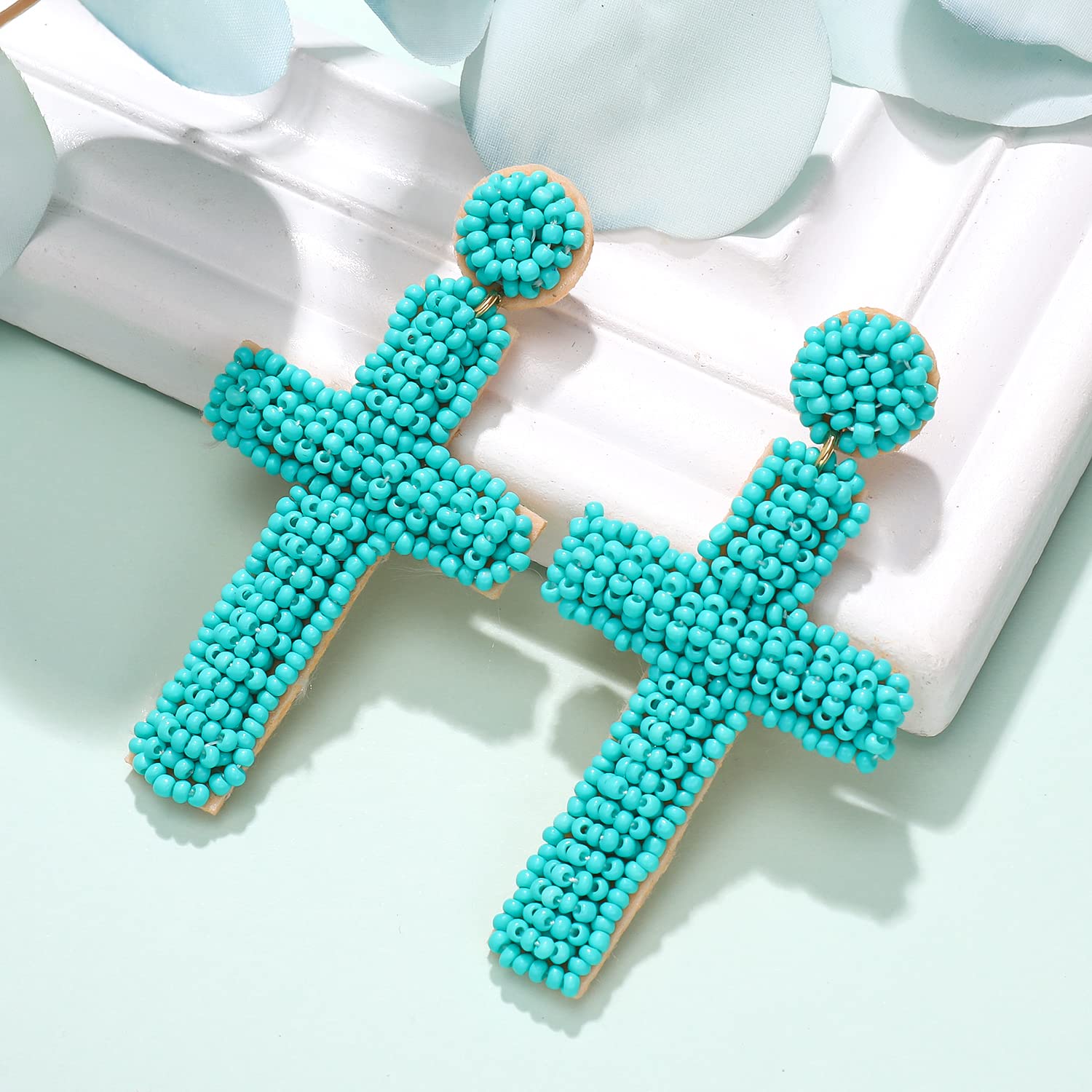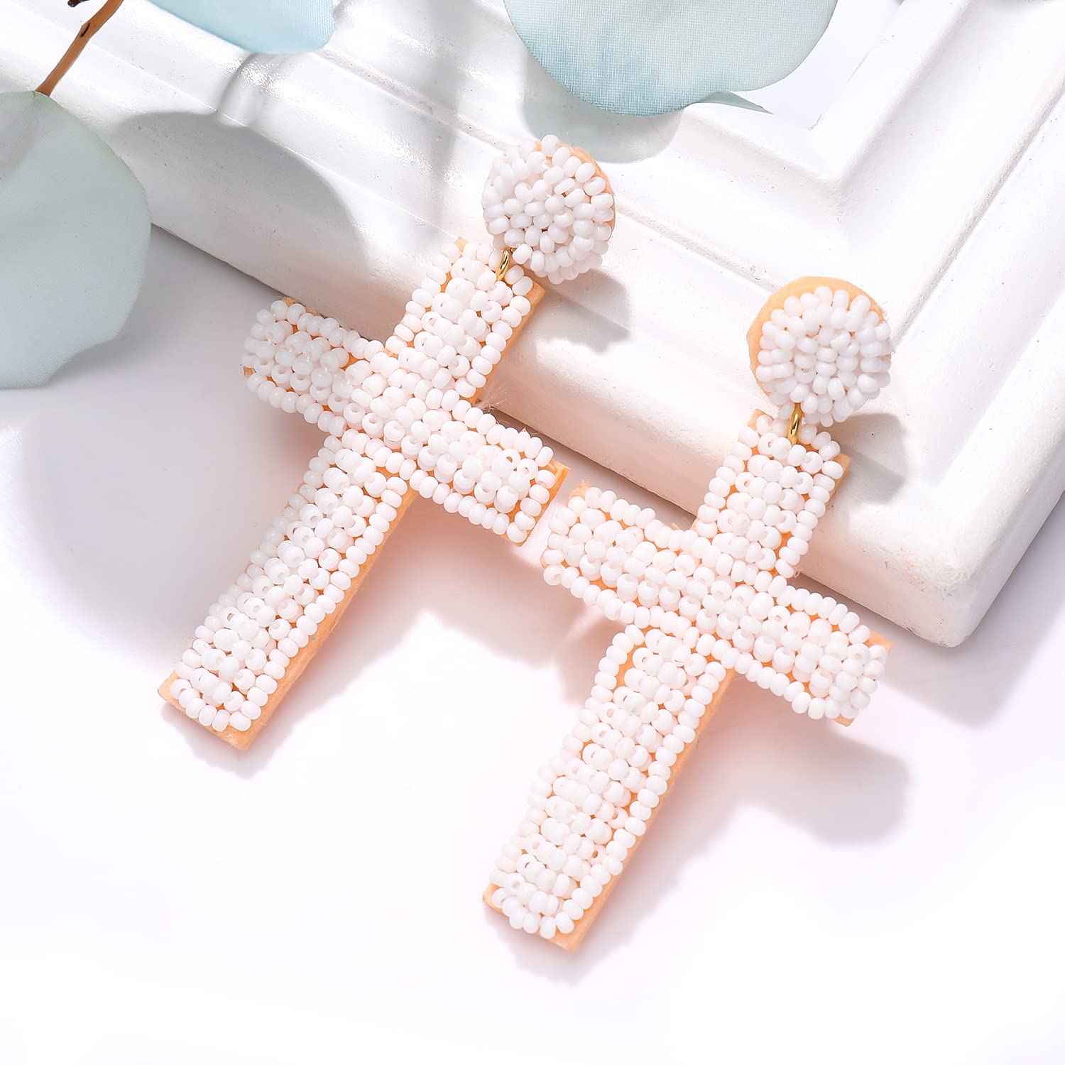 Pendientes de cuentas de semillas con forma de cruz estilo bohemio E8585