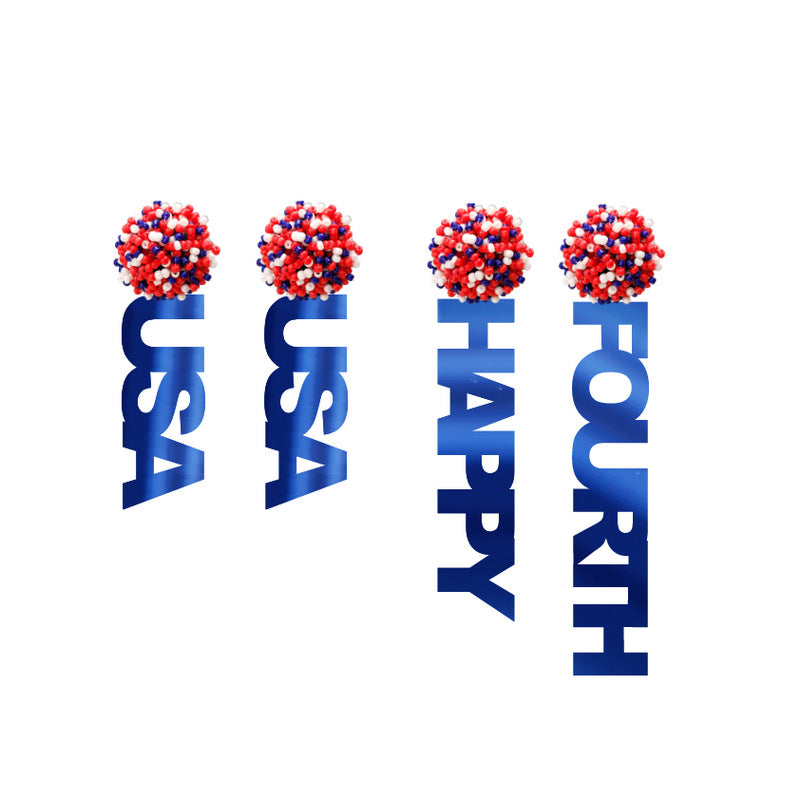 Pendientes de cuentas acrílicas con el lema FELIZ CUARTO E7502