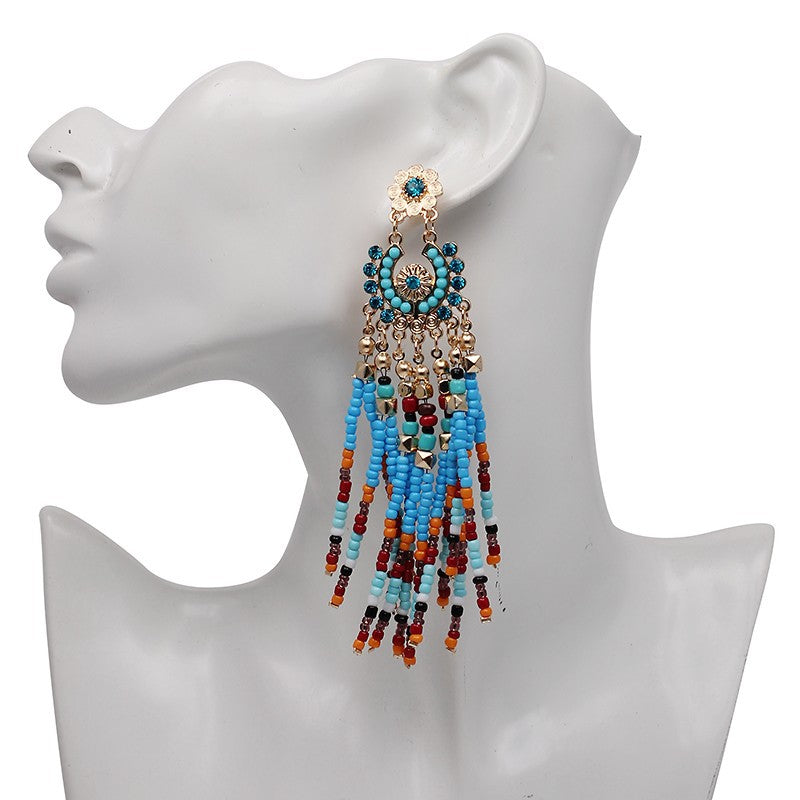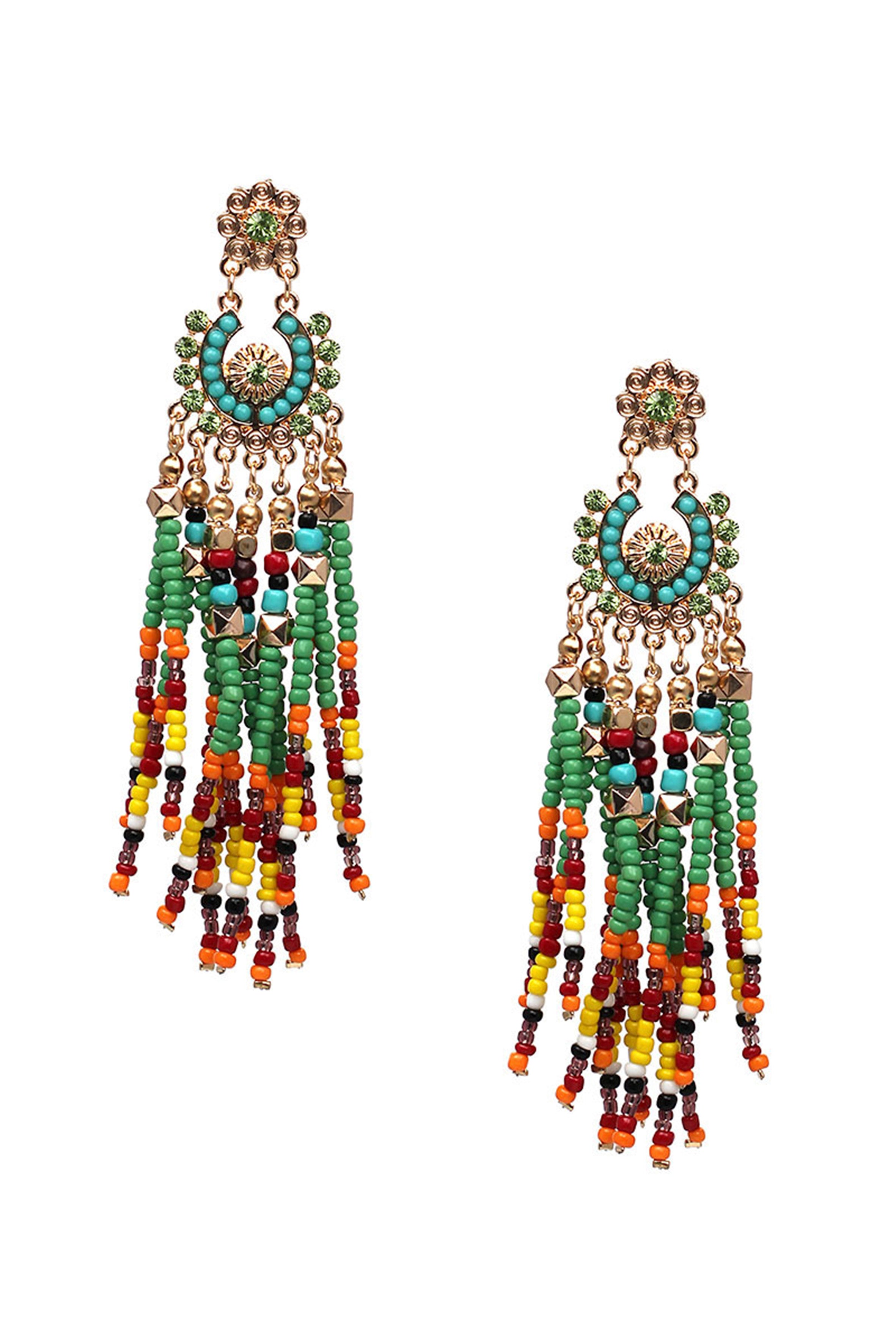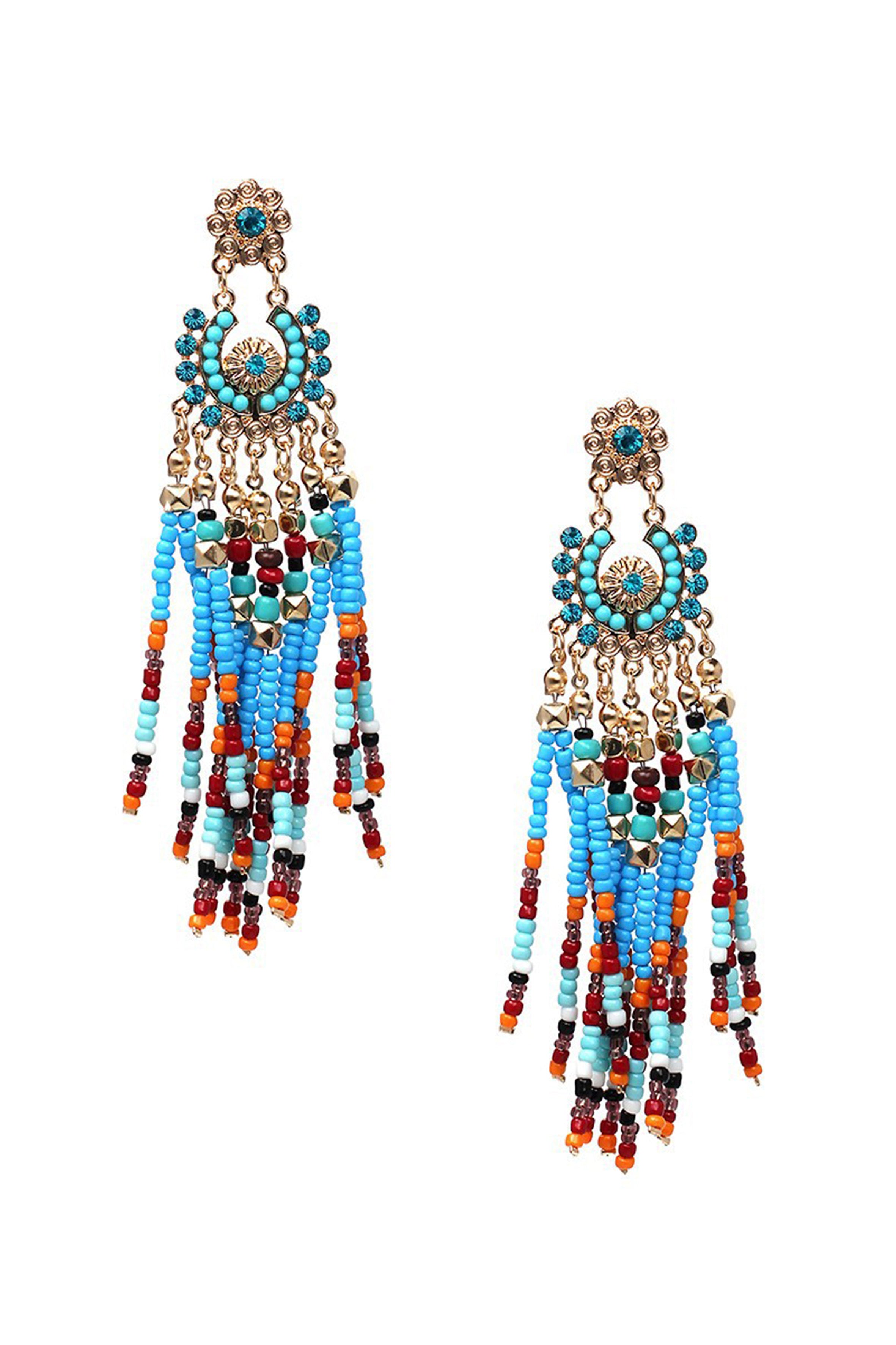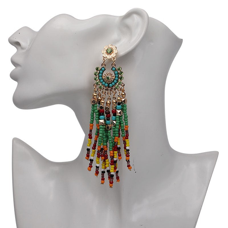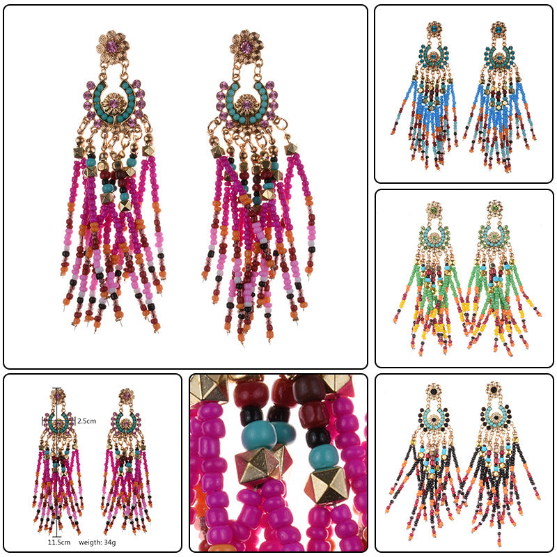 Pendientes de borlas con cuentas de semillas E3858