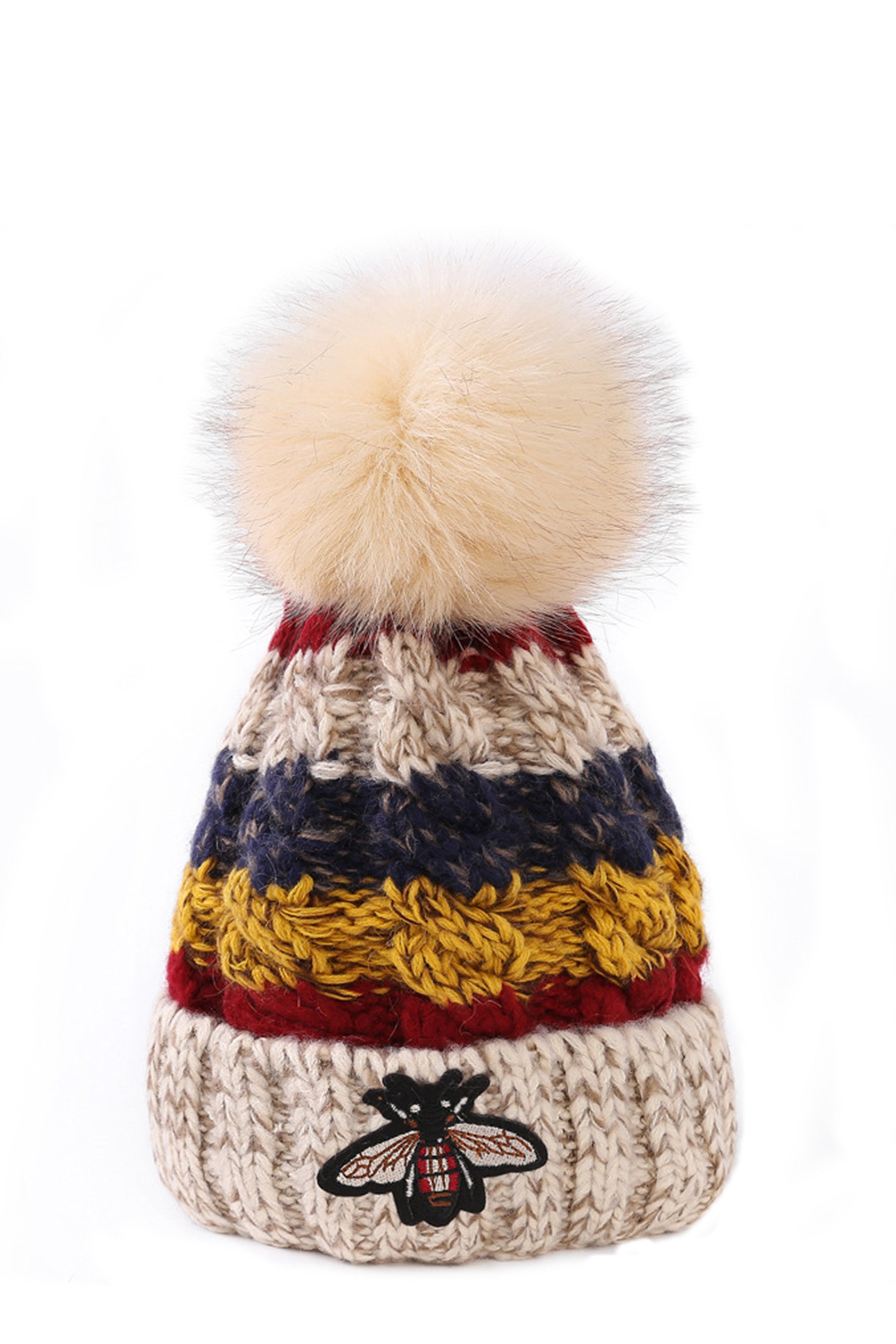 Conjunto de gorro y bufanda de punto con pompón C0232