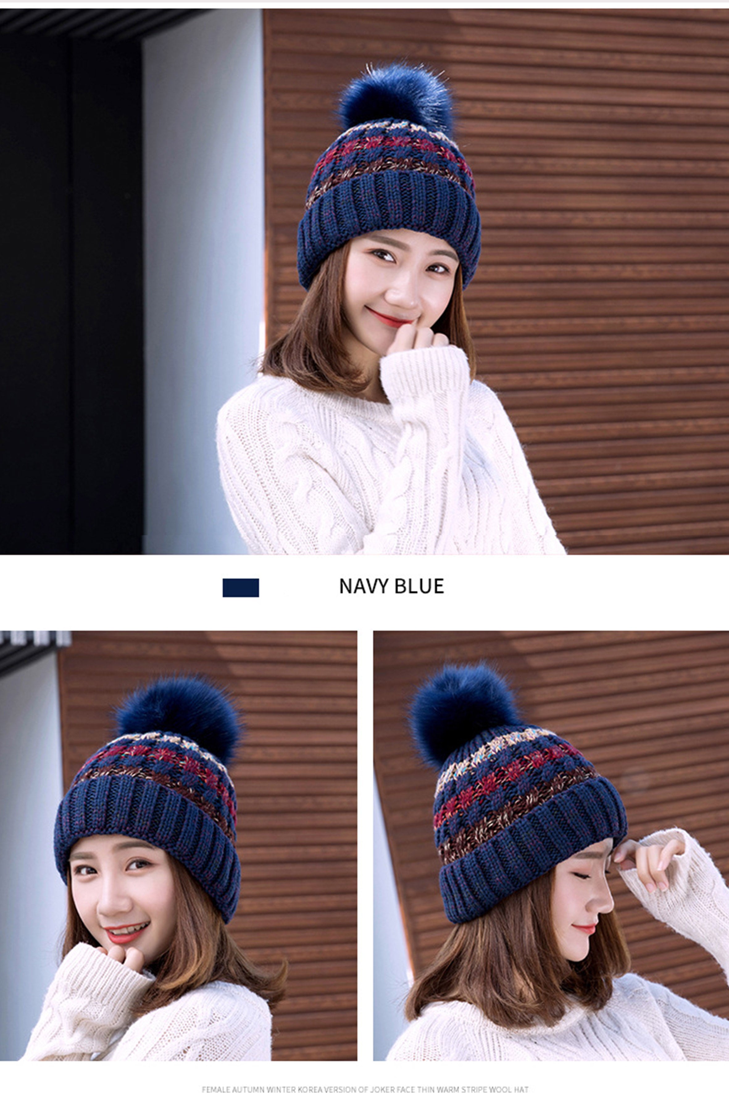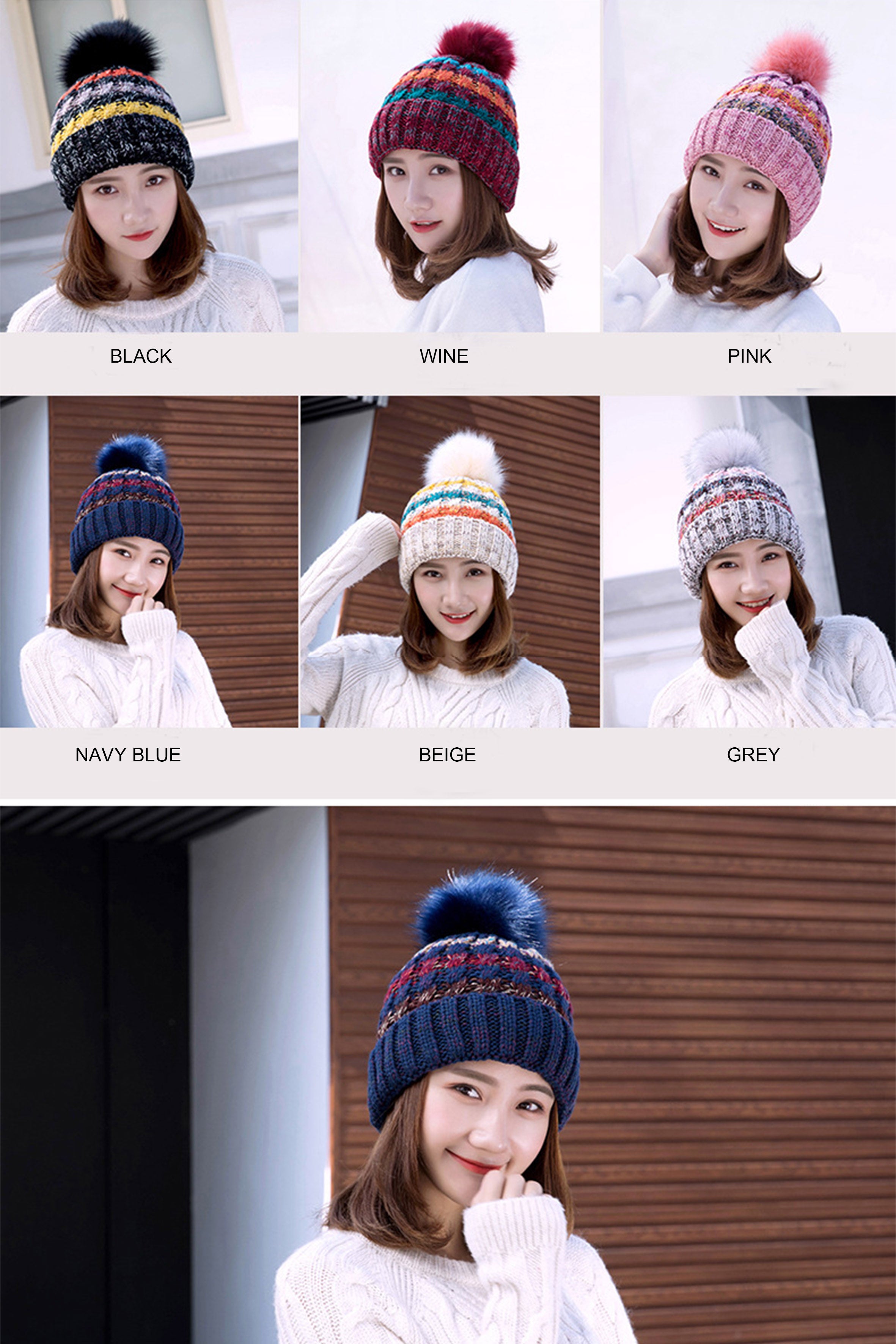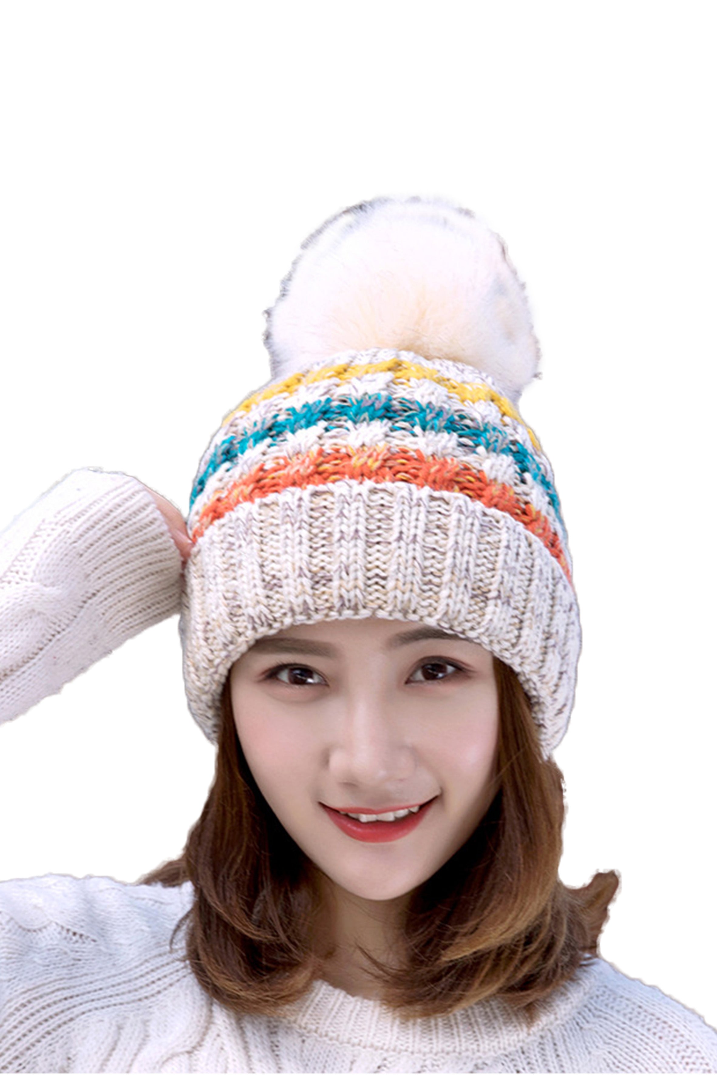 Gorro de punto cálido con pompones C0053