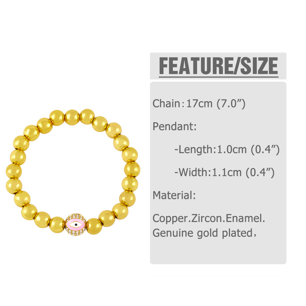 Pulsera de cuentas de circonita con forma de ojo malvado B3043