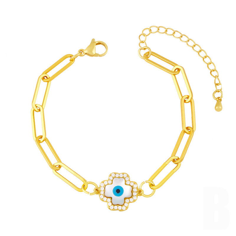 Pulsera de cadena con circonitas y cruz de ojos B3192