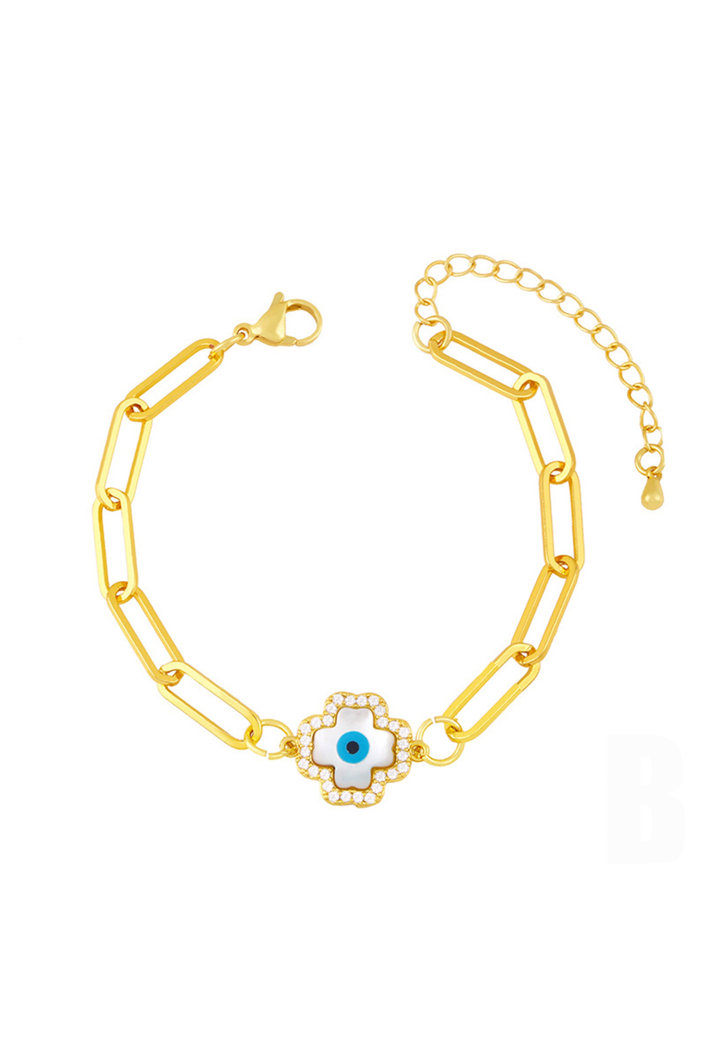 3. Pulsera de cadena con circonitas y cruz de ojos B3192