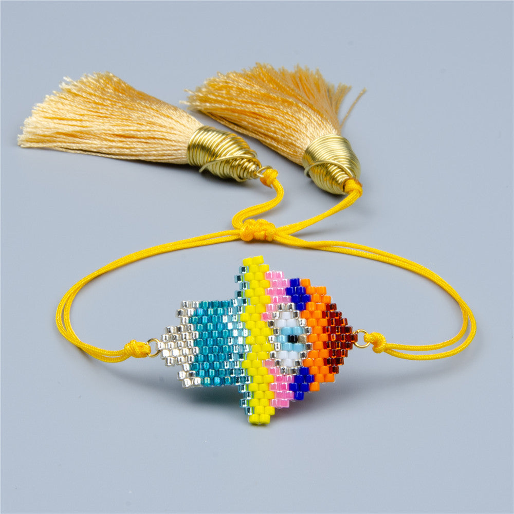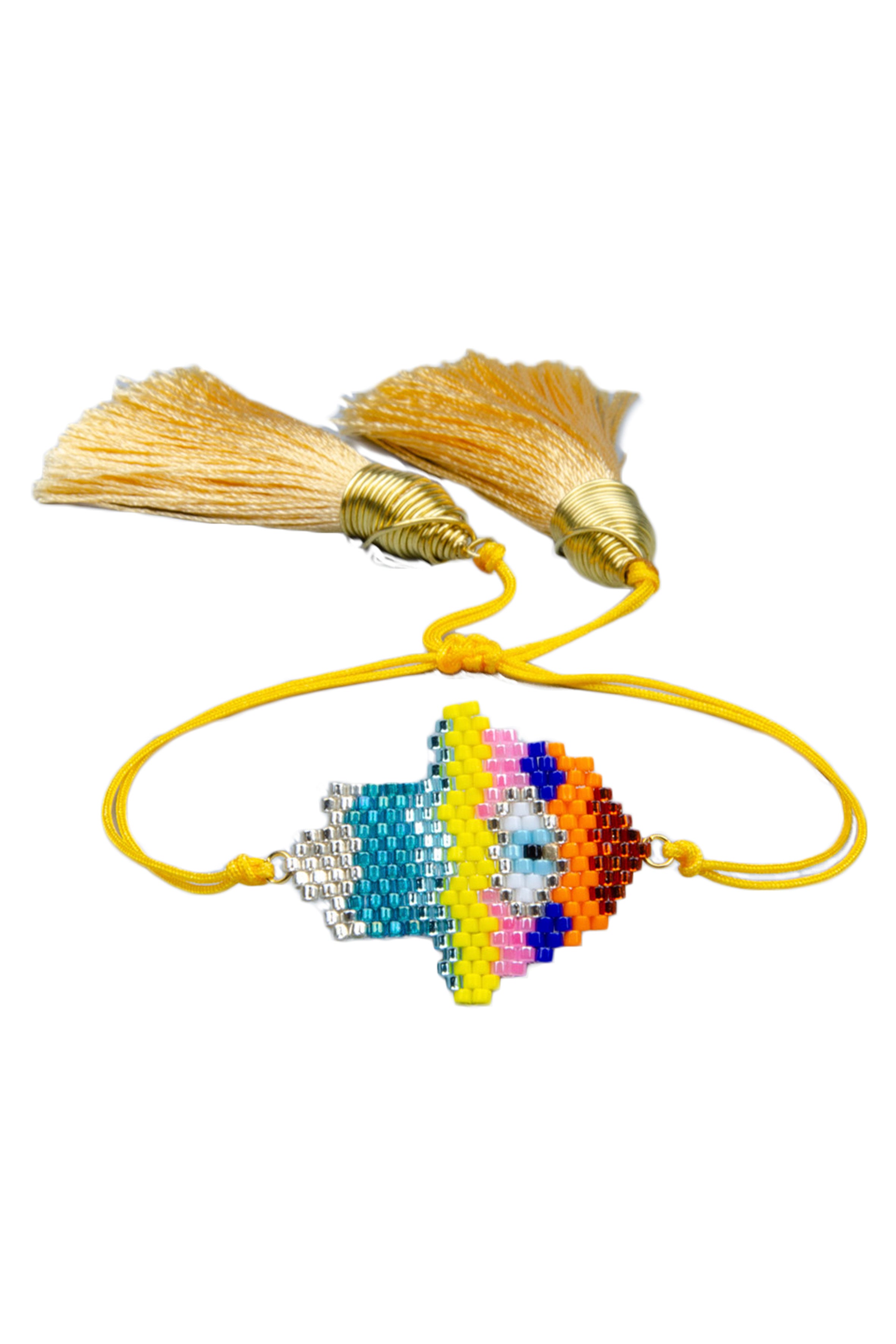 Pulsera trenzada con borlas de palma de Fátima B2719