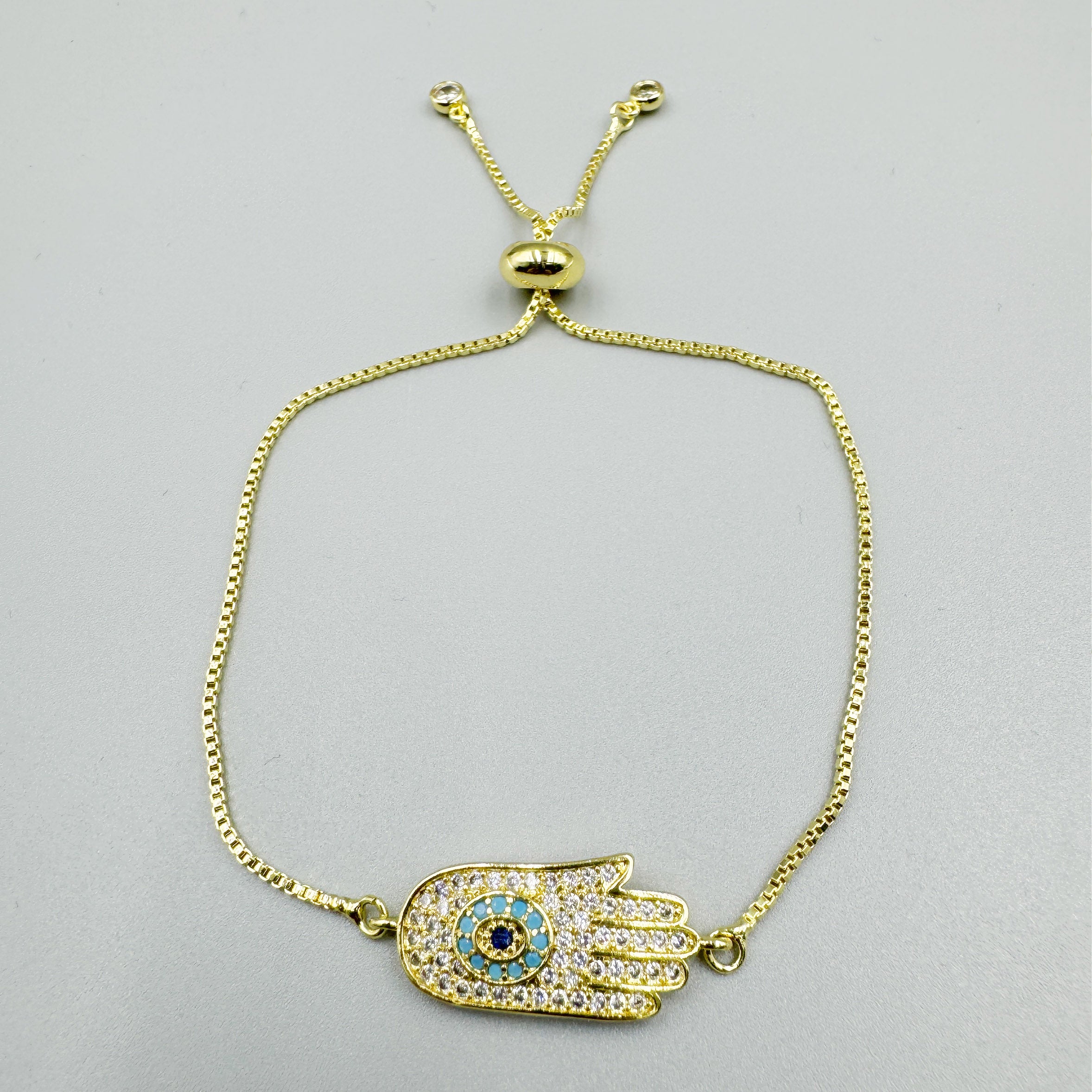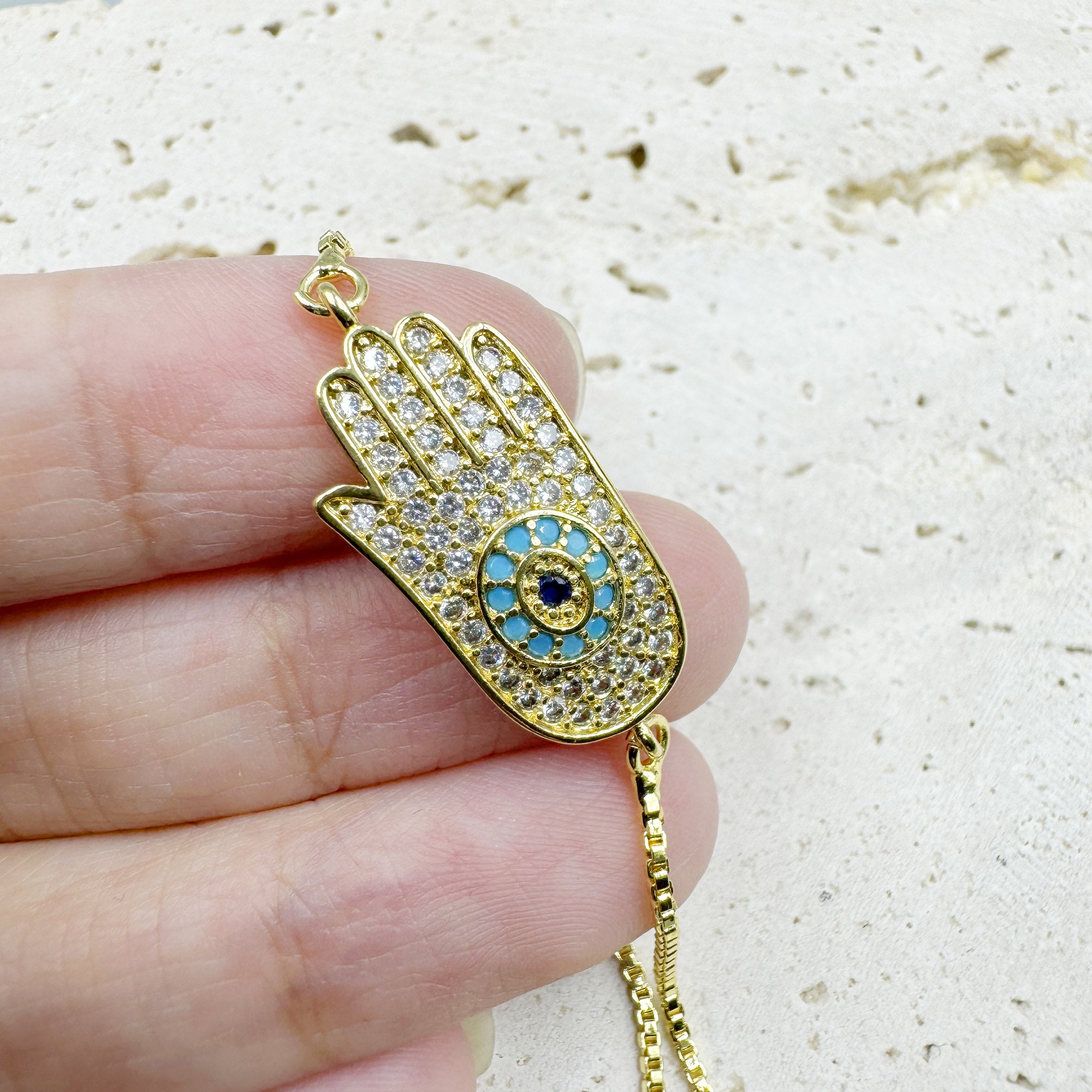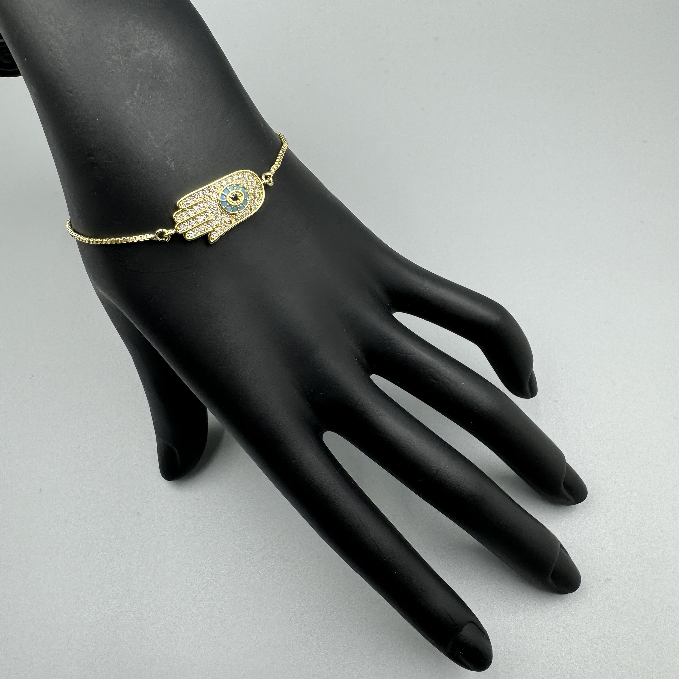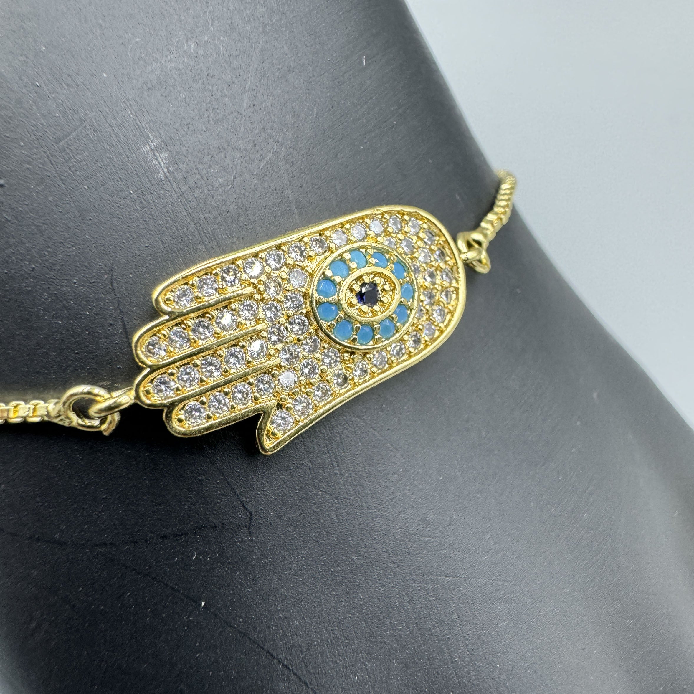 Pulsera de cadena de circonitas cúbicas con palma de Fátima B4100