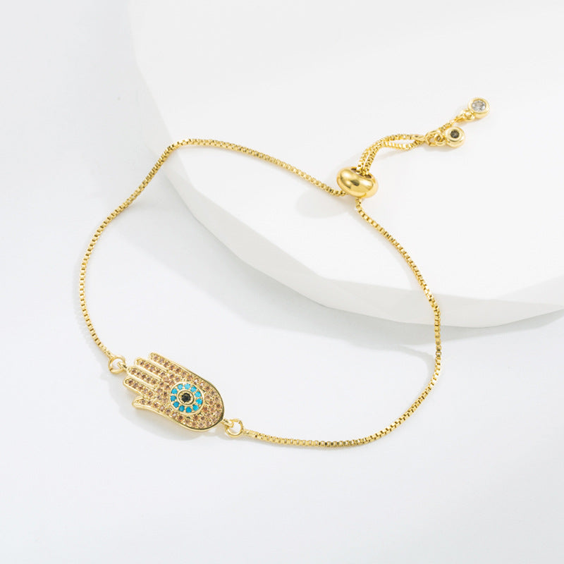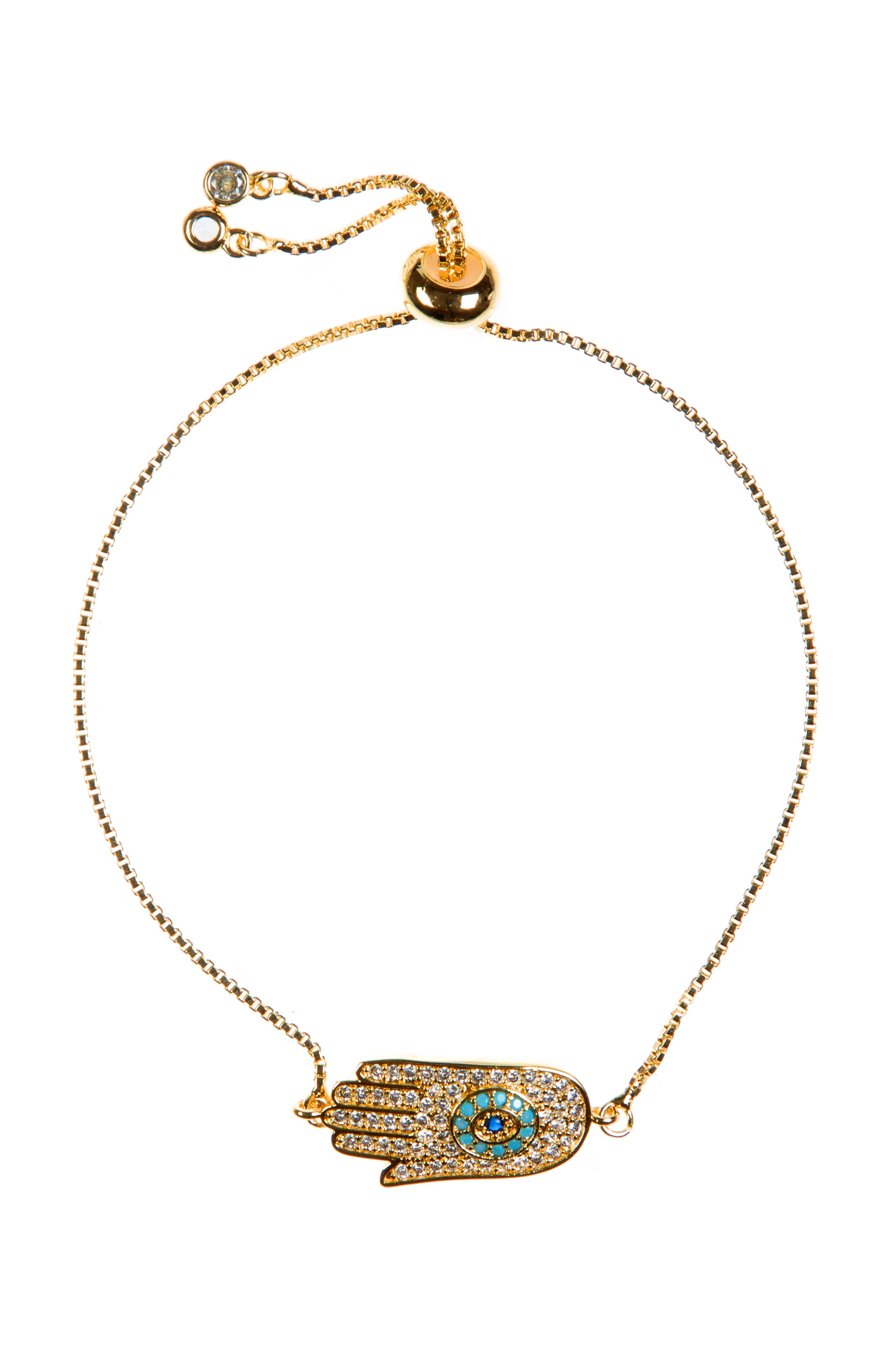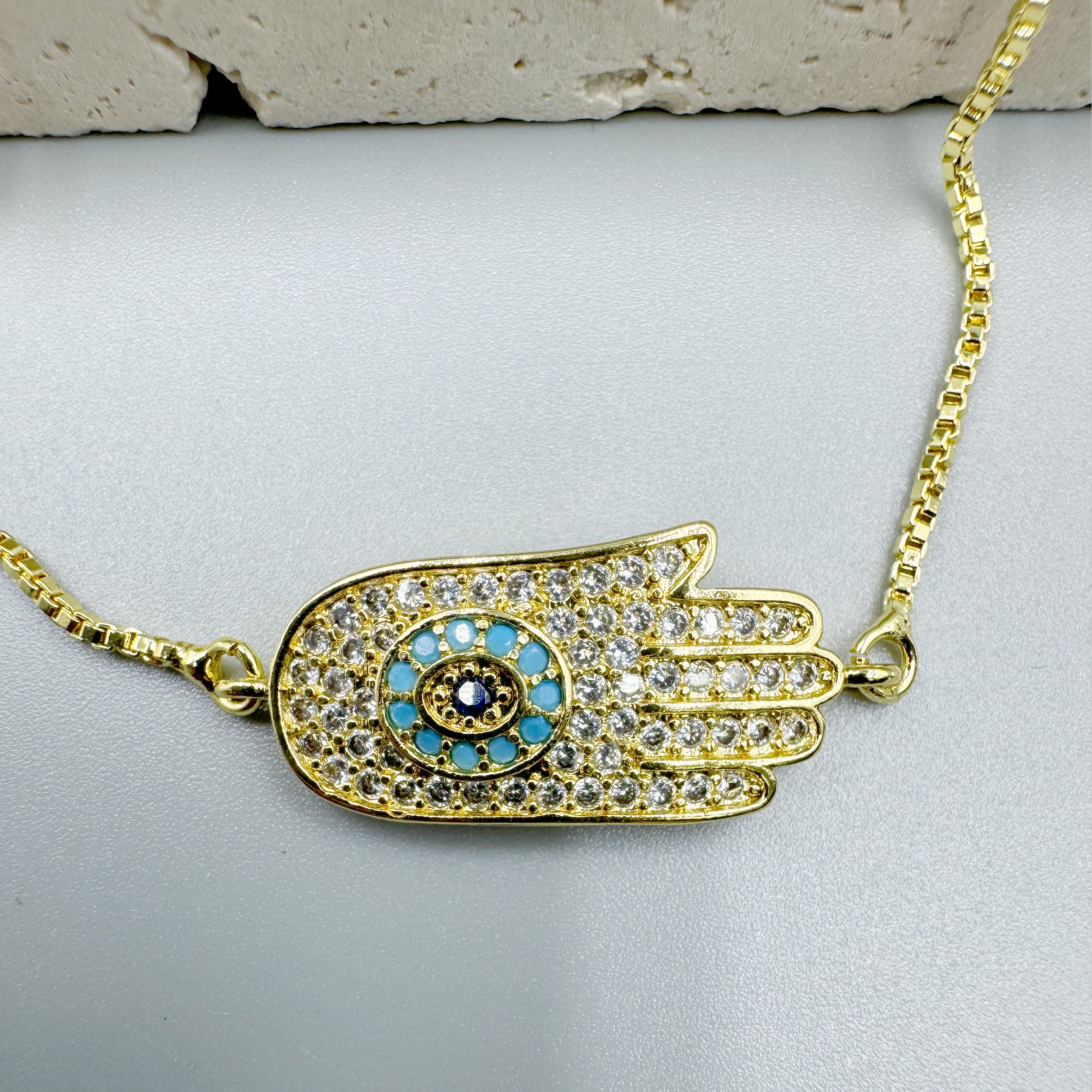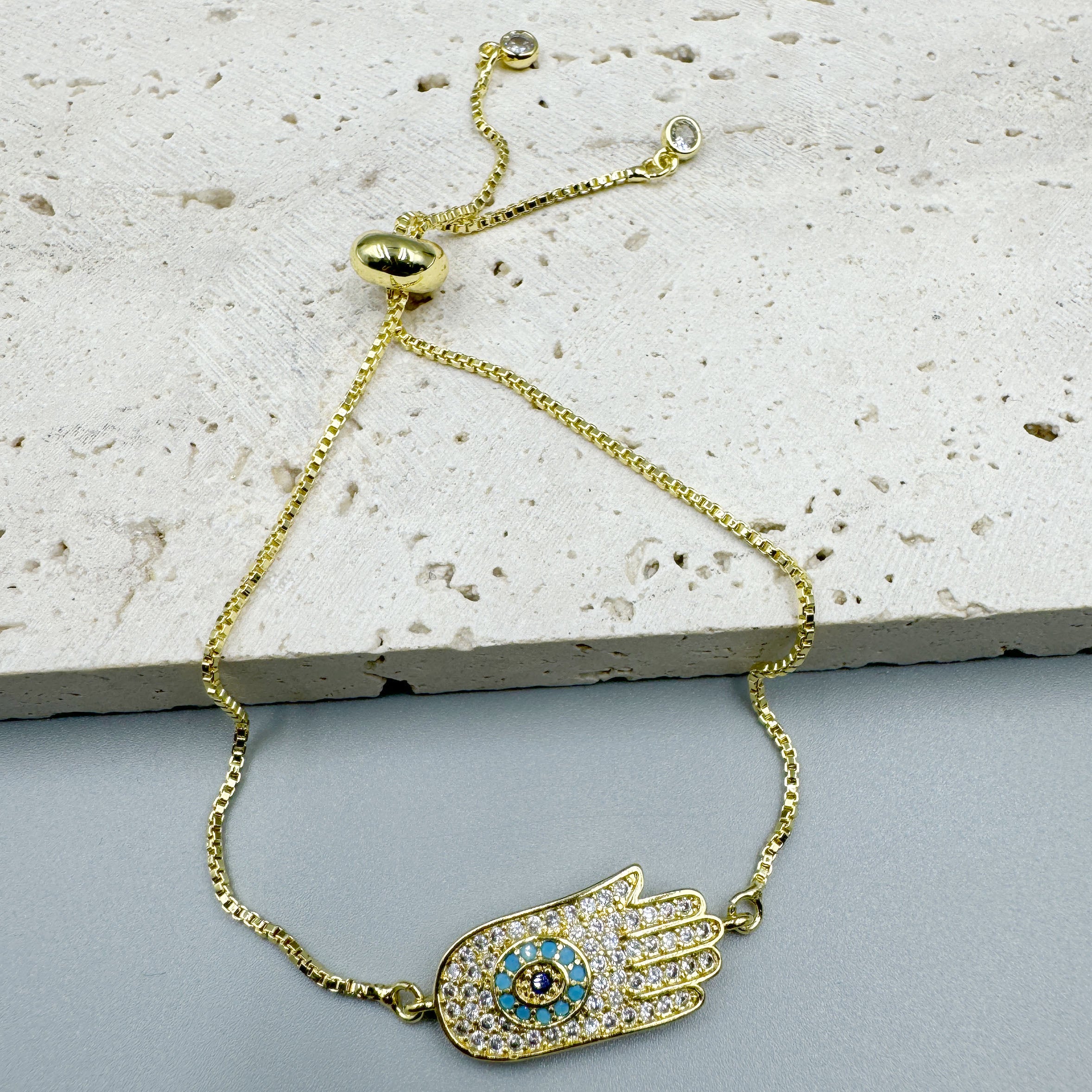 Pulsera de cadena de circonitas cúbicas con palma de Fátima B4100