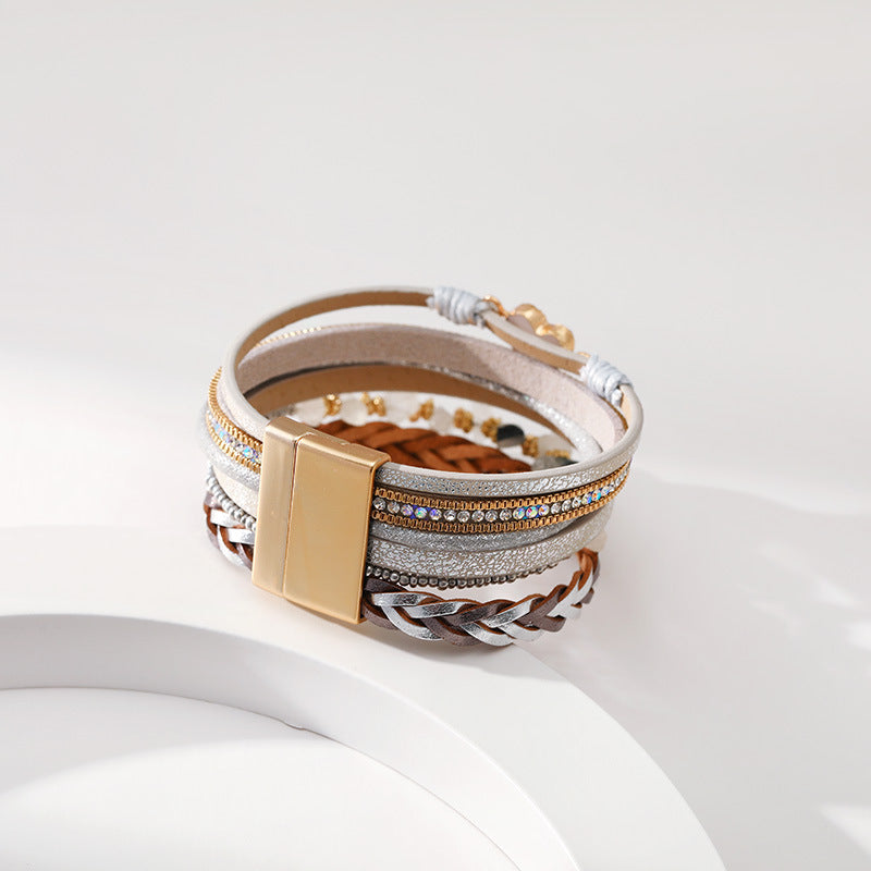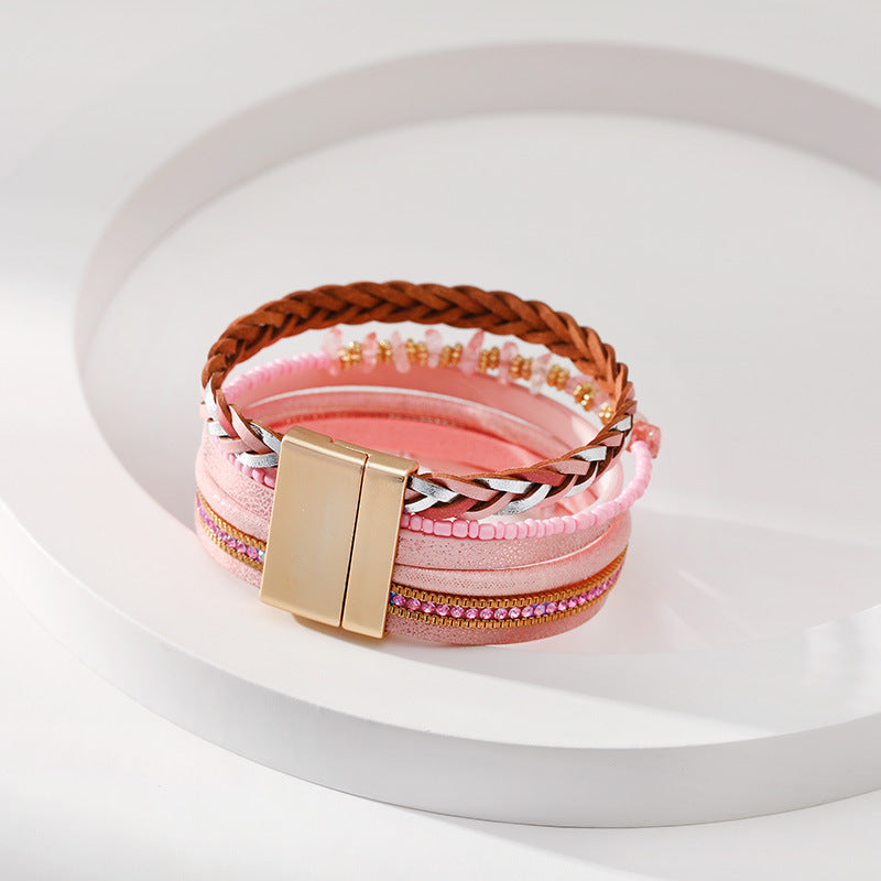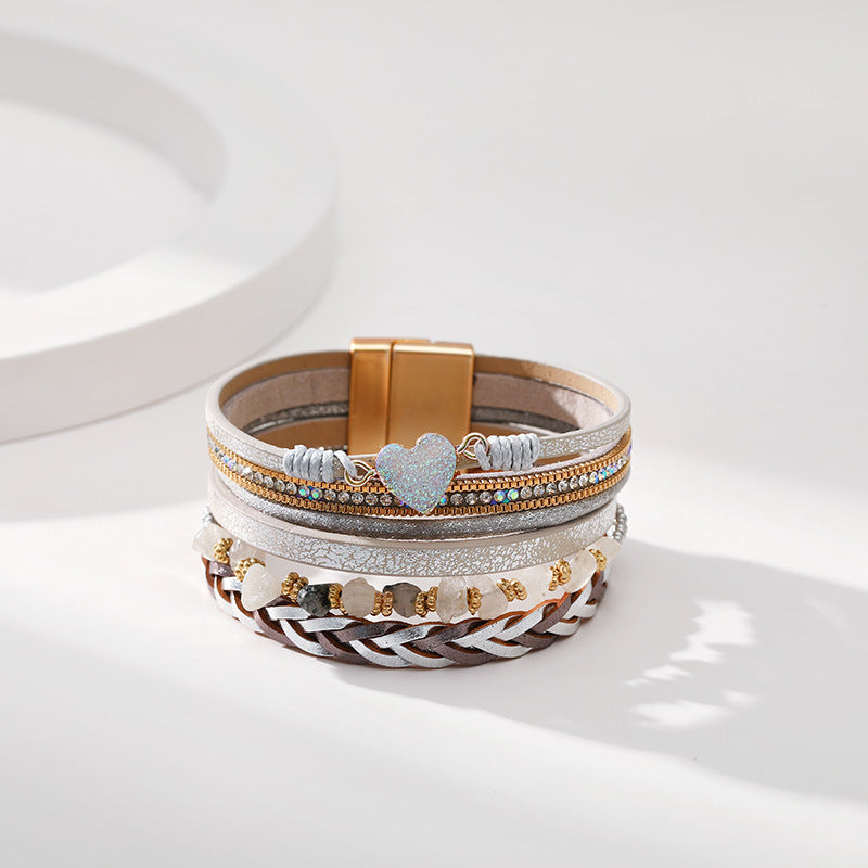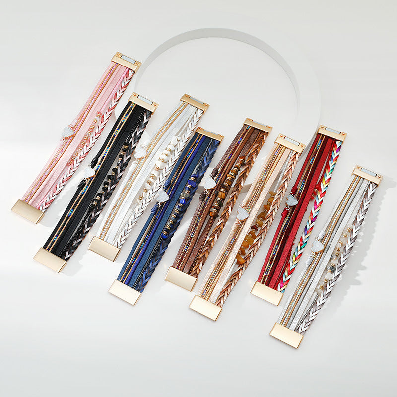Pulsera magnética multicapa con trenzas de corazón B4064