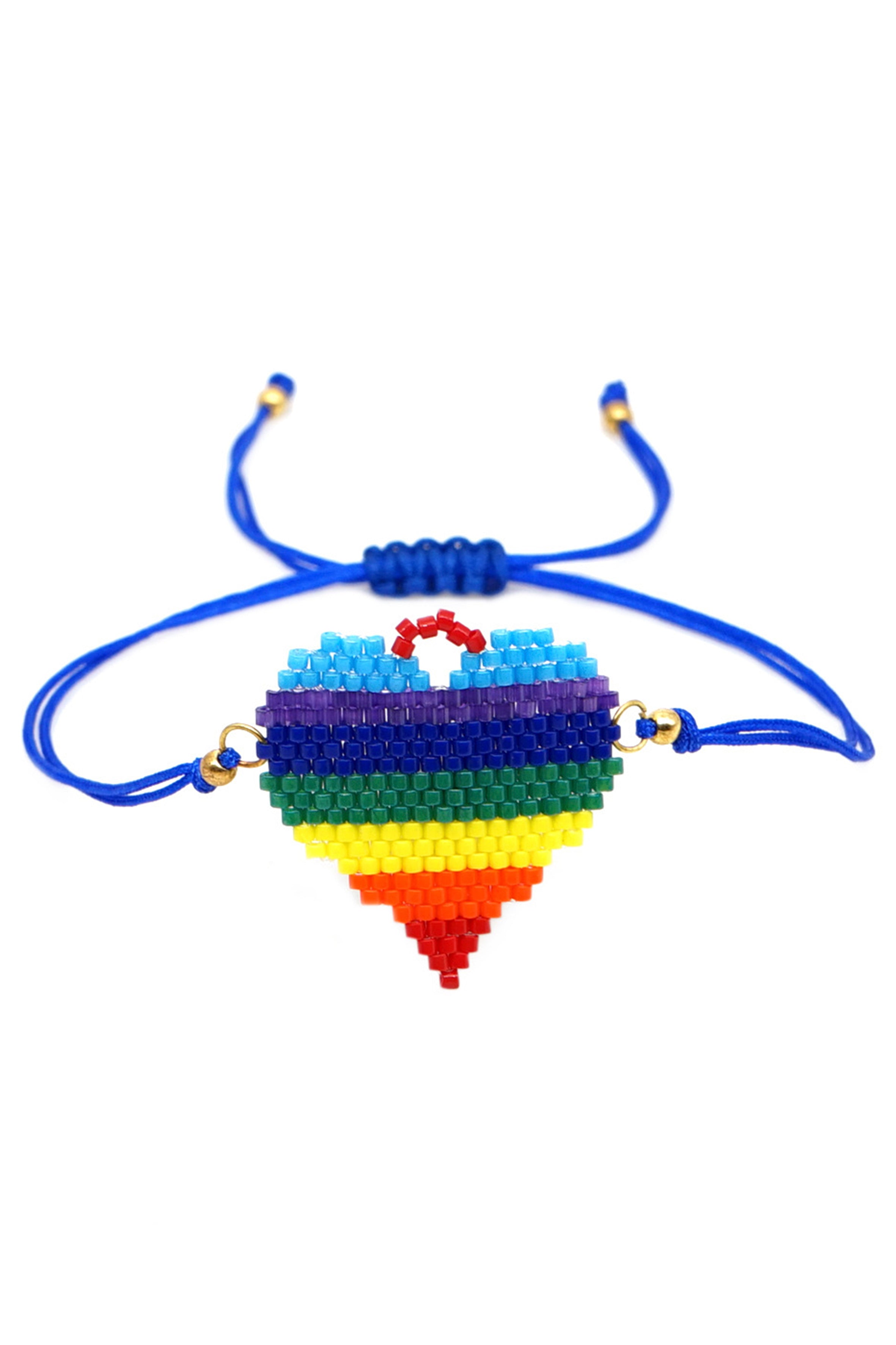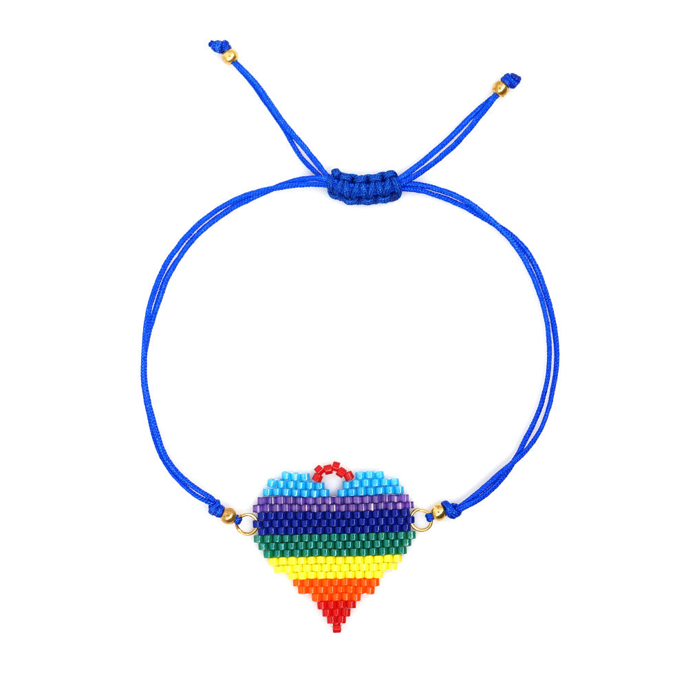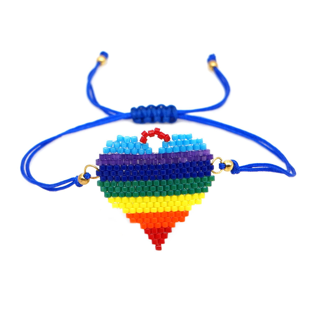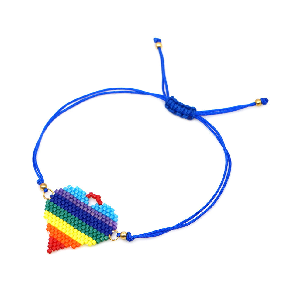 Pulseras trenzadas con cuentas de semillas y corazón de arcoíris B3133