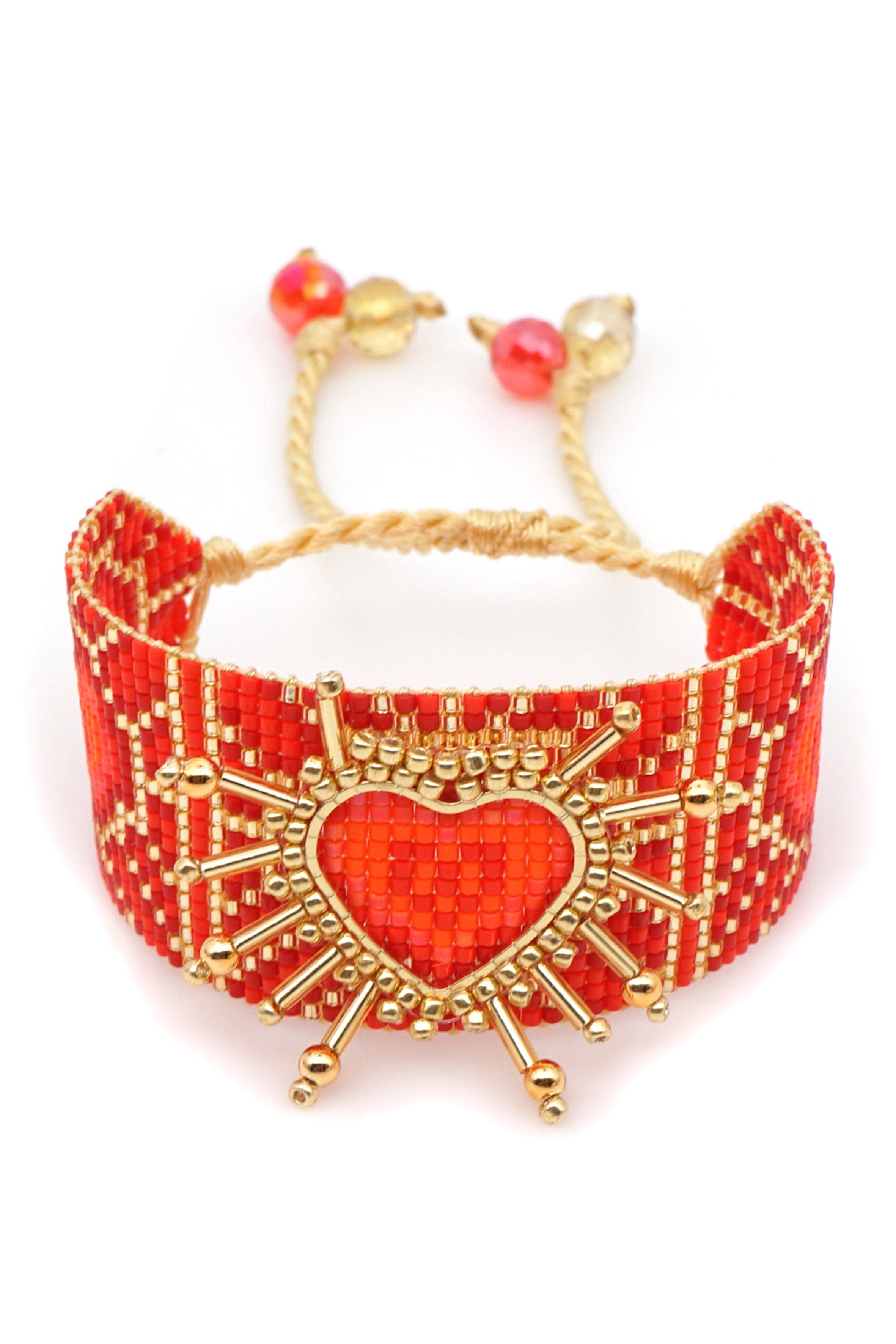 3. Pulsera trenzada con cuentas de semillas en forma de corazón B3101
