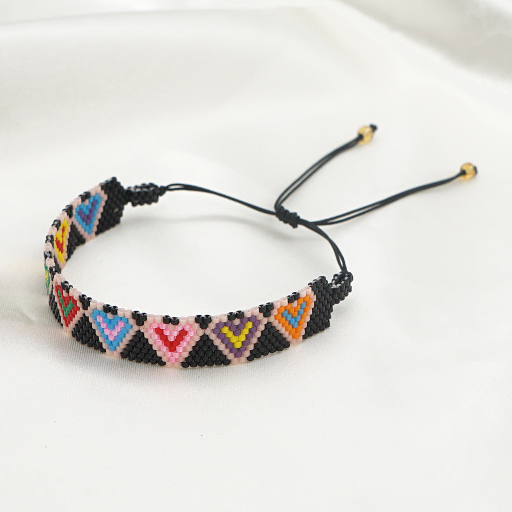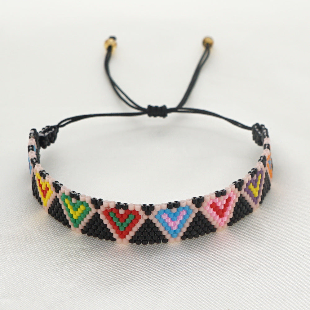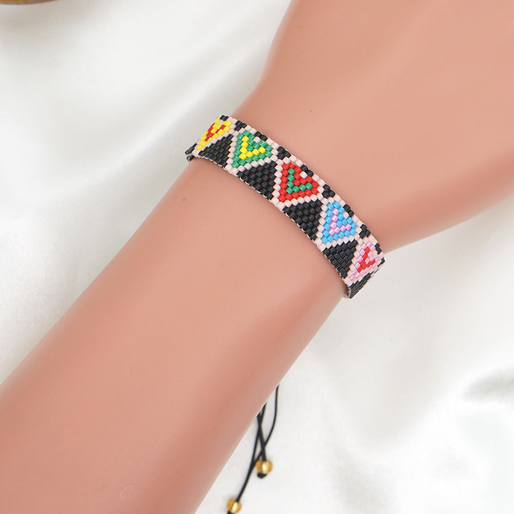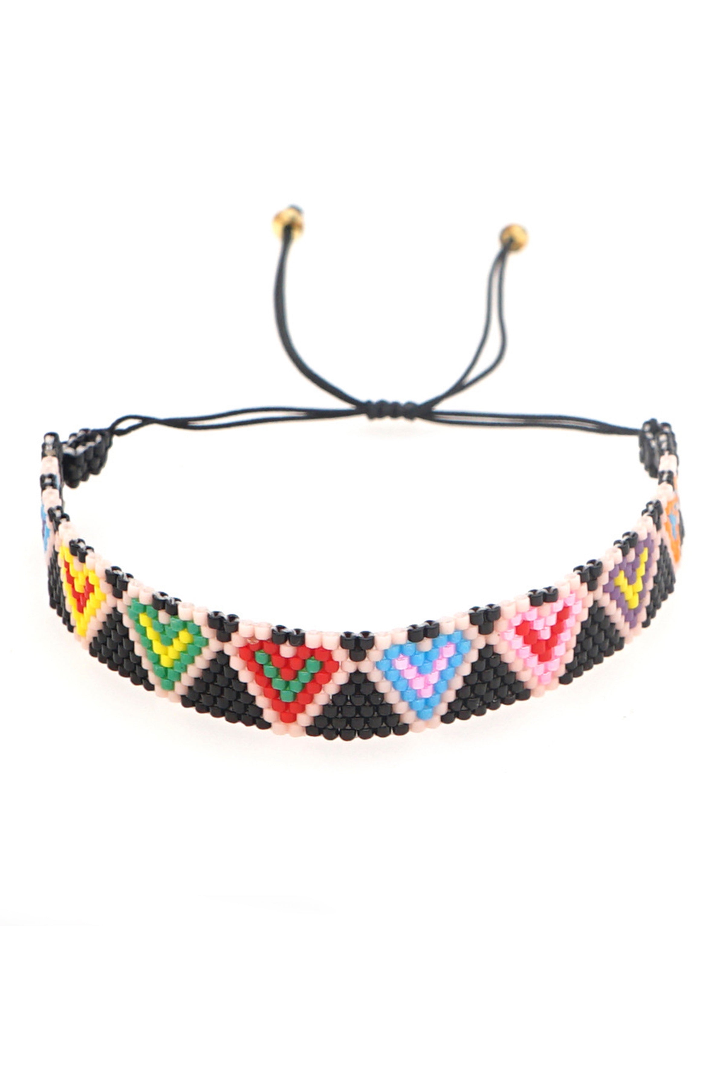 3. Pulseras trenzadas con cuentas de semillas en forma de corazón B3111