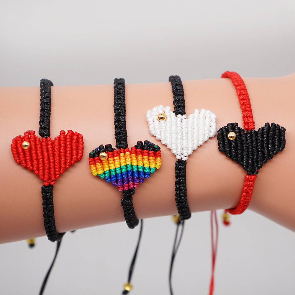 Pulseras trenzadas con cuentas de semillas en forma de corazón B3118