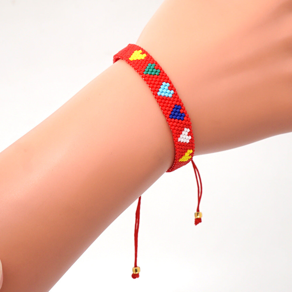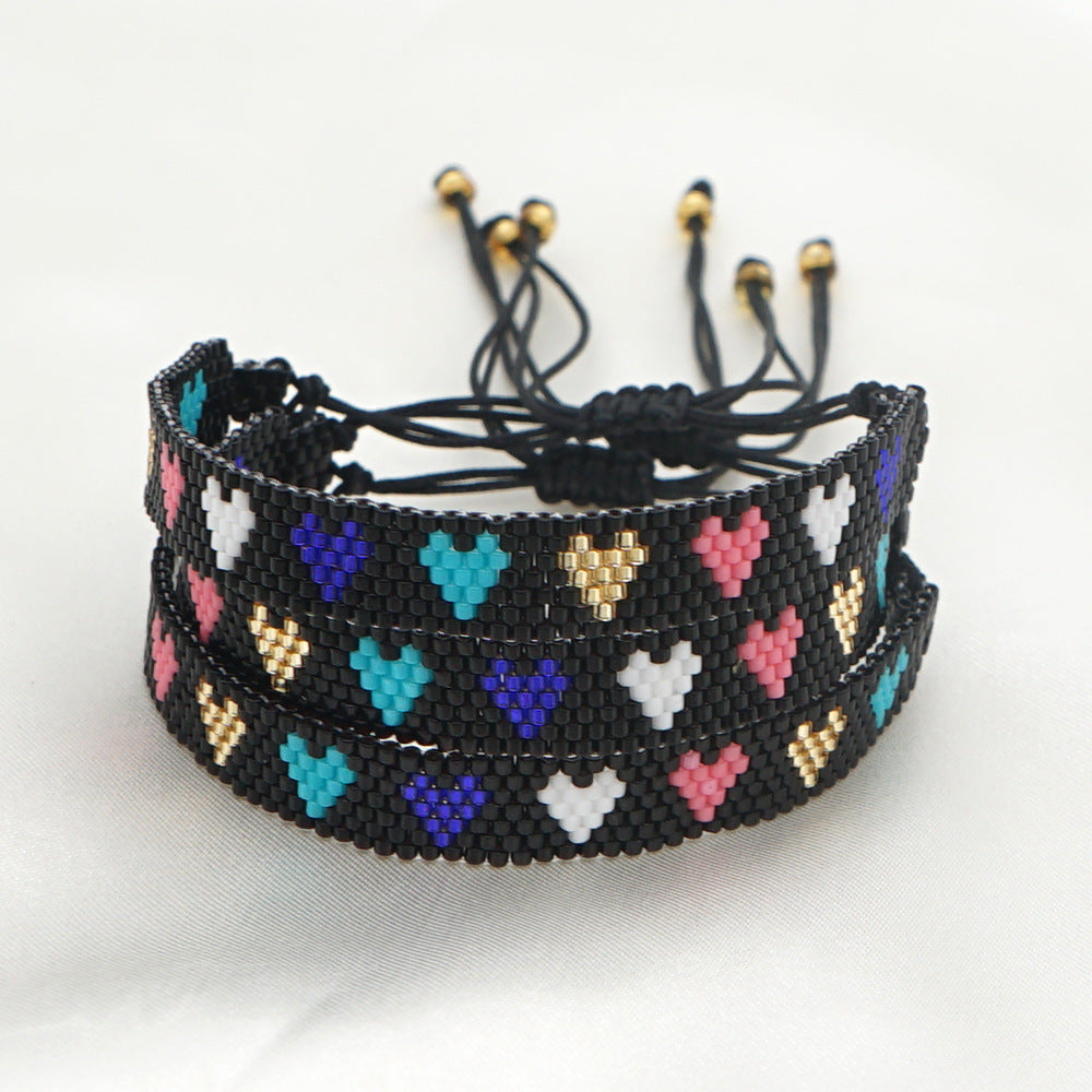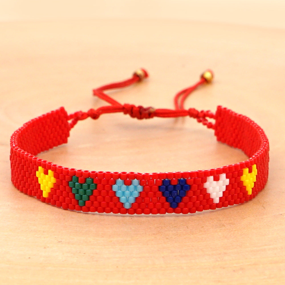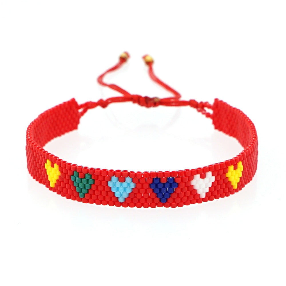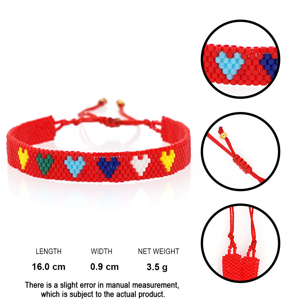 Pulseras trenzadas con cuentas de semillas en forma de corazón B3139